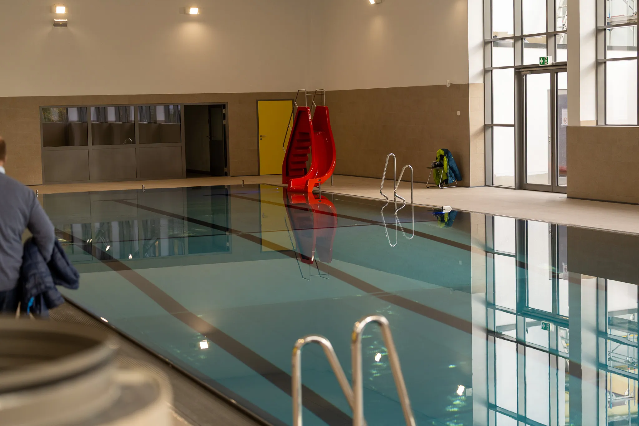 Und dann ist es soweit. Die Tür zum Hallenbad, dem Herzstück, wird geöffnet. "Wow, ist das schön", freut sich eine Besucherin. Auch dort ist einiges neu. Die Kaltwasserdusche beispielweise. Und es gibt sogar schon eine Wasseraufsicht. Martina Wruck übernimmt diese, damit auch wirklich niemand ins Wasser geht oder fällt. Auch sie freut sich schon auf ihre erste "richtige" Schicht am Beckenrand.