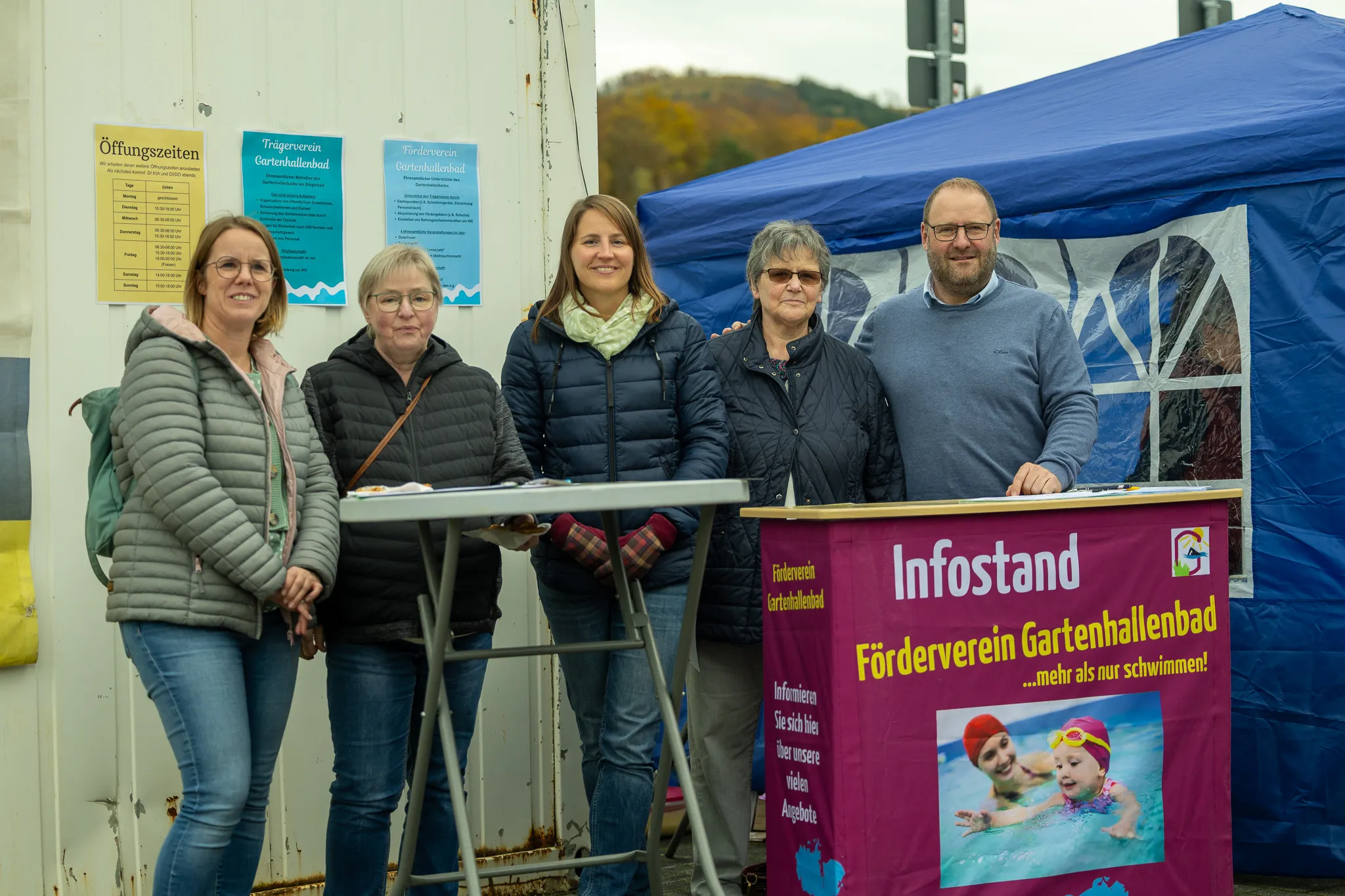 Im Anschluss konnten die Gäste draußen gemeinsam das Gesehene besprechen. Bei Würstchen und Waffeln wuchs die Vorfreude auf neue gemeinsame Abenteuer im Bürgerbad. Träger- und Förderverein und die Verwaltung kümmerten sich um die Gäste. "Das Warten lohnt sich auf jeden Fall", ruft ein Gast einem Bekannten in der Schlange zu. Inzwischen sind es fast 30 Minuten Wartezeit. Doch die nehmen die Besucher gerne in Kauf.