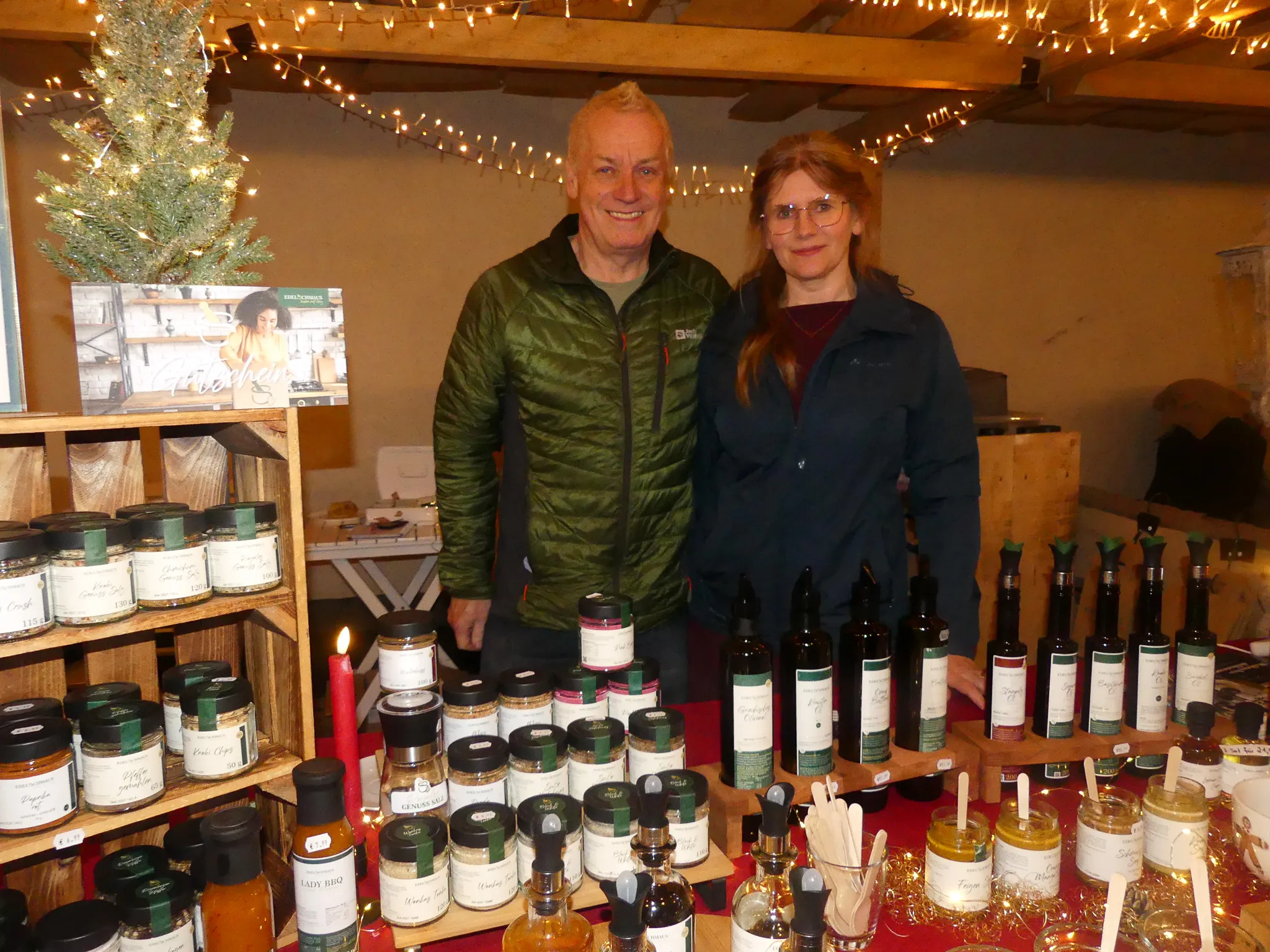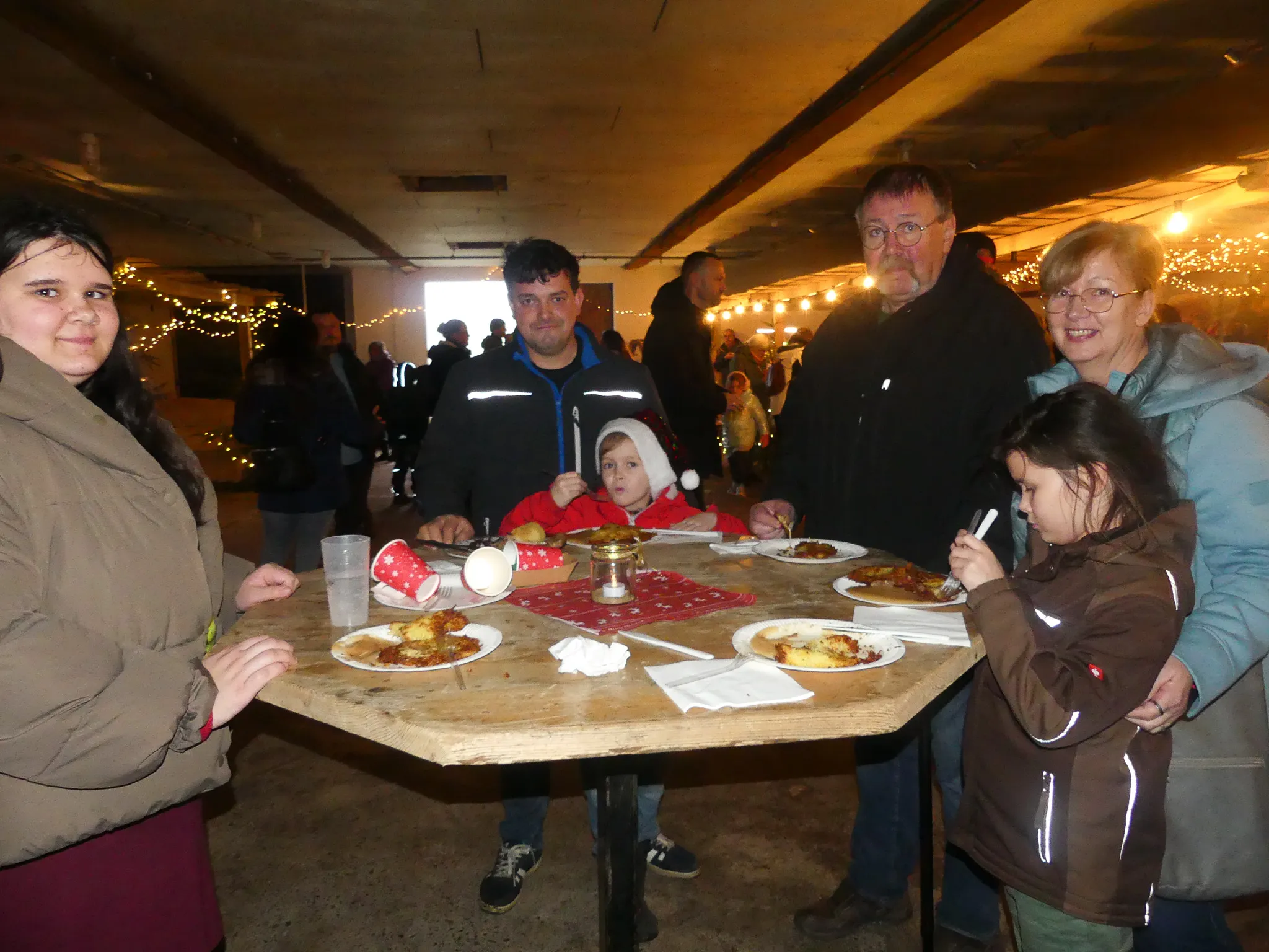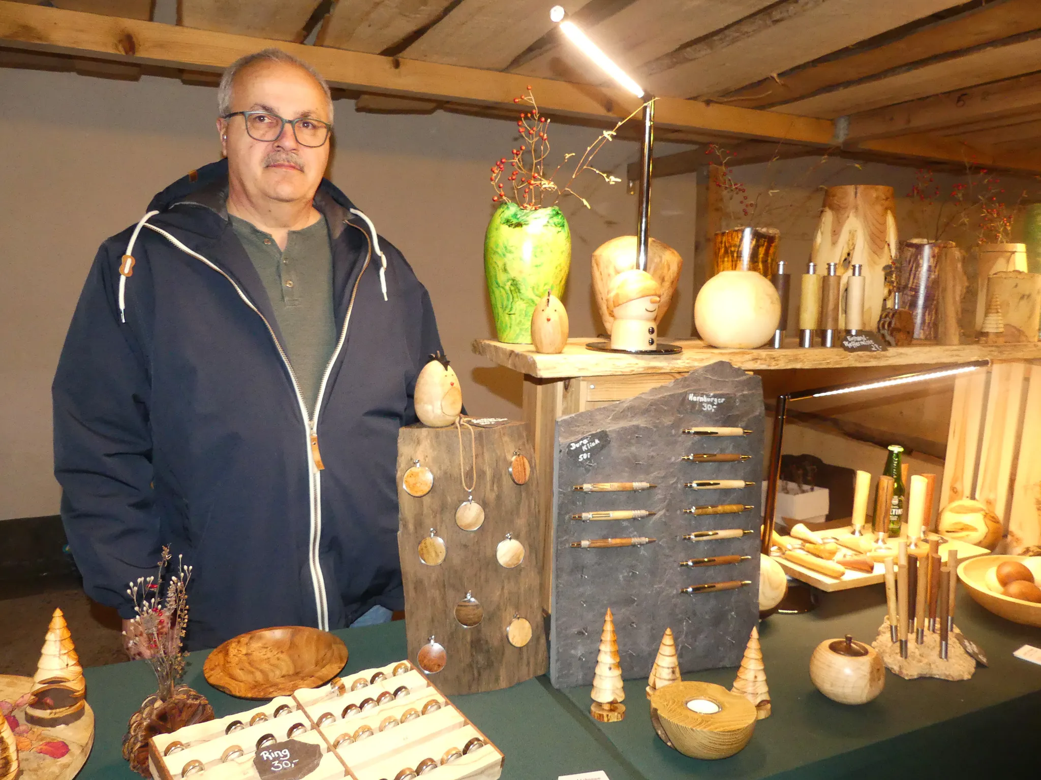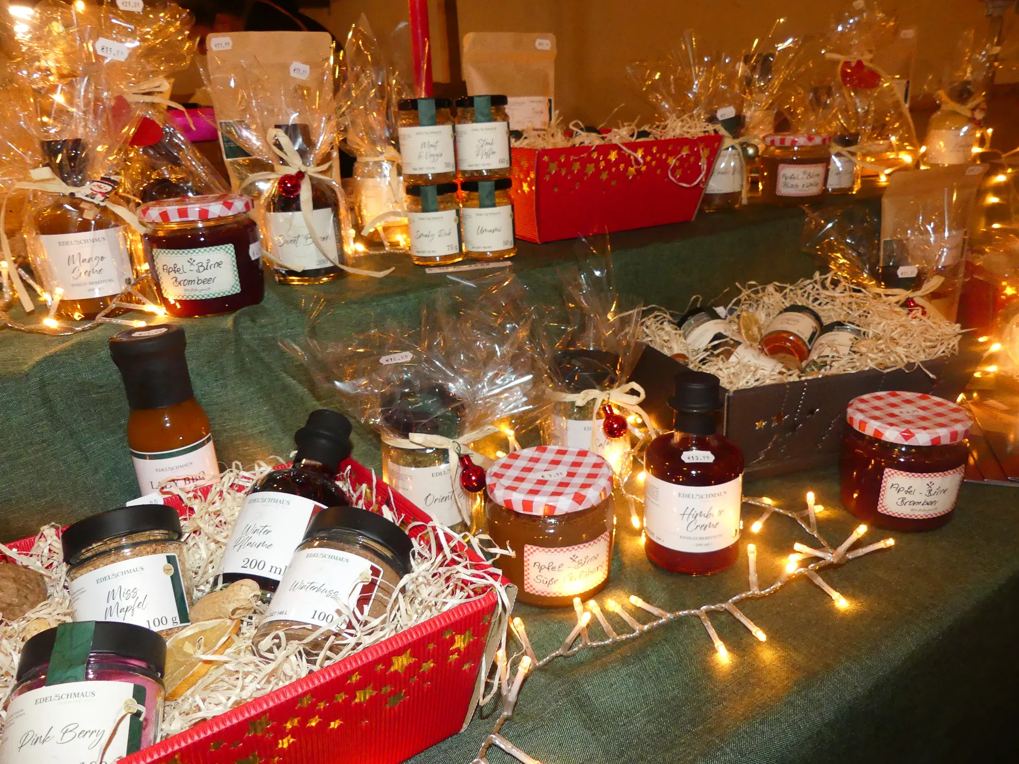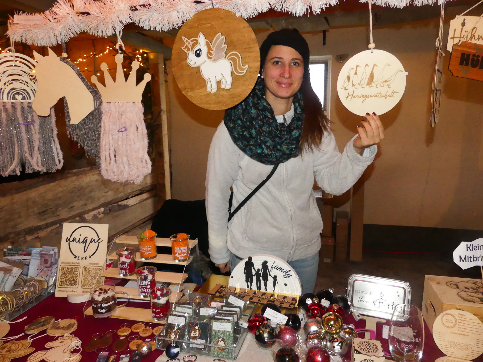 Insgesamt neun Aussteller präsentierten ihre Waren in den Scheunen des Hofes. Angeboten wurden Basteleien, Holzschnitzereien, Strickwaren und eine große Auswahl kulinarischer Köstlichkeiten – von Entenkeulen über Klöße, Rotkohl und Wildbratwurst bis hin zu Waffeln und Kuchen. Auch der Hofladen war mit einem Stand vertreten: Hier konnten die Besucher Gänse, Puten, Enten oder auch Daunendecken erwerben.