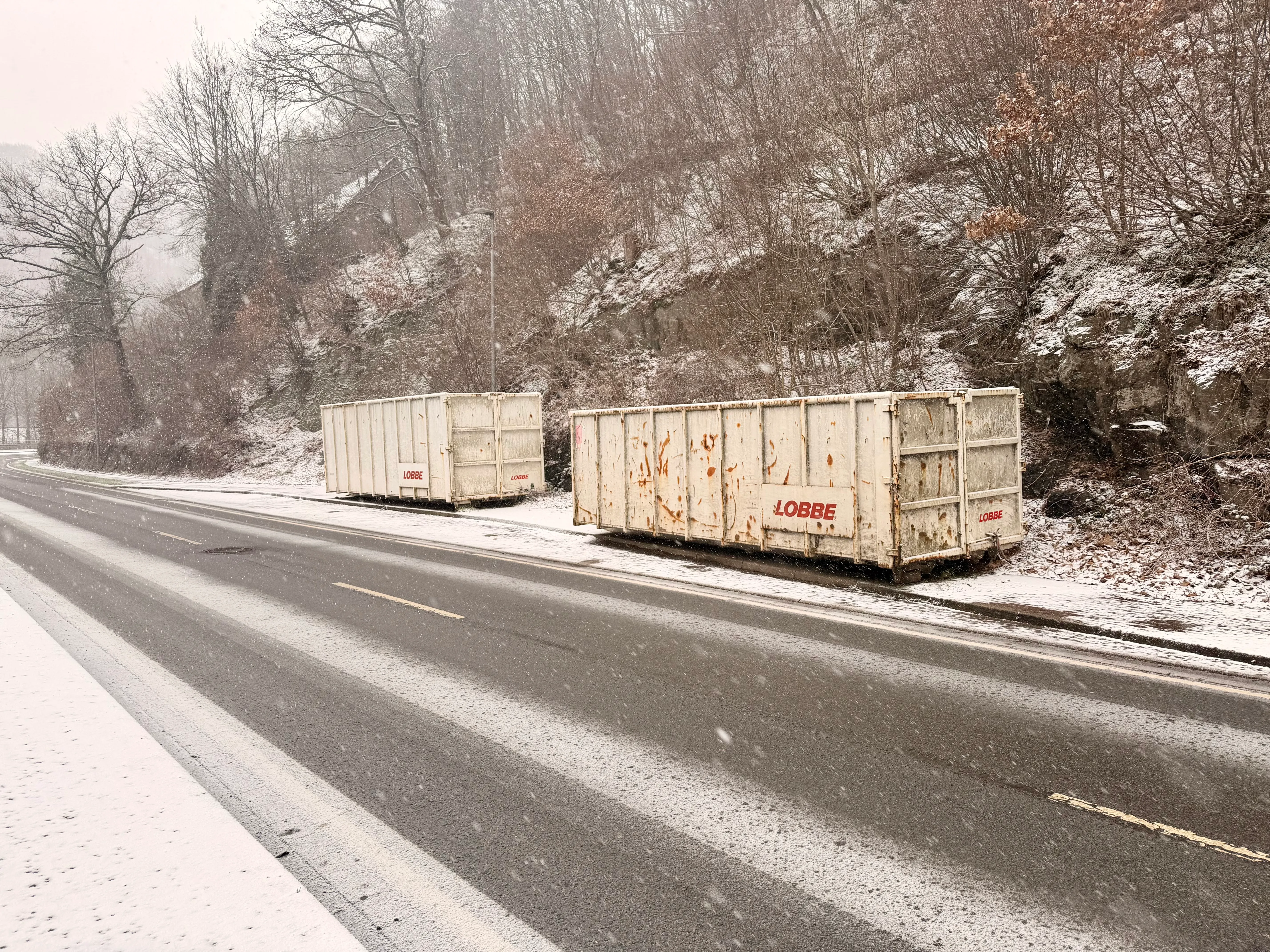 Bis solch eine Sicherung jedoch bereitgestellt werden könne, müsse noch einiges passieren. "Wir werden den Bereich in der aktuellen Räumphase vom Bewuchs befreien. Anschließend können die örtlichen Verhältnisse durch einen Bodengutachter beurteilt und ein Sicherungskonzept erstellt werden, das anschließend noch ausgeschrieben und umgesetzt werden muss." Nach aktueller Schätzung seitens Straßen NRW werden die Container dort "noch etwa ein halbes Jahr stehen müssen".