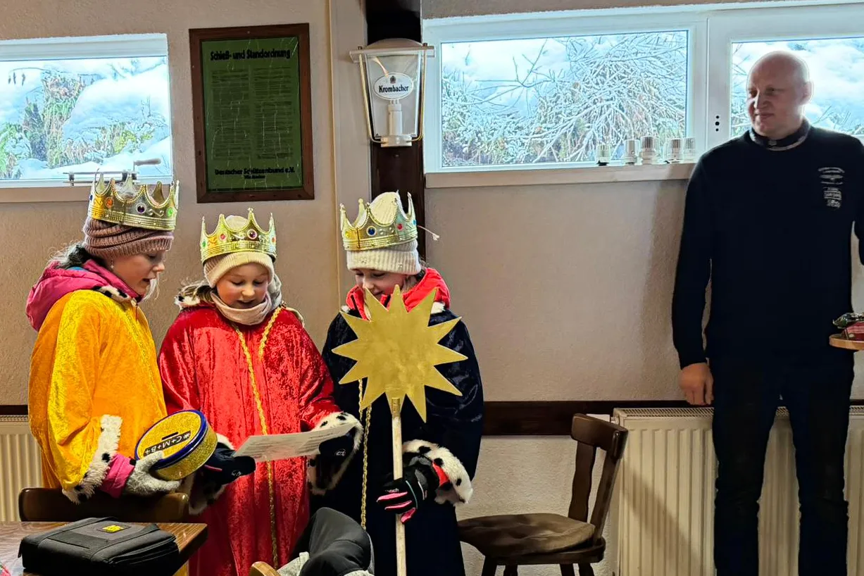 Die Offiziere des Vereins hatten den Weg eisfrei gemacht, sodass die Gäste sicher zum Vereinsheim gelangten. Das Königspaar Marcus Richter und Daniela Duschek-Moor sowie der 1. Vorsitzende Frank Posdena begrüßten die Gäste. Auch die Sternsinger statteten den Sundheller Schützen wie in den Jahren zuvor einen Besuch ab.