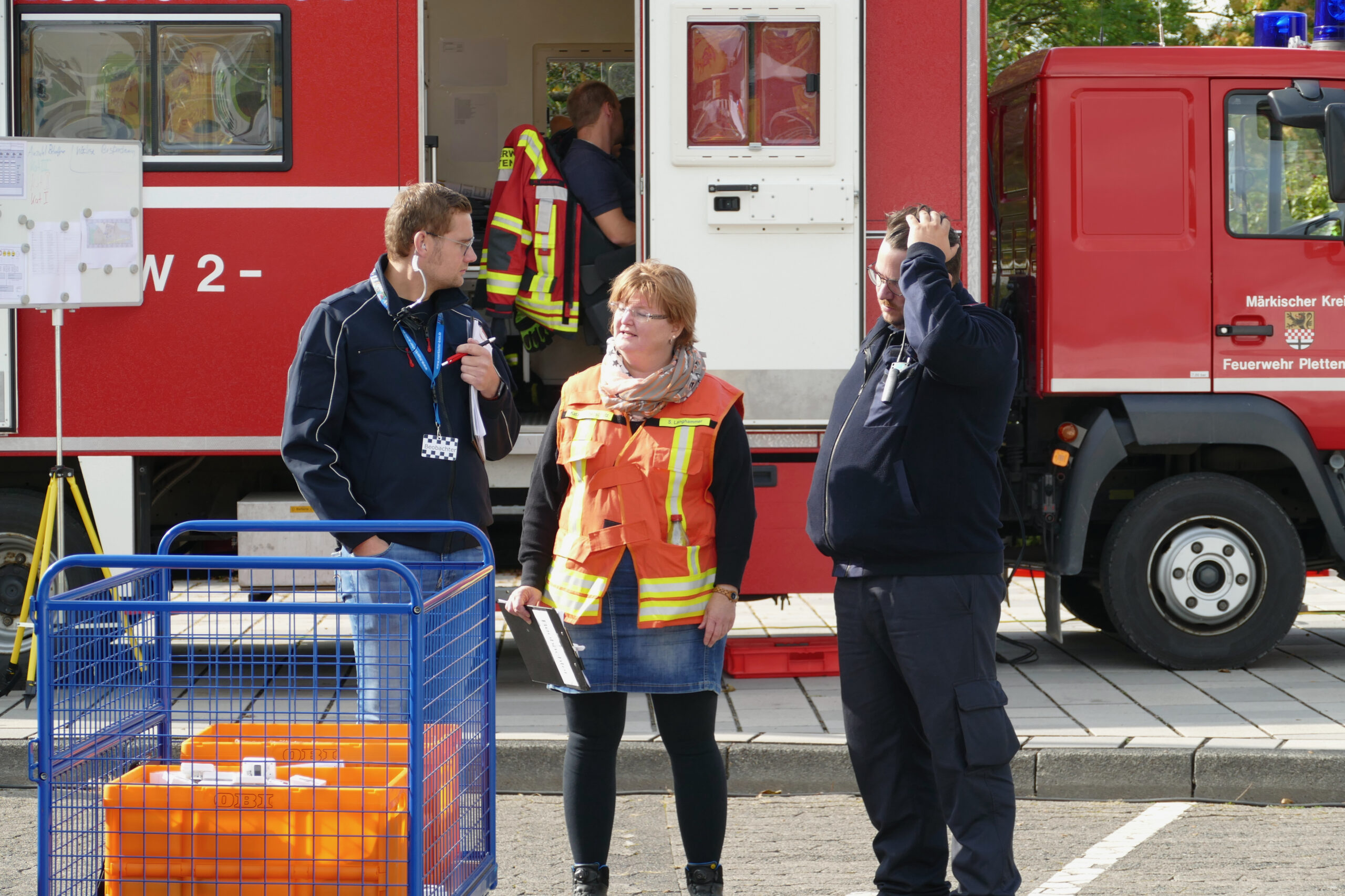 Von der Einsatzfähigkeit der Hilfsorganisationen überzeugte sich vor Ort auch Landrat Marco Voge. „Es ist beruhigend zu wissen, dass sie im Ernstfall wirkungsvolle Hilfe leisten können. Ich habe großen Respekt vor dem Engagement der größtenteils ehrenamtlichen Einsatzkräfte“, kommentierte er die Großübung.