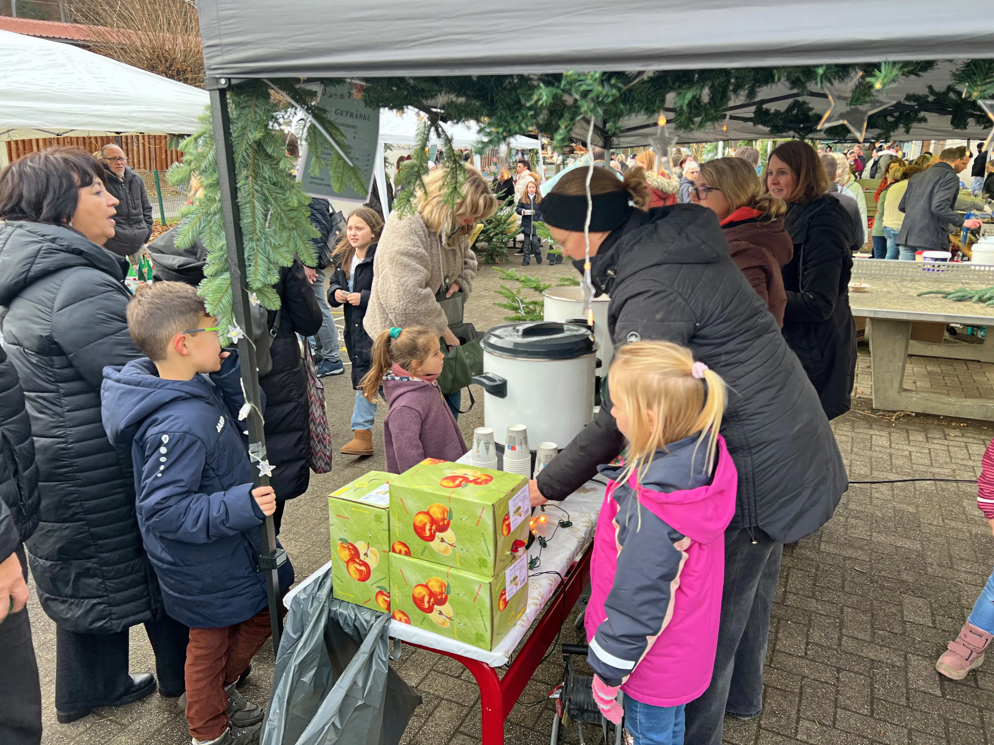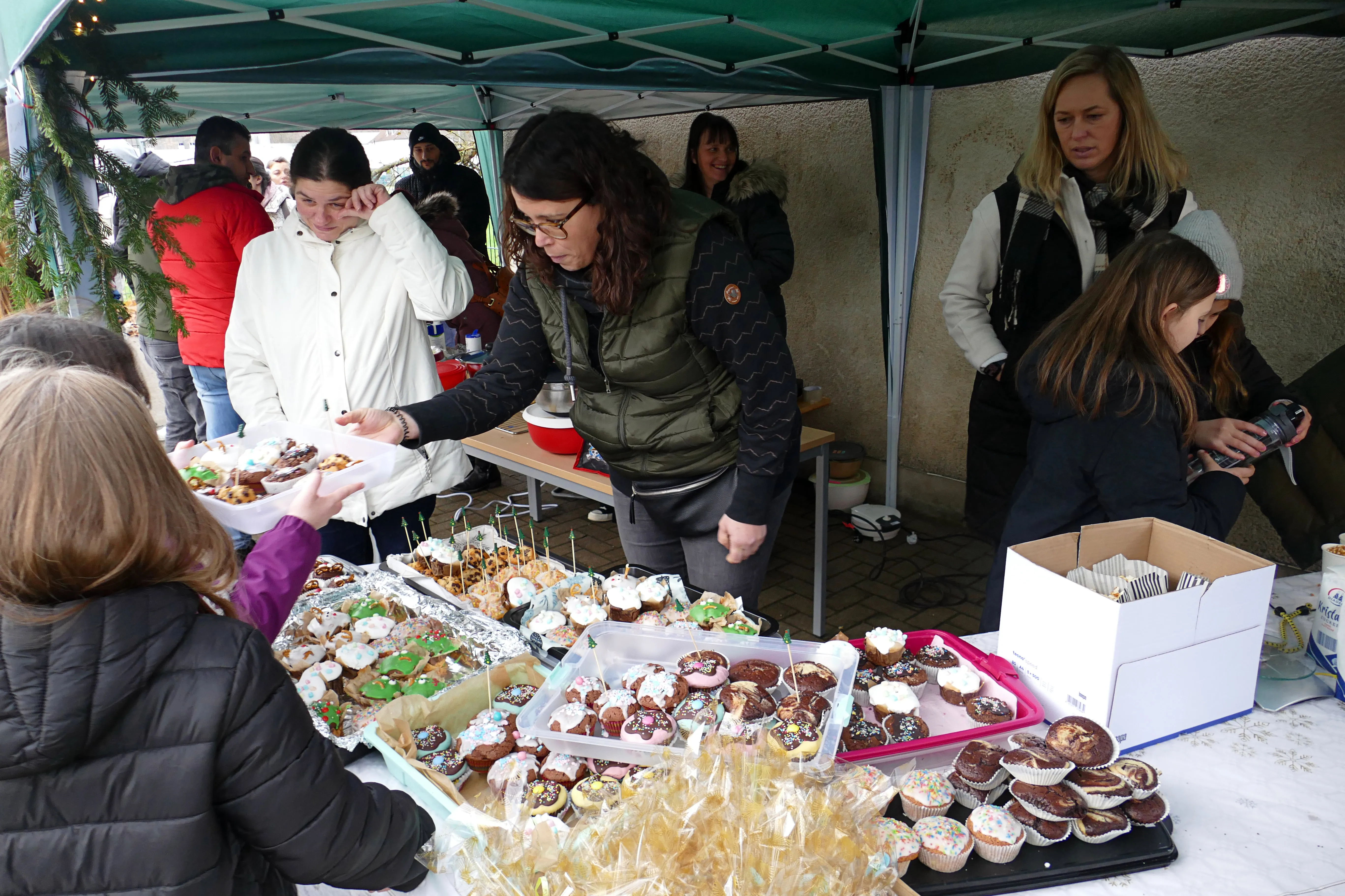 Am Samstag wurde aber in erster Linie das Jubiläum gefeiert. Die Lehrer*innen und Schüler*innen aus beiden Standorten hatten Vorführungen einstudiert, die im Feierraum vor großem Publikum viel Beifall fanden. Auch für den Weihnachtsmarkt draußen auf dem kleinen Schulhof hatten sich die Mädchen und Jungen ins Zeug gelegt und am Back- und Basteltag einiges vorbereitet.