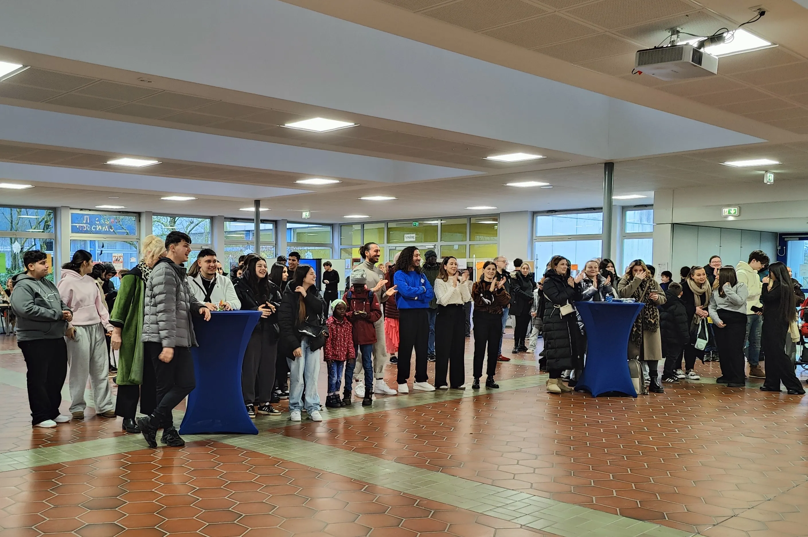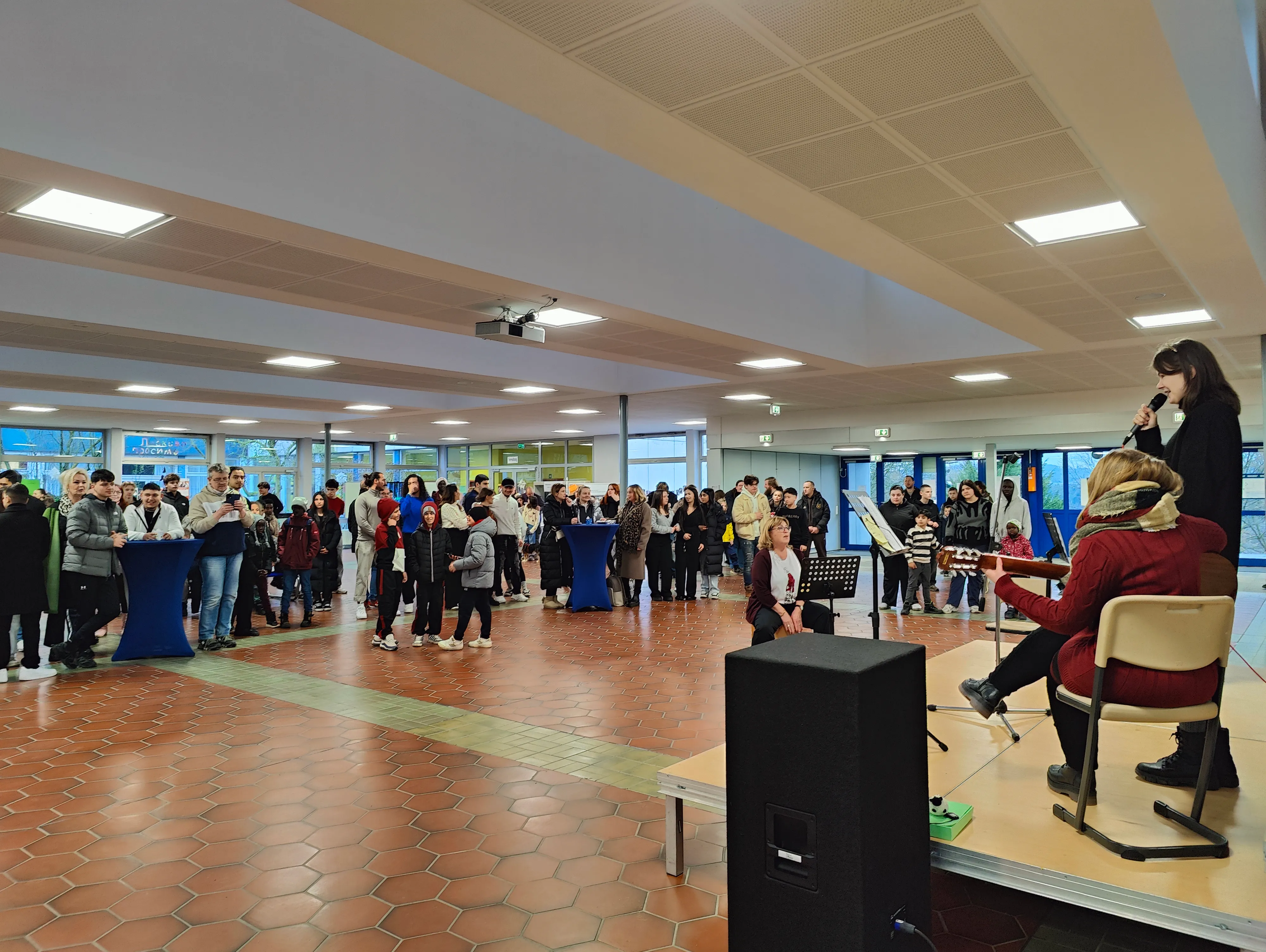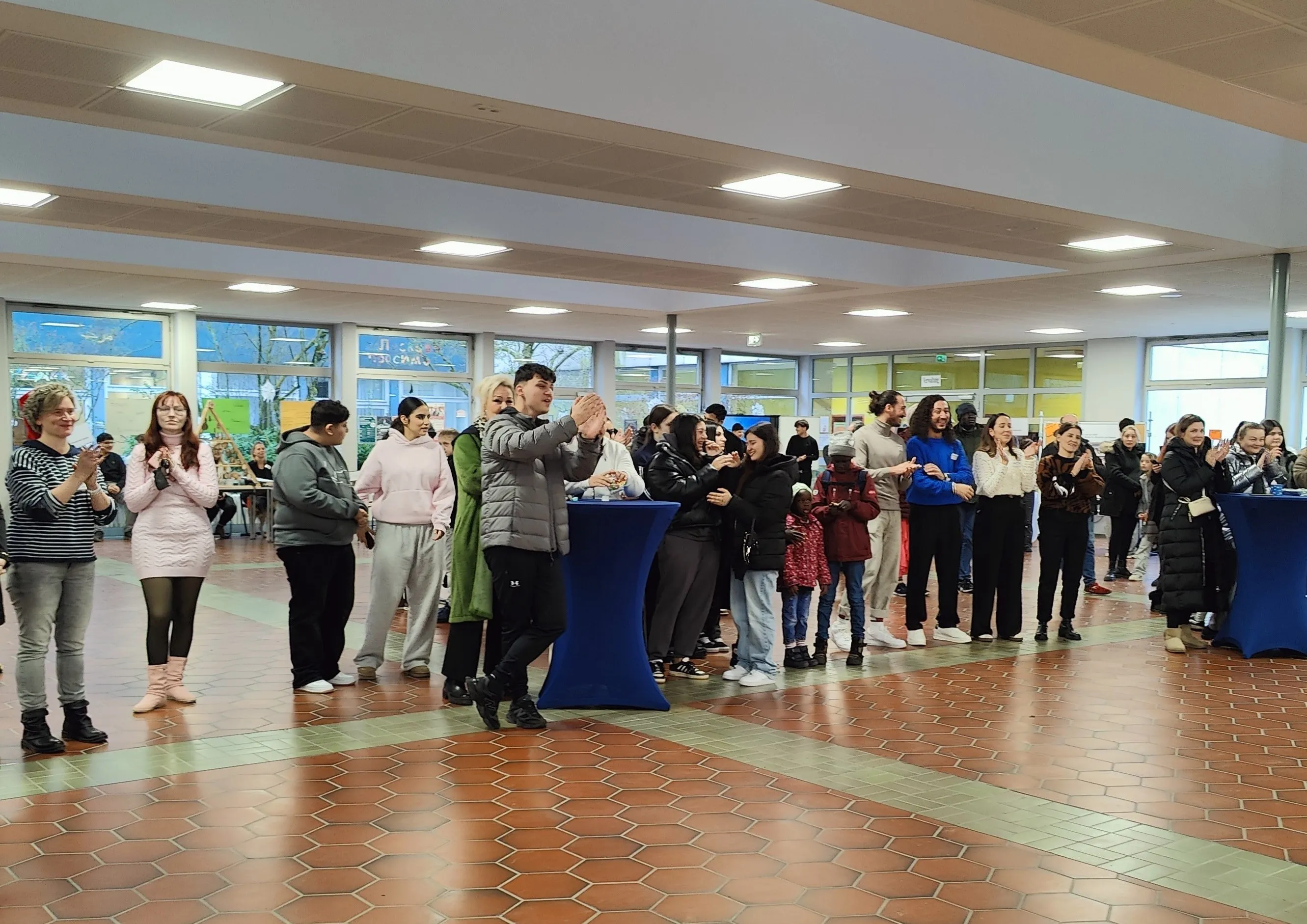 Schulleiter Thomas Lammers und Konrektor Frank Schölzel hatten Eltern, Schüler, interessierte Kinder und Nachbarn eingeladen, die Hauptschule Stadtpark kennenzulernen. Am Tag der offenen Tür am Samstag, 6. Dezember, konnten sich Besucher einen Überblick über Projekte, Unterrichtsformen und Schulalltag verschaffen. „Da fehlen einem fast die Worte, die Halle der Schule ist gut gefüllt“, freute sich Schulleiter Lammers. Zur Eröffnung spielte die Schulband das Lied „Lieblingsmensch“ von Namika.