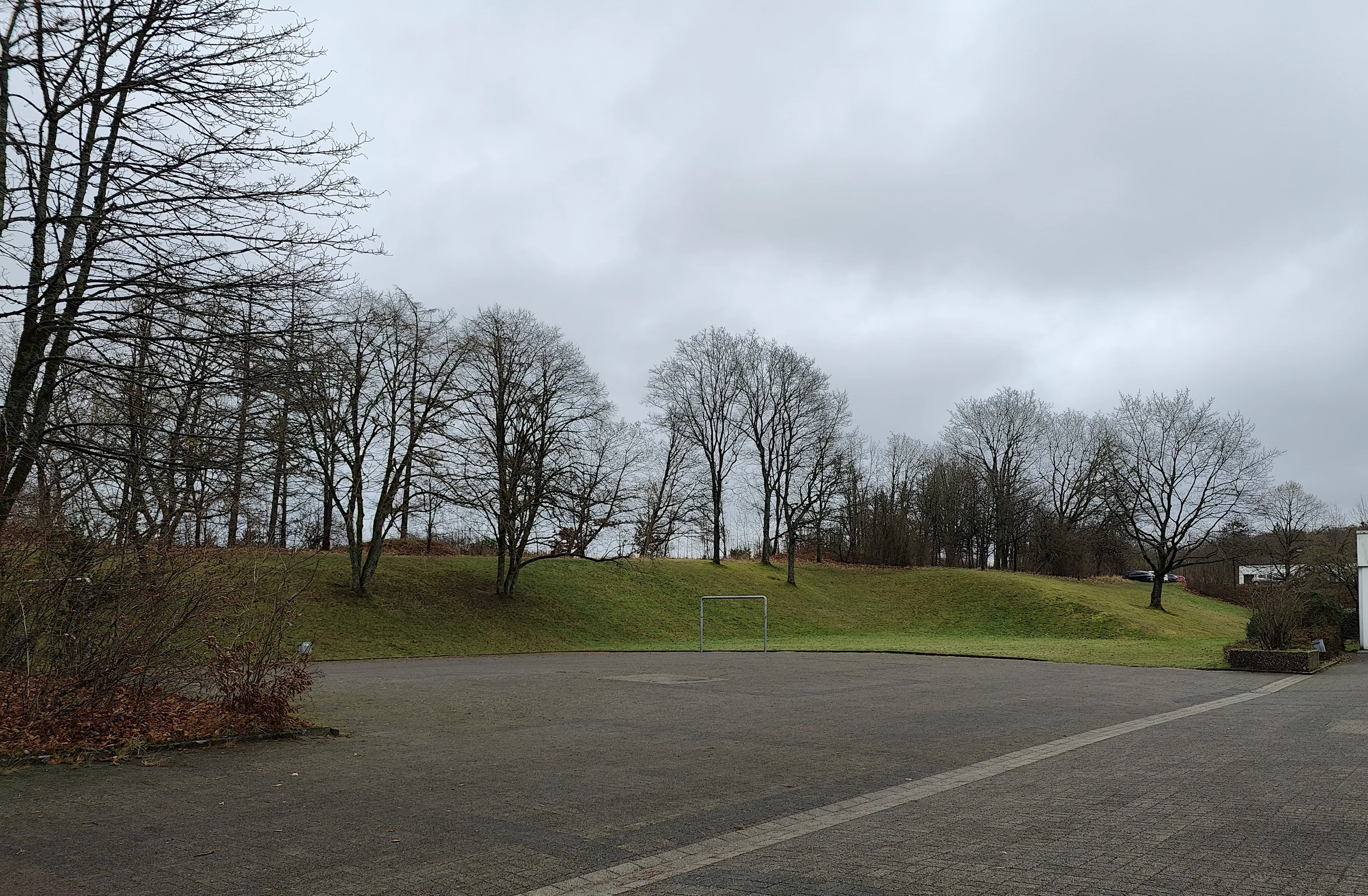 Der Pausenhof ist sehr groß, auch mit Grünfläche gestaltet. Verbesserungen sind in Planung; die Schülerinnen und Schüler werden über Befragungen einbezogen.