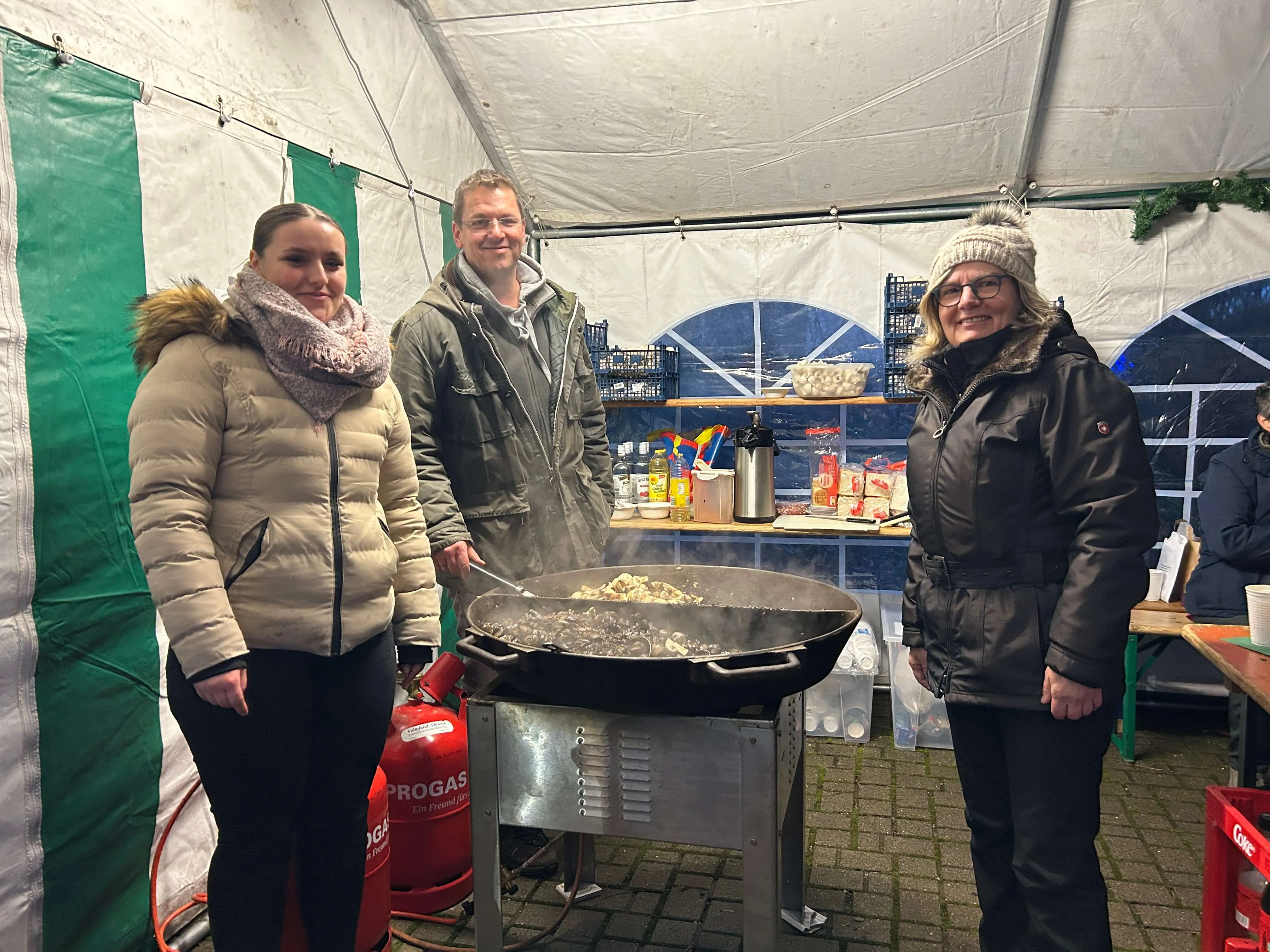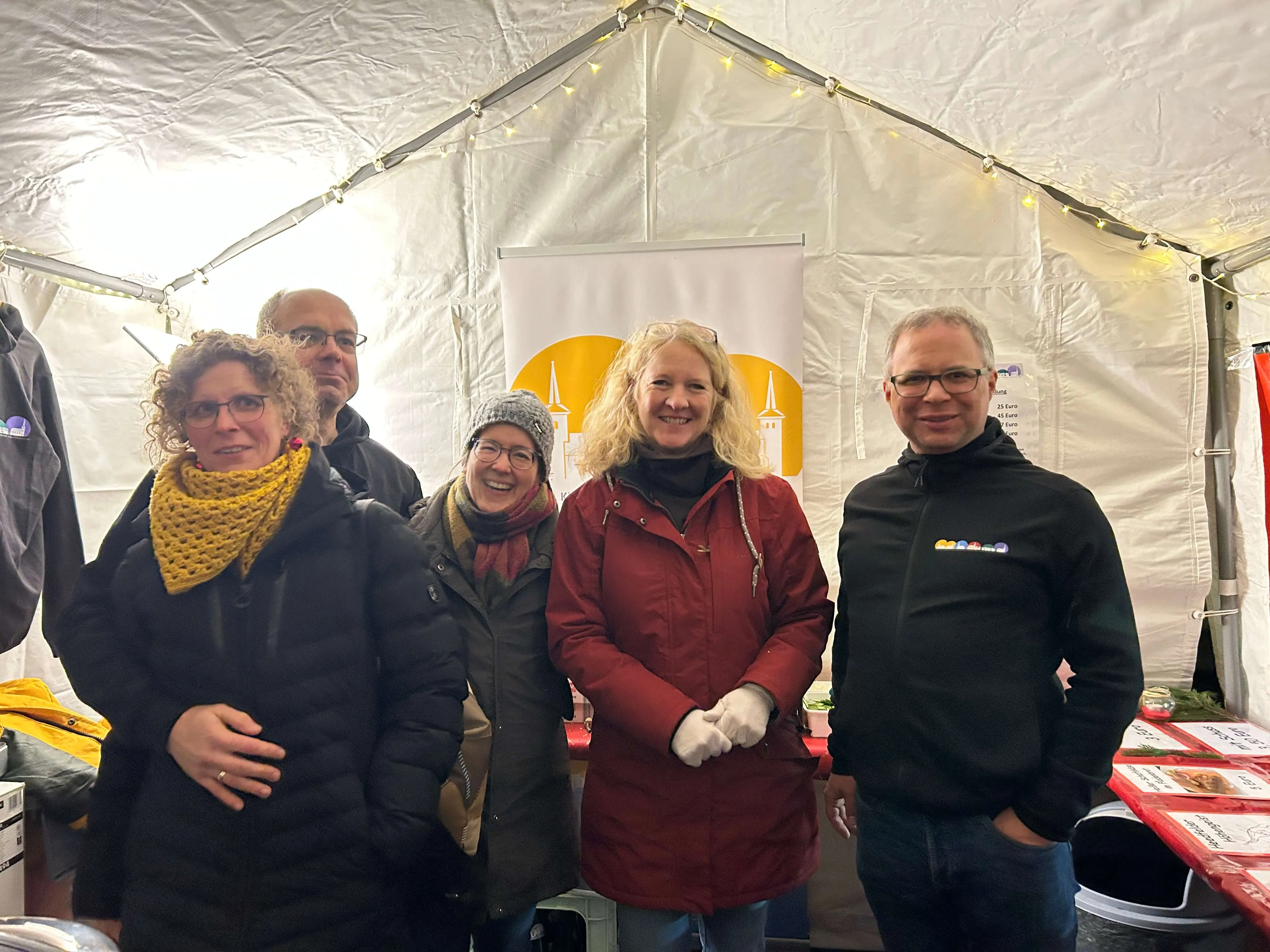 Bereits zum zehnten Mal fand der kleine Markt rund um das Gemeindehaus und Kindergarten statt — und zog trotz des eher durchwachsenen Wetters zahlreiche Besucher an. Geboten wurde diesen auch in diesem Jahr wieder einiges. So reichte das Angebot von Kunsthandwerk über Grünkohl bis hin zu Feuerzangenbowle.