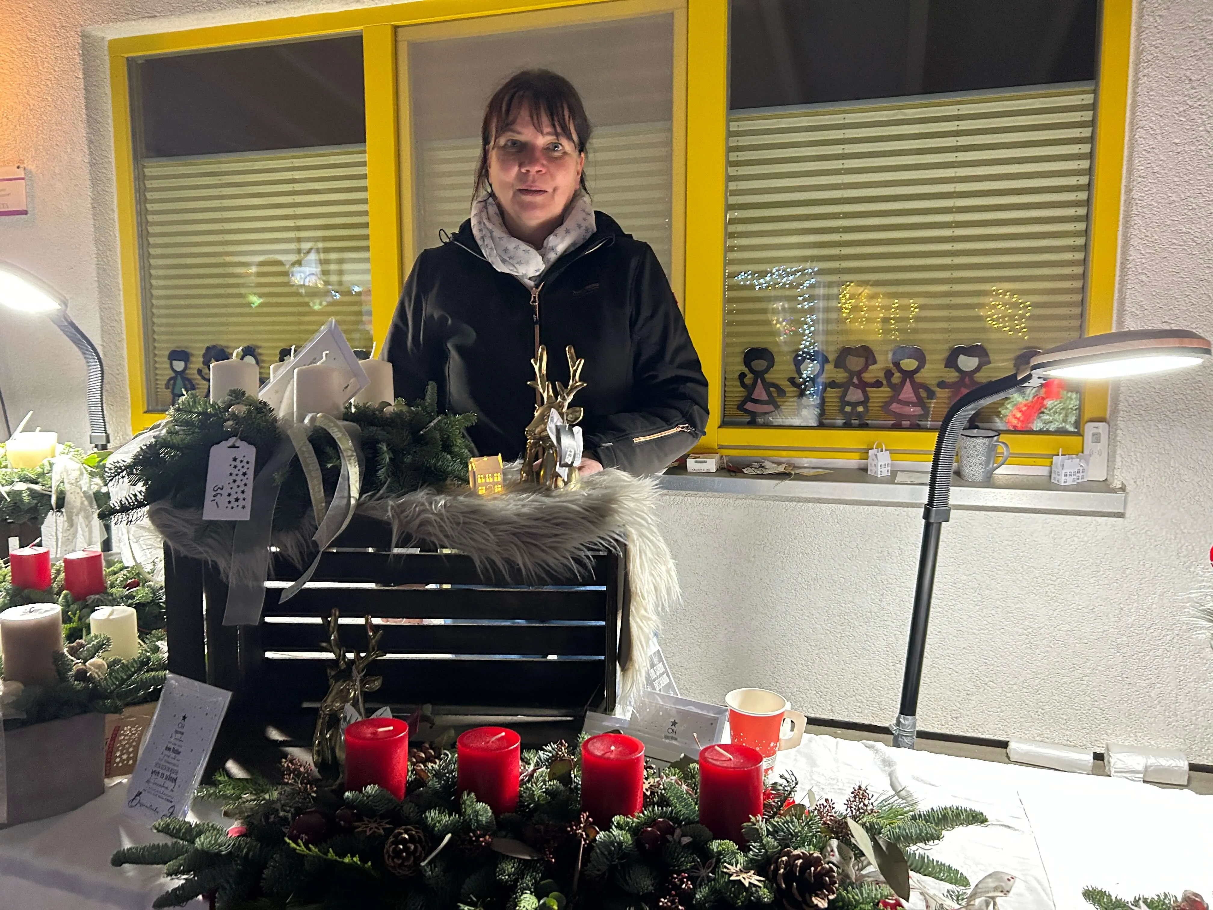 Im und vor dem Kindergarten boten die Aussteller an insgesamt zwölf Kreativständen selbst genähte Kinderkleidung, Adventsgestecke und weihnachtliche Deko-Artikel, aber auch Honig direkt vom Imker, Wolle, Puppenkleider und Hundeleinen an.