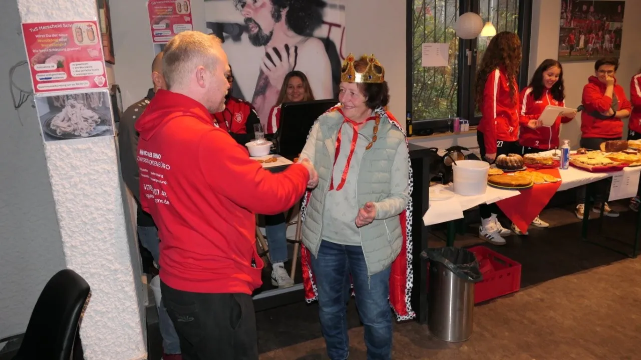 Höhepunkt am Samstag war die Krönung der neuen Herscheider Wurstkönigin. Nachfolgerin des Wurstkönigs Marvin Jügling aus dem vergangenen Jahr wurde Heidi Schröder. Sie hatte die Schätzfrage: Wie viel Meter Darm befindet sich auf einem in Heim ausgehängten Bild unter 35 Mitratenden richtig beantwortet und wurde vom Vorsitzenden des TuS Herscheid, Christoph Wilk, mit der Krone, einem Umhang und einer Wurstkette feierlich zur Wurstkönigin 2025 gekürt.