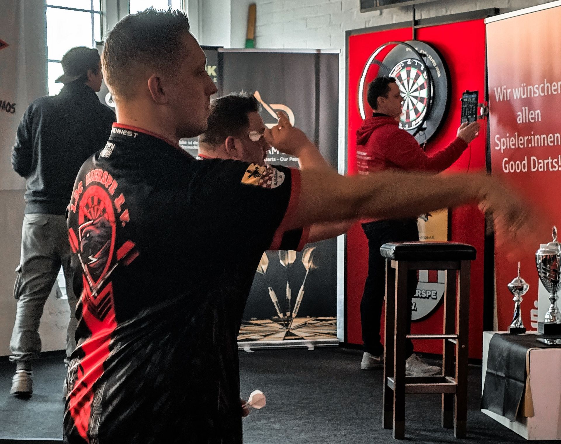 Auch im letzten Leg waren beide lange gleichauf, ehe Schmitz sich einen 70-zu-140-Vorsprung herausspielen und als Sieger aus dem Turnier hervorgehen konnte. Unter Jubel nahm er den Pokal von seinem Vereinskollegen Dominic Schröder entgegen.