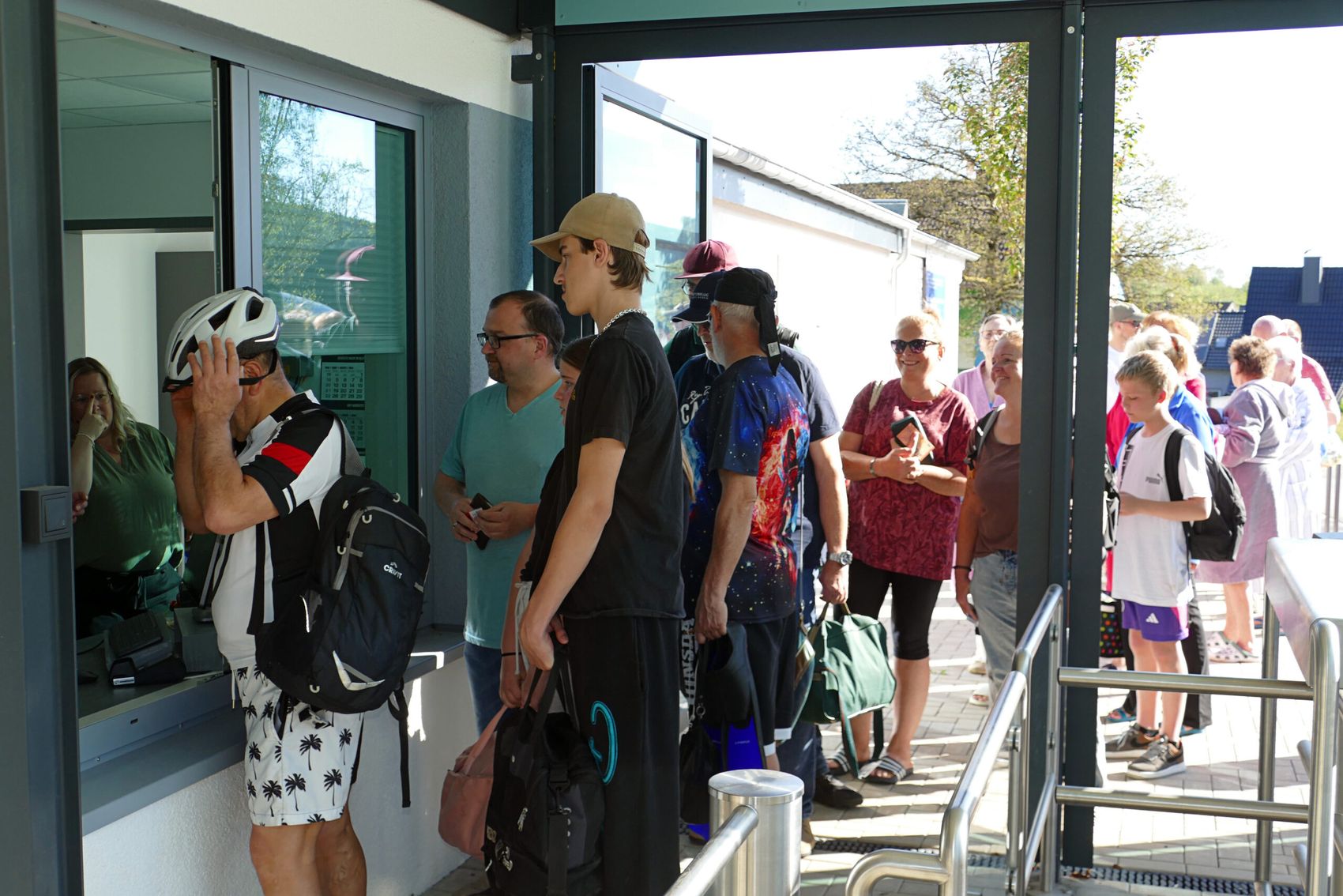 Beim Verkauf der Einzelkarten fällt auf, wie sehr das Herscheider Bad mit seinem Geheimtipp-Image ins Umland ausstrahlt. Offenbar hat sich eine Art von Arbeitsteilung zwischen den Bädern herauskristallisiert: Das Finnentroper Finto als klassisches Hallenbad, das Plettenberger AquaMagis als Spaß- und Erlebnisbad, das Bad am Lüdenscheider Nattenberg als Stadtbad — und das Herscheider Freibad als grüne Oase für die ganze Familie.