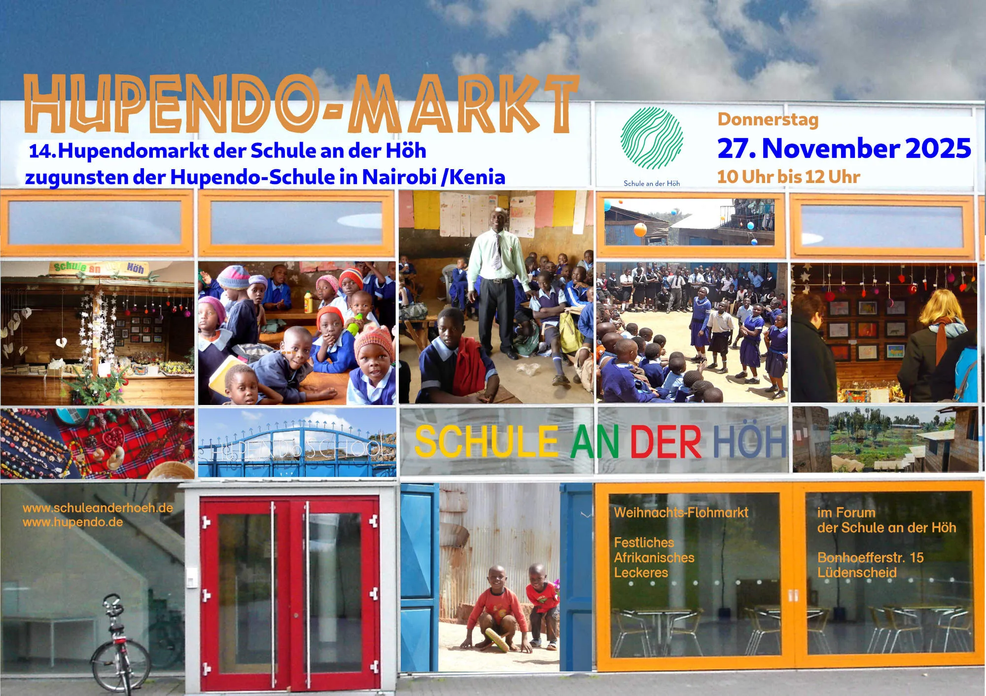 Die Schüler freuen sich schon jetzt wieder eine große Summe an die Schule überreichen zu können und hoffen darum auf viele Besucher! Der Markt findet am 27. November von 10 Uhr bis 12 Uhr in der Schule an der Höh (Bonhoefferstr. 15, 58511 Lüdenscheid statt). Weitere Informationen: www.schuleanderhoeh.de, www.hupendo.de