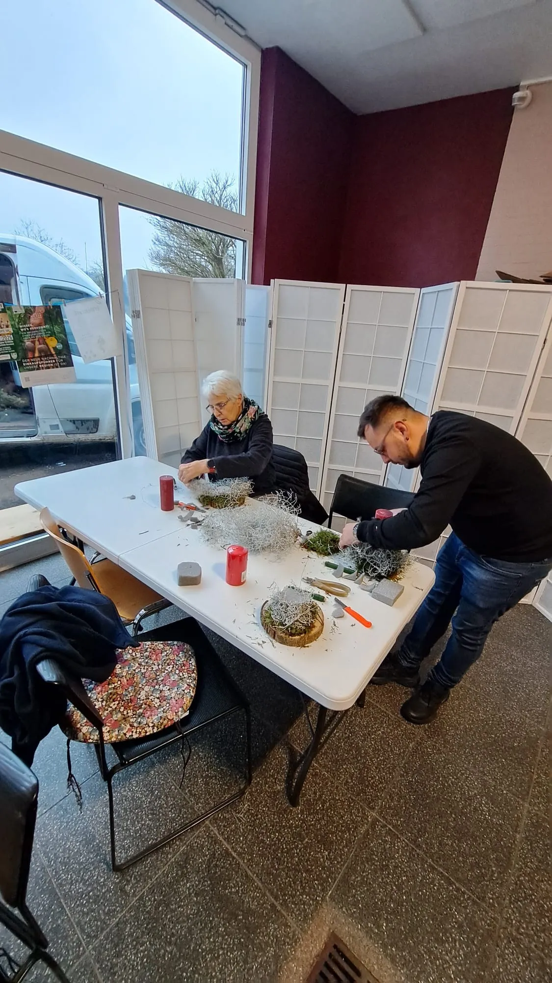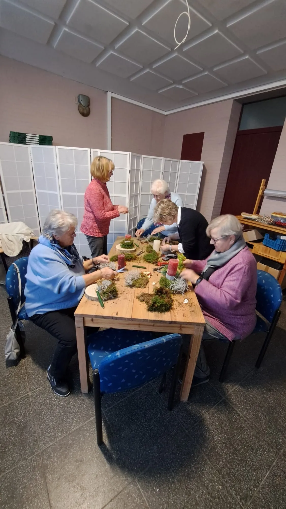 Im Dorfladen konnten sich die Ehrenamtlichen zunächst bei Kaffee und Kuchen in entspannter Atmosphäre austauschen und neue Mitglieder kennenlernen. Anschließend wartete ein besonderes Highlight auf sie: Unter fachkundiger Anleitung von Bettina Winkelmeyer von der Gärtnerei Dahlmeier durfte jeder einen eigenen Adventskranz gestalten und mit nach Hause nehmen.