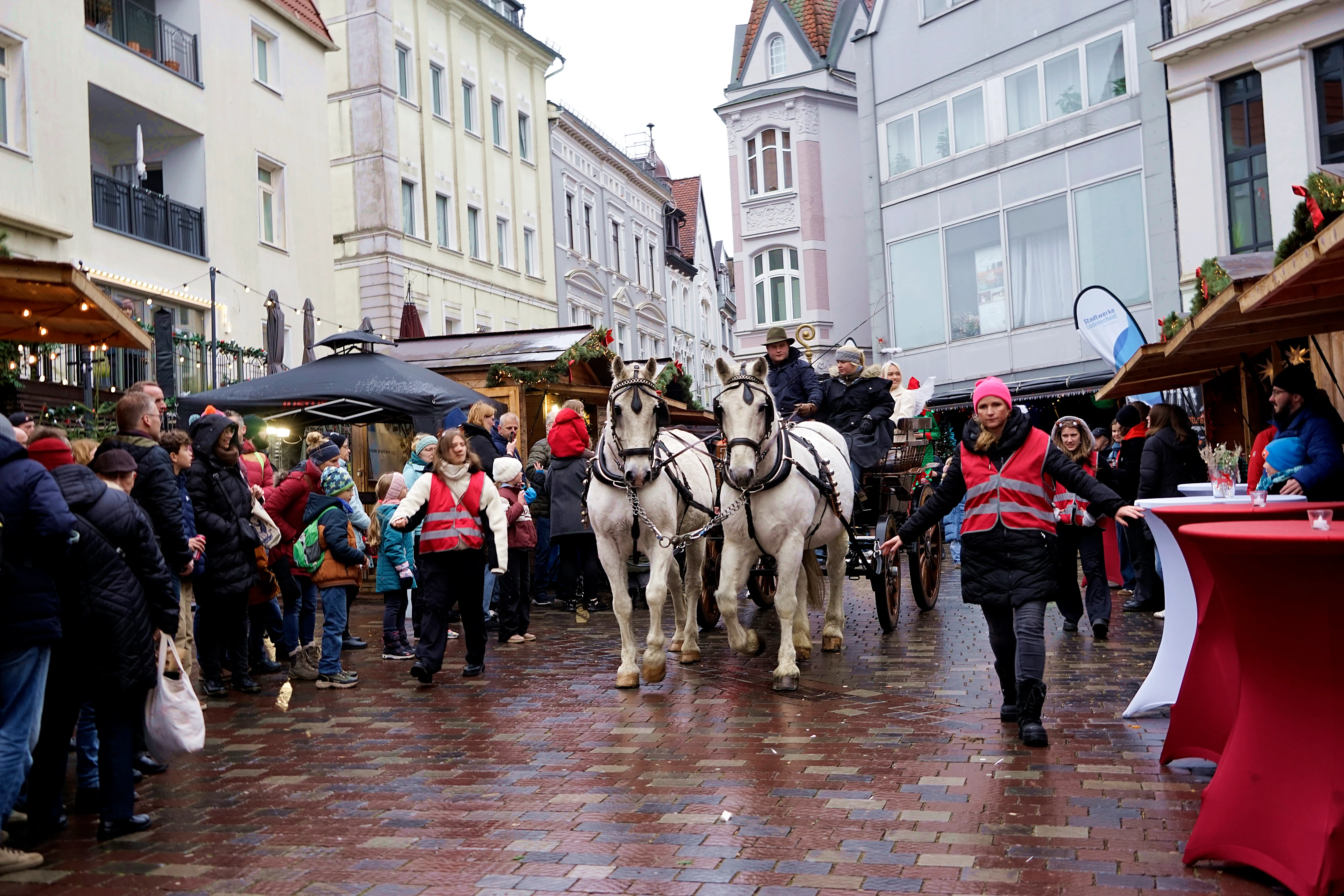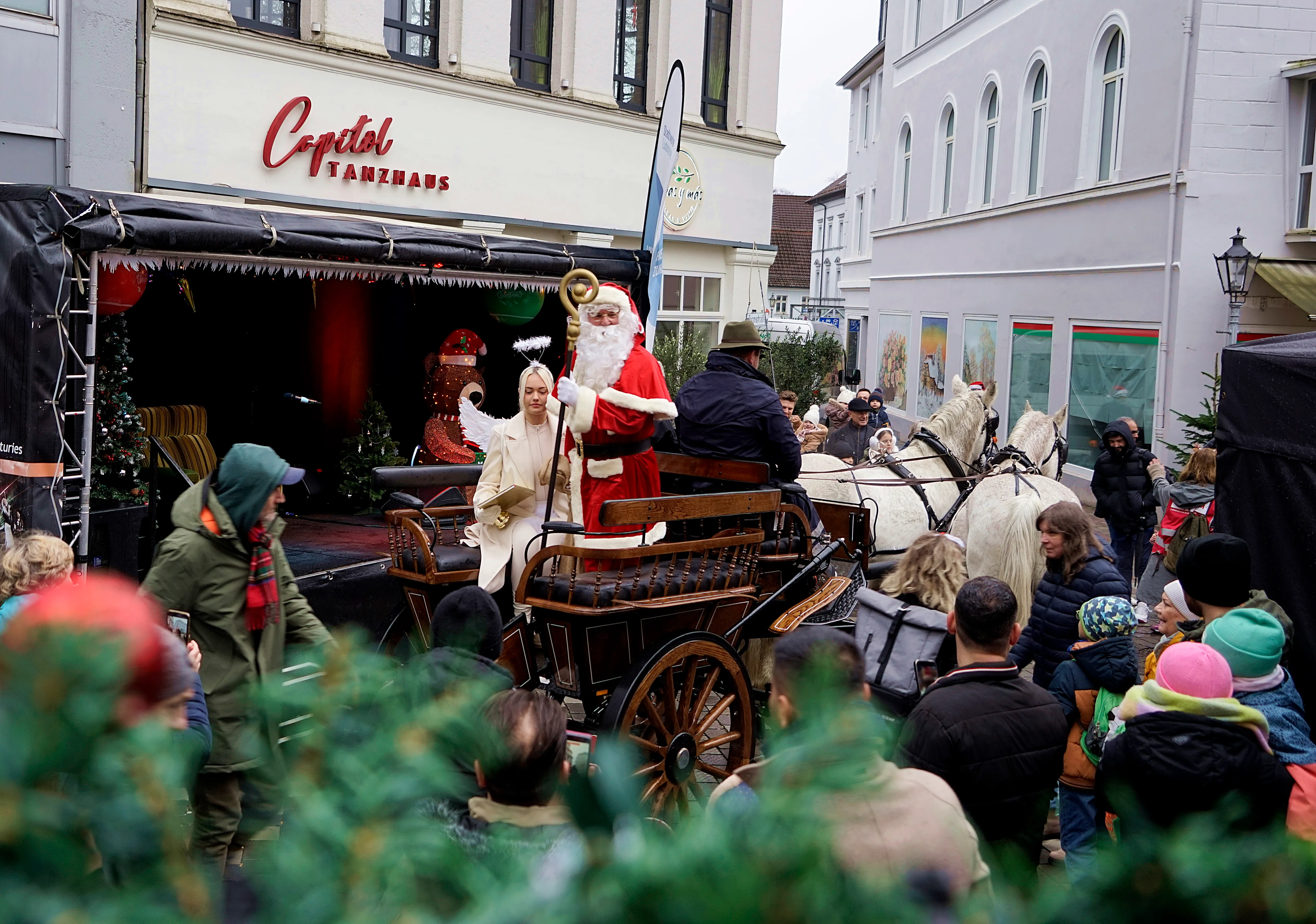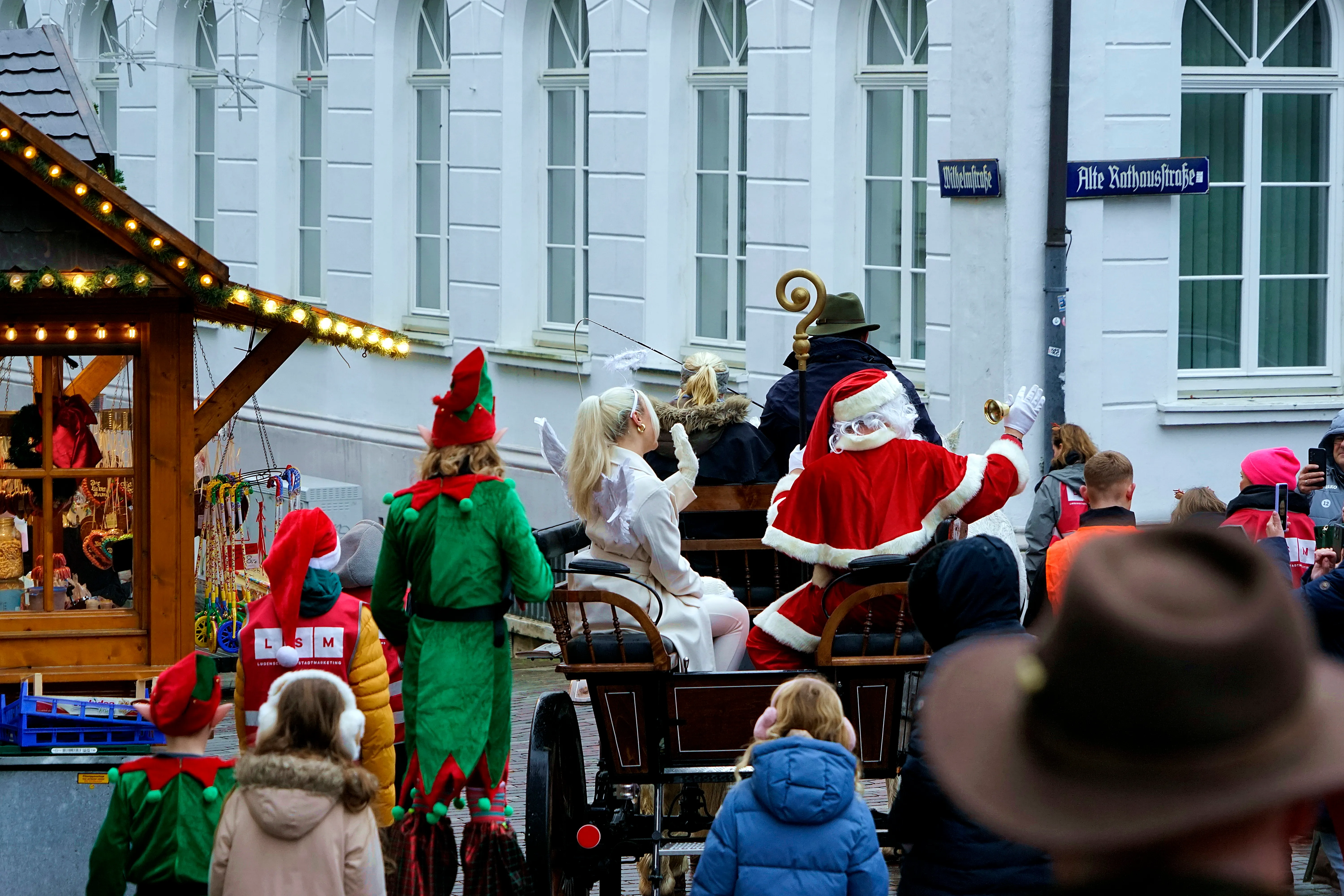 Die Kinderherzen schlugen vor allem Samstag Nachmittag höher, als der Nikolaus dem Markt einen Besuch abstattete. Mit seinen fleißigen Helfer im Schlepptau, fuhr er in einer Pferdekutsche vor und verbreitete festliche Freude. Viele Familien begleiteten die Kutsche trotz einsetzenden Regens auf ihrem Weg durch die Altstadt. Der guten Stimmung tat das Wetter keinen Abbruch. Schließlich sind die Sauerländer wetterfest. Mit Regenschirm, warmen Getränken und guter Laune trotzten sie dem grauen Himmel.