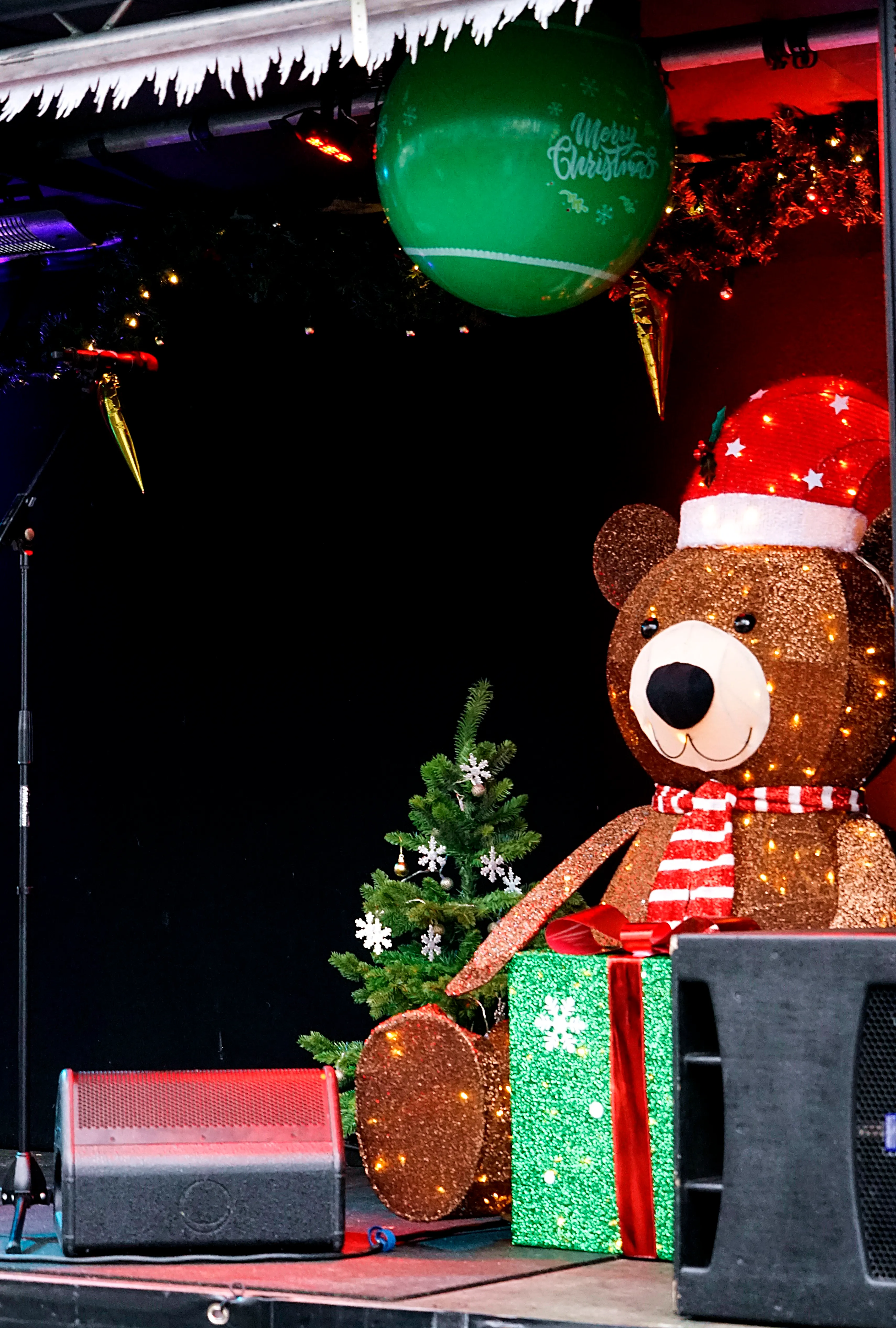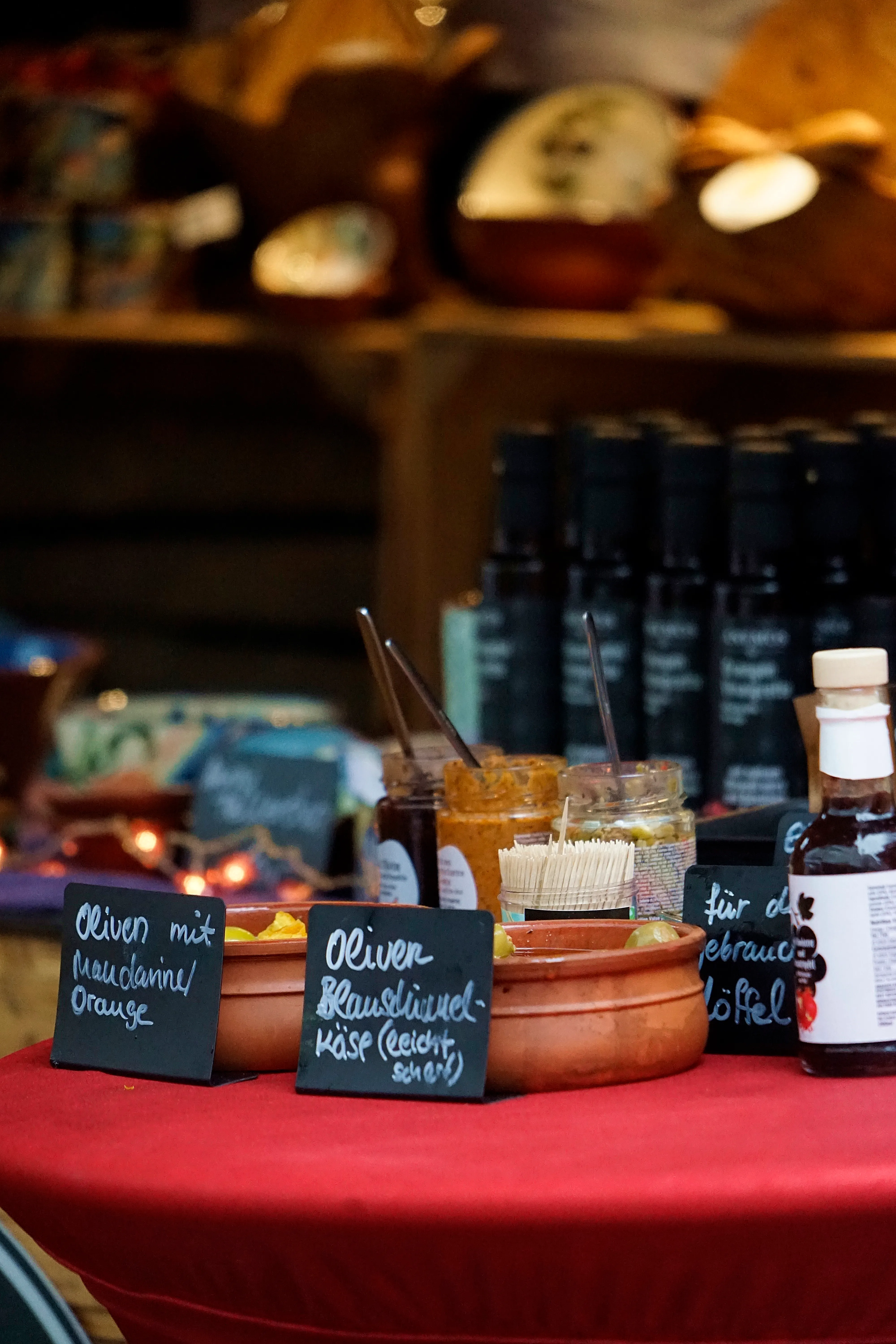 Die traditionell von Vereinen und lokalen Händlern betriebenen Stände boten Geschenkideen von kunstvoll gestrickten Winter Bekleidung bis hin zu selbstgemachten Marmeladen. Das Kulinarische Angebot reichte von würziger Feuerzangenbowle bis hin zu griechischen Köstlichkeiten.