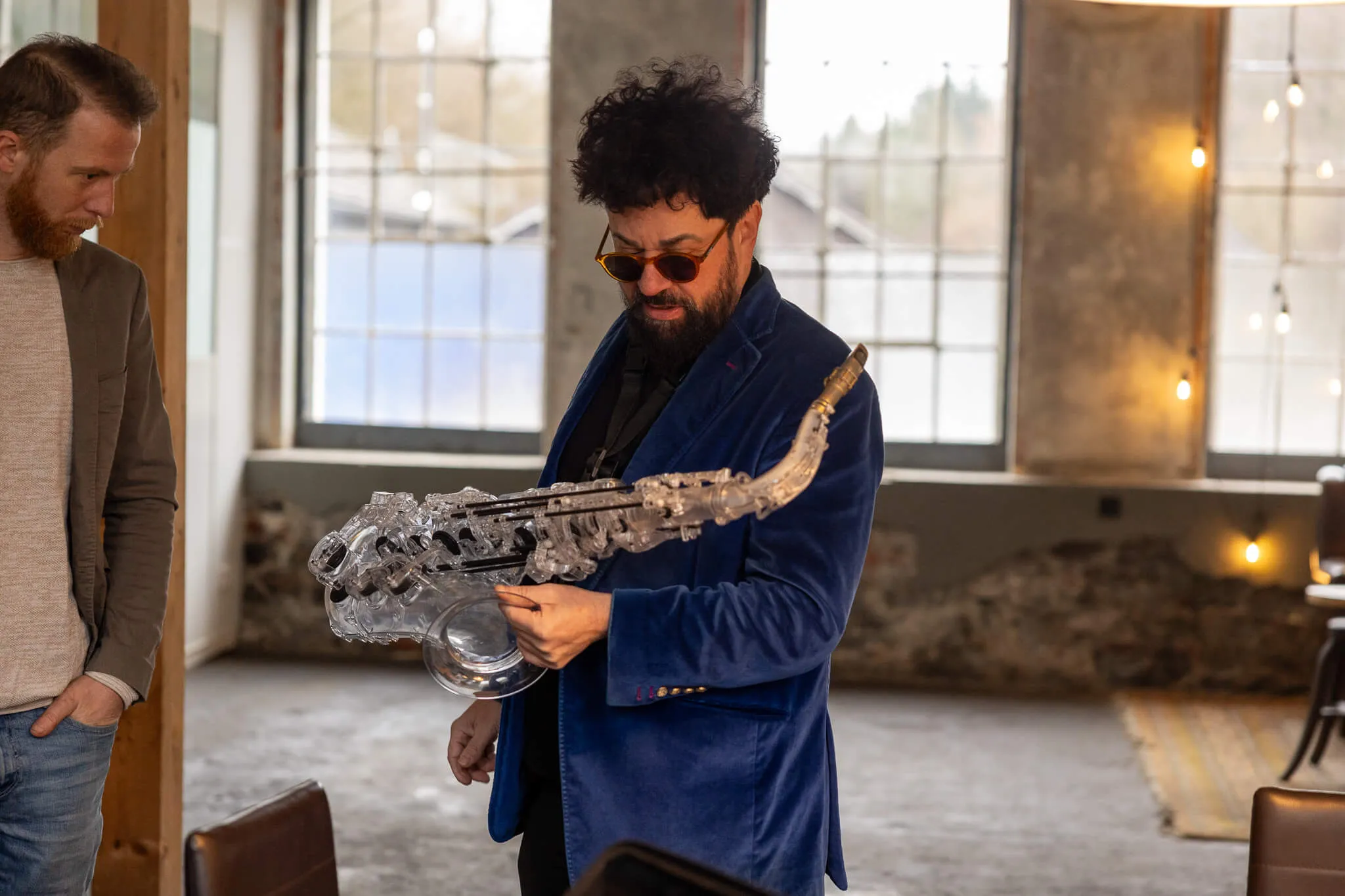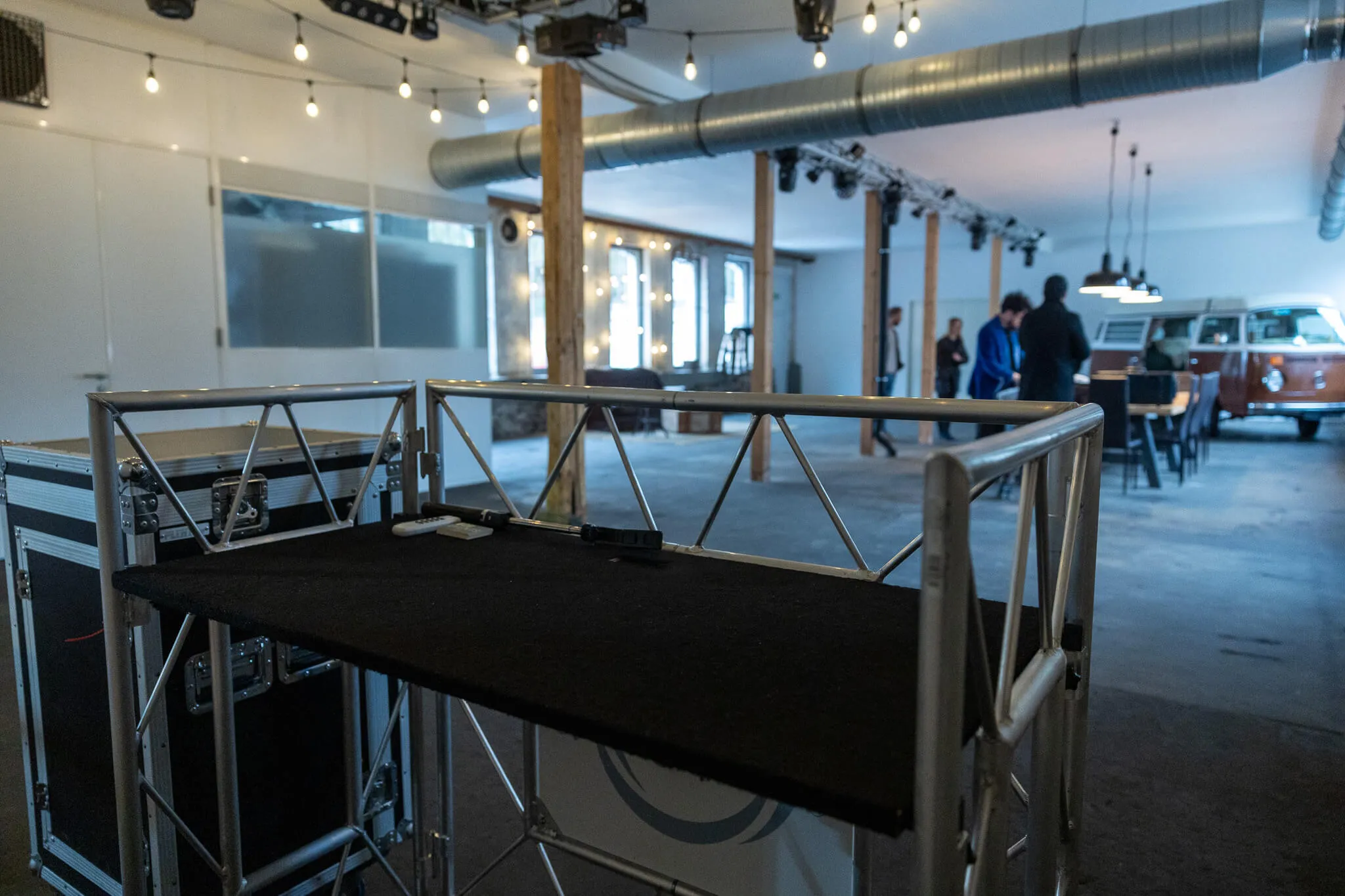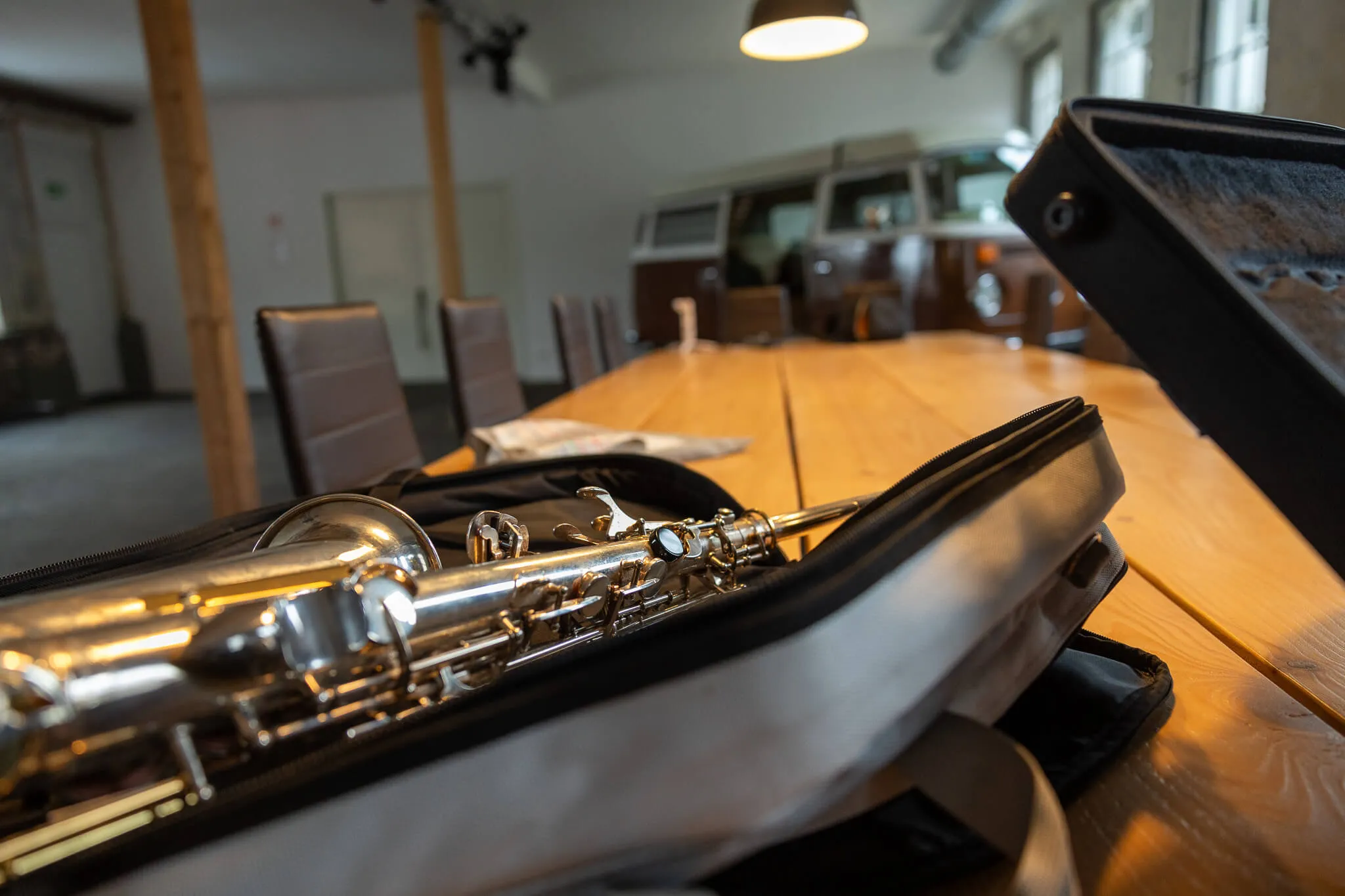 Gesagt, getan: Bereits seit 2022 habe das Ehepaar nun "viel Zeit, Geld und Herzblut", wie Gion Patz betont, in das Projekt investiert. So blieben die Fenster der ehemaligen Schraubenfabrik zwar erhalten, wurden aber komplett neu isoliert, die Toiletten barrierefrei umgebaut und eine Lüftungsanlage installiert. Knapp drei Jahre später — und nach Überwindung zahlreicher bürokratischer Hürden — kann die Location nun ab sofort gebucht werden. Und nicht nur das: Auch der braune VW T2 Camper "Giulio" des Ehepaares steht für Shootings und Events zur Verfügung, genauso wie eine alte Vespa.