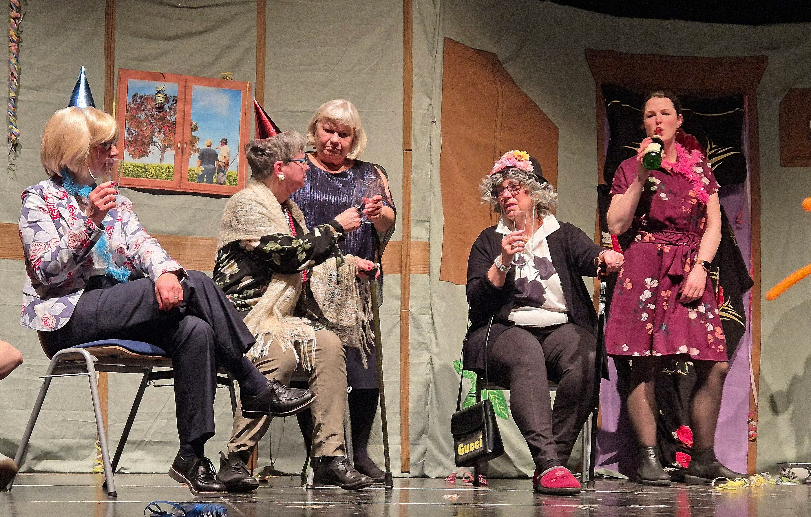 Vorausgegangen waren gut zweieinhalb Stunden Alltag im Altenheim „Zur letzten Oase“. Martina Schnerr-Bille hatte ihrem Team Rollen und Szenen auf den Leib geschrieben, was auch die Länge des Stücks erklärt. Für das Publikum, überwiegend gesetzteren Alters, war der Abend wie eine Vorschau auf ihr künftiges Leben im Seniorenheim. Nur: so amüsant und kurzweilig wie das Stück am Samstagabend, 21. Februar, dürfte die Realität kaum werden.