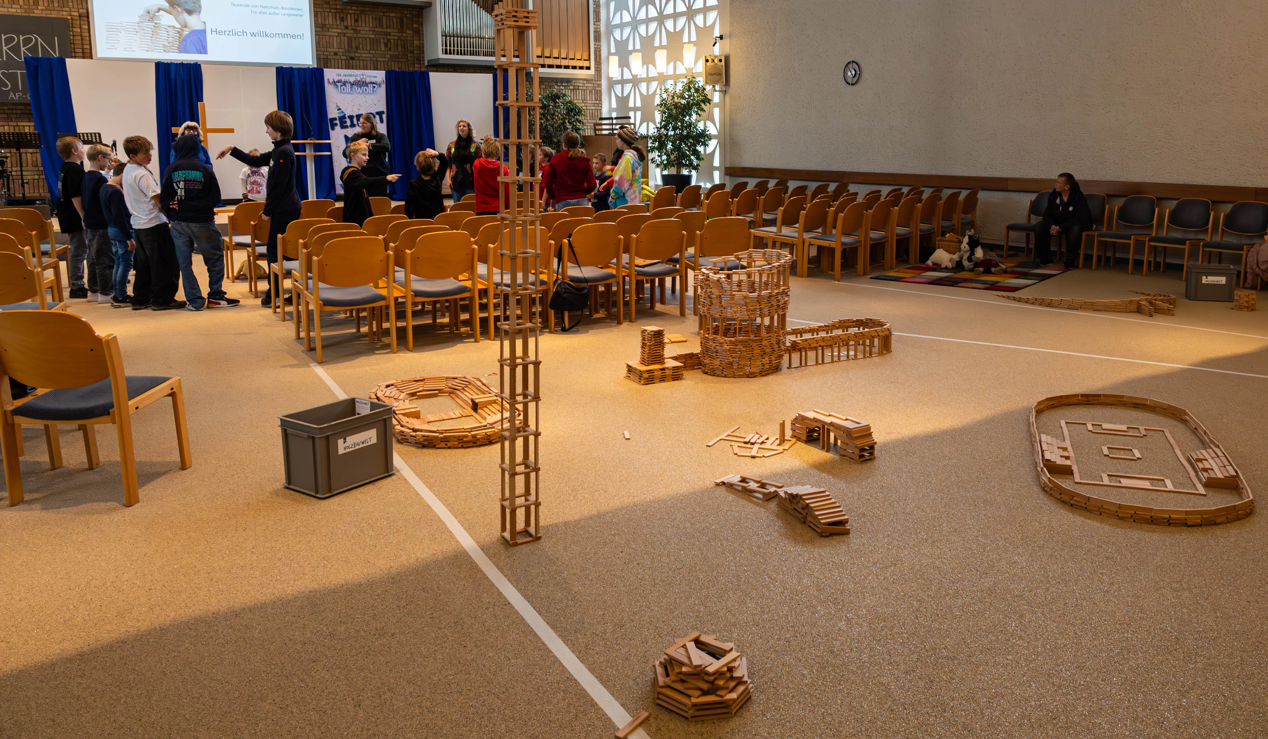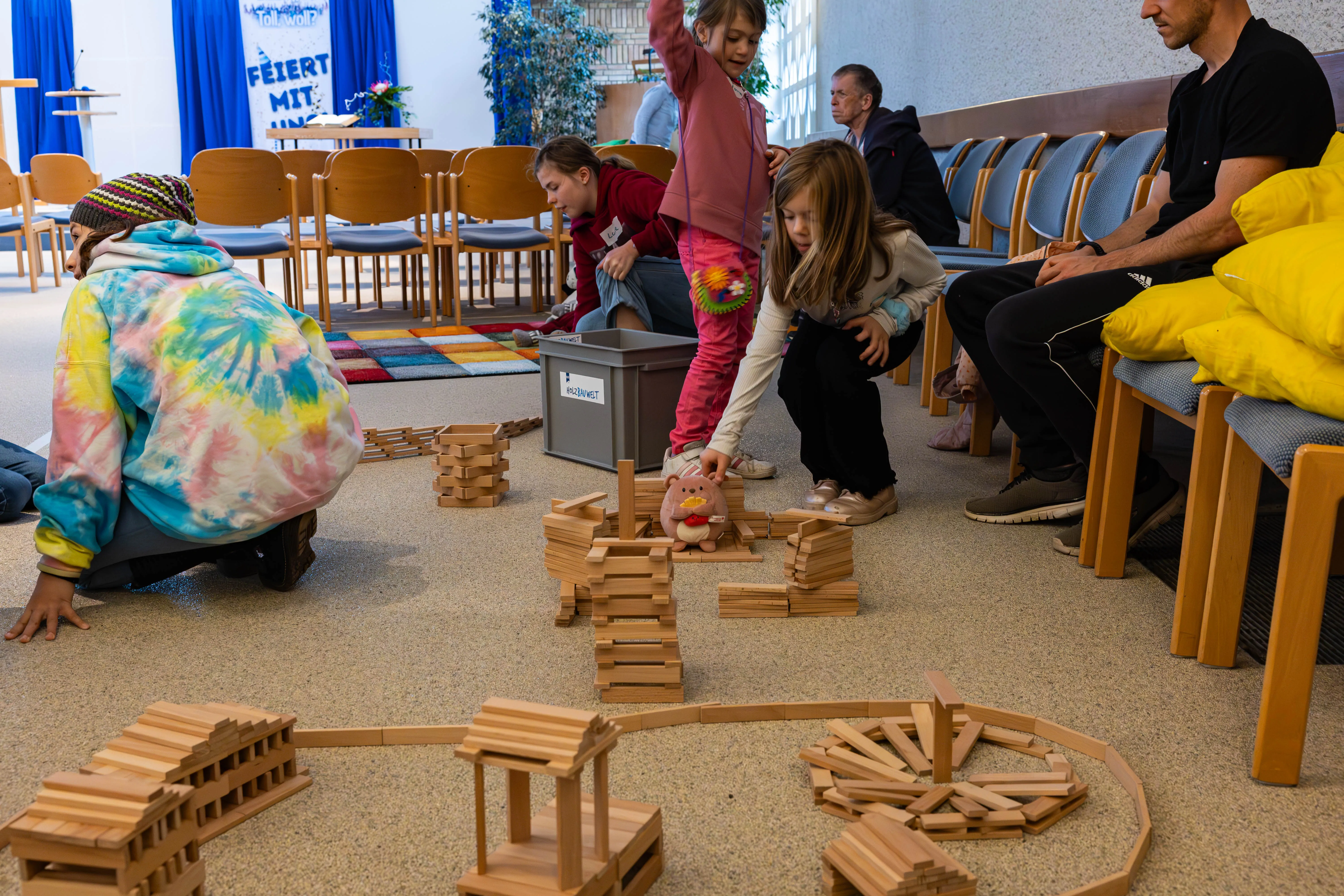 Bei den "Holzbautagen" ist der Name Programm. Mit einfachen Holzbausteinen haben die Kinder die Möglichkeit, ihrer Fantasie freien Lauf zu lassen. An drei Tagen, vom 20. bis zum 22. Oktober, haben die Kinder jeweils von 15 Uhr bis 17 Uhr Zeit zum Bauen. Dabei folgen alle drei Tage dem gleichen Muster, wie Häusser erklärt: Zu Beginn gibt es eine kleine Challenge mit Bezug auf den darauf folgenden christlichen Impuls. Danach haben die Kinder rund eine Stunde Zeit zum "freien Bauen", ehe es die letzten zehn Minuten einen gemeinsamen Tagesabschluss gibt.