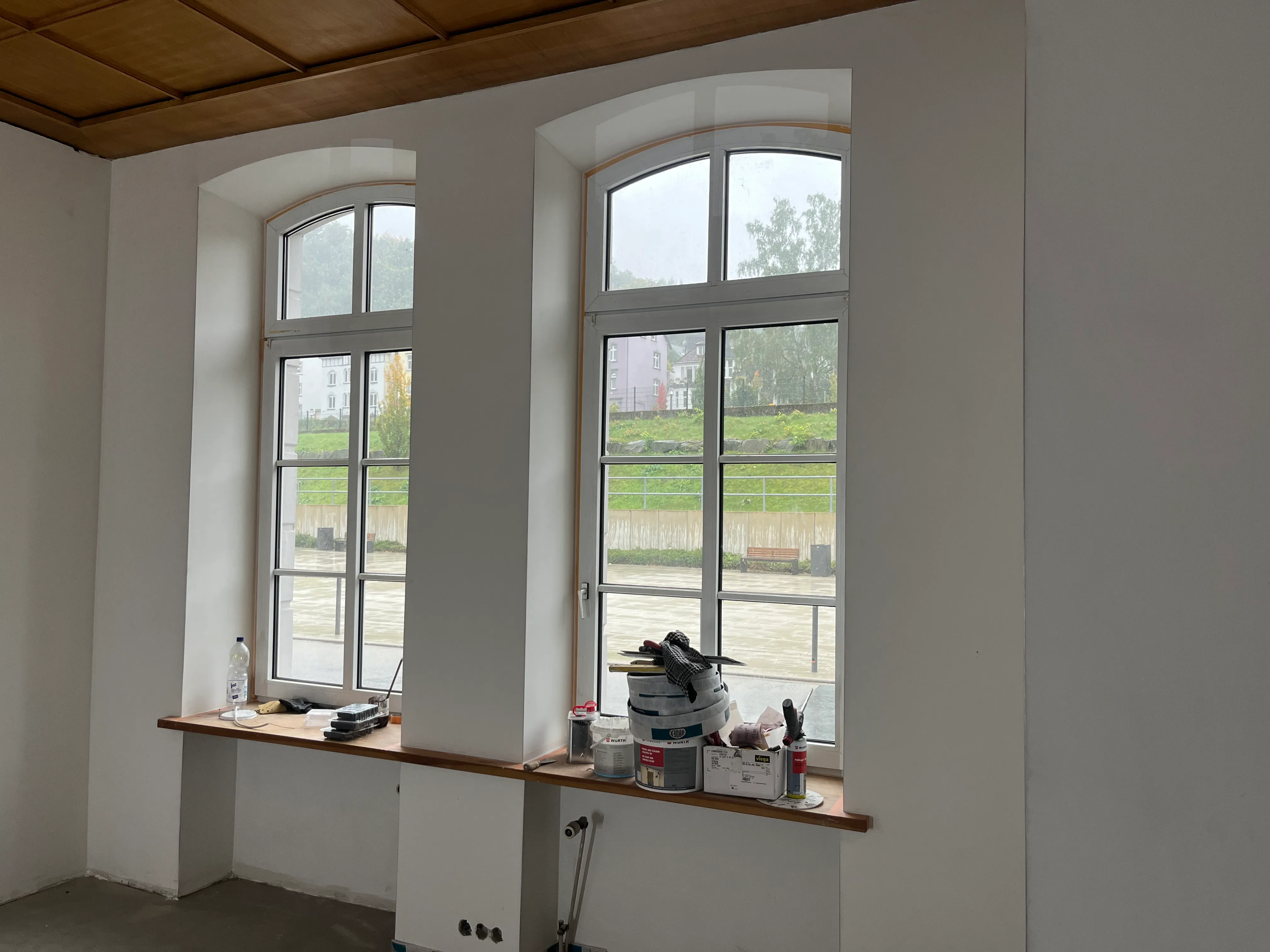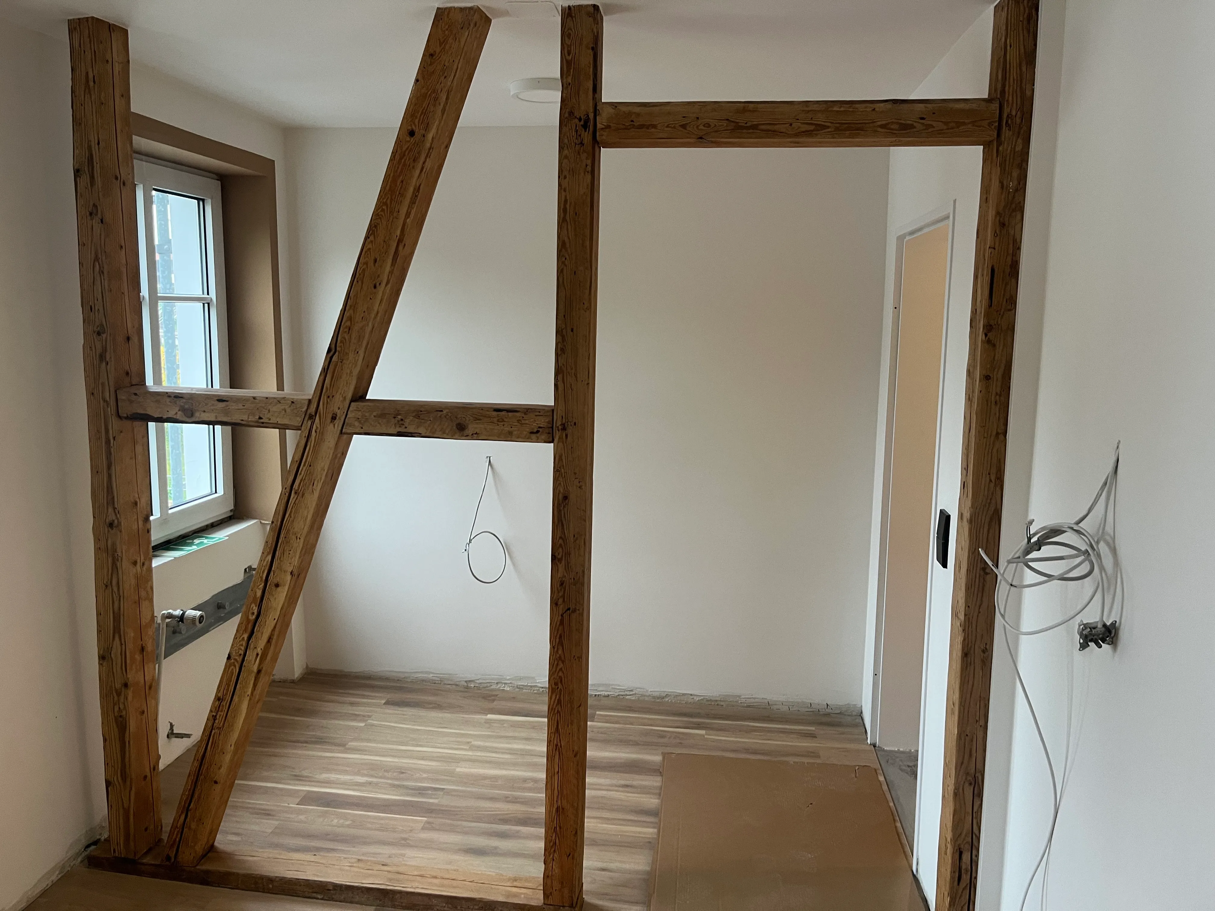 Deutlich weiter fortgeschritten hingegen sind die Arbeiten in den beiden oberen Geschossen des aus dem Jahre 1827 stammenden Gebäudes. Die insgesamt vier Einzel- und fünf Doppelzimmer stehen "kurz vor der Fertigstellung", wie Fath erklärt. Und tatsächlich: In den frisch renovierten Badezimmern hängen bereits die Spiegel, auf dem neu verlegten Vinylboden stapeln sich die Matratzen; die Möbel sollen innerhalb der nächsten zwei Wochen geliefert werden.
