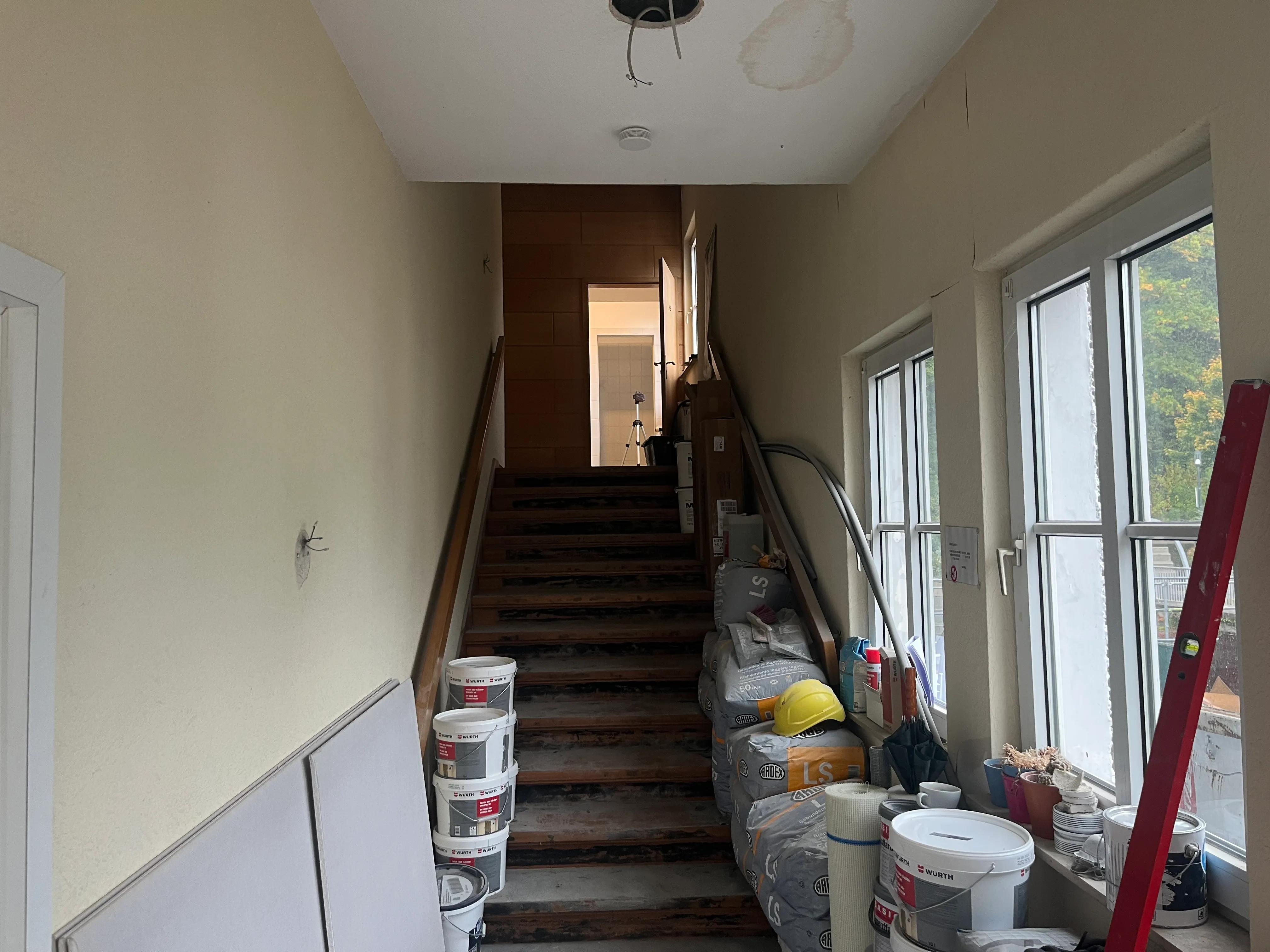 Eine Frage stellt sich jedoch beim Gang durch das recht schmale Treppenhaus, das mit schmalen Stufen ausgestattet ist - die Frage nach der Barrierefreiheit. "Einen Aufzug oder Treppenlift werden wir hier leider nicht integrieren können", bedauert Christian Rusch. Die räumlichen Gegebenheiten würden dies schlicht nicht hergeben. Das Erdgeschoss, die dortigen Toiletten und die Terrasse hingegen sollen laut Rusch barrierefrei zugänglich sein.