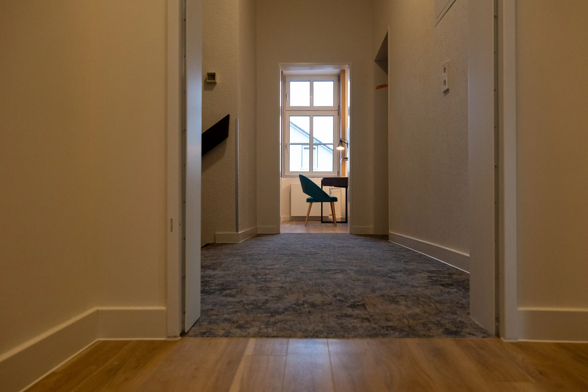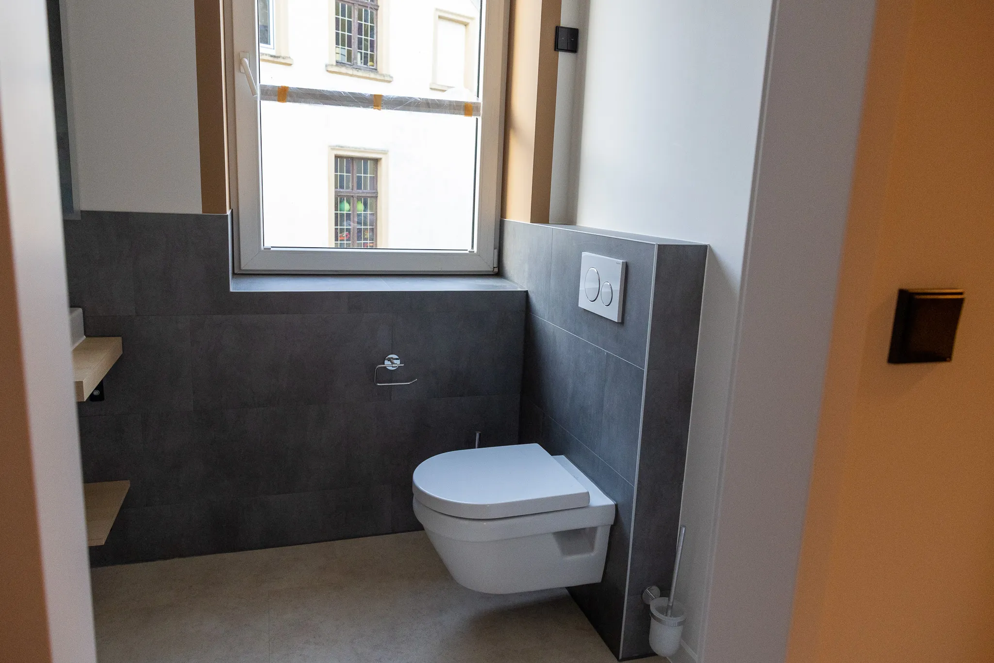 Schon beim Betreten des Gebäudes an der Bahnhofstraße wird klar: Seit der letzten Besichtigung durch LokalDirekt im Oktober hat sich einiges getan. Lediglich der Keller, in dem Multifunktionsraum, Küche und eine neue Toilettenanlage entstehen, sieht noch nach Baustelle aus. Sowohl das Erdgeschoss als auch die oberen Etagen hingegen erstrahlen schon in neuem Glanz. Probleme mit der Statik im Keller sorgten zuletzt für eine Verzögerung im Zeitplan — und eine Erhöhung der Gesamtkosten für die Sanierung. Diese liegen nunmehr bei rund 1,8 Millionen Euro. Abgeschlossen werden sollen die Arbeiten laut Christian Mutschler, Geschäftsführer des Planungsbüros Managed by Mutschler, im ersten Quartal des nächsten Jahres.