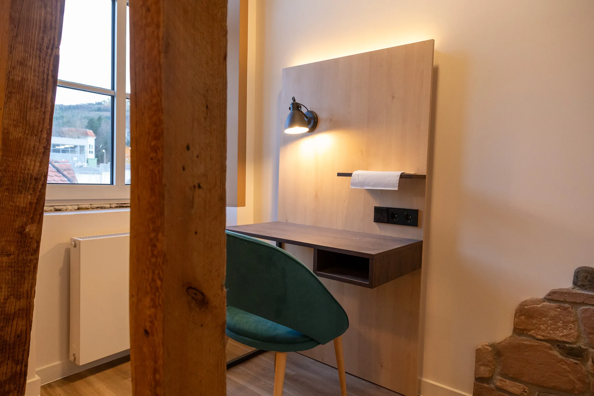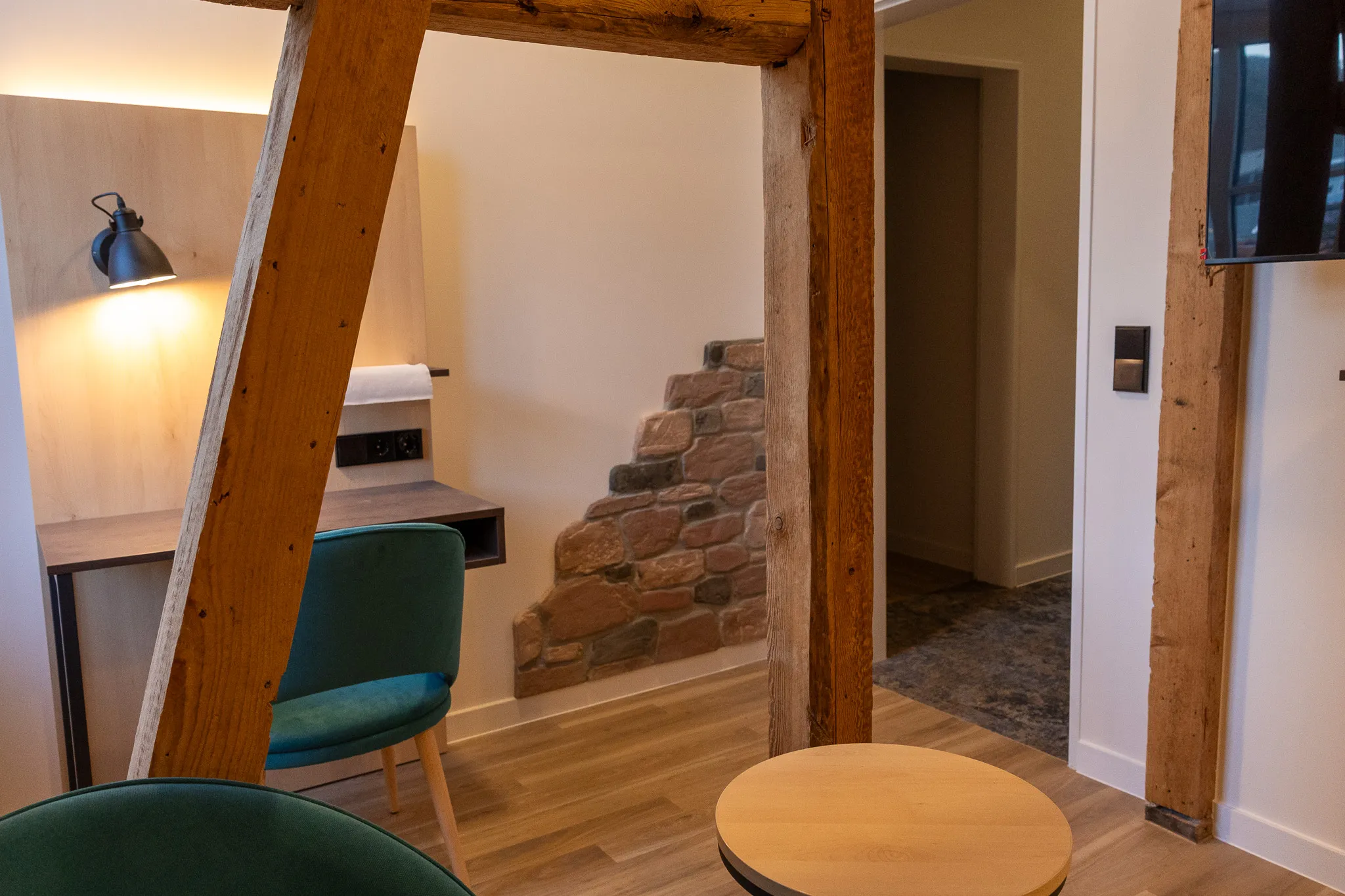 Fachbereichsleiter Oliver Emmerichs gibt sich zuversichtlich: "Wir haben hier, mit Unterstützung des Teams von Managed by Mutschler, im Ortskern ein echtes Juwel erschaffen." Die Tatsache, dass die oberen beiden Etagen — und damit die Hotelzimmer — nicht barrierefrei zu erreichen sind, bedauert er zwar grundsätzlich, fügt aber hinzu: "Das alte Gebäude bietet schlicht keinen Platz für einen Aufzug." Immerhin, so Emmerichs weiter, seien Terrasse und Restaurant zukünftig barrierefrei zu erreichen.