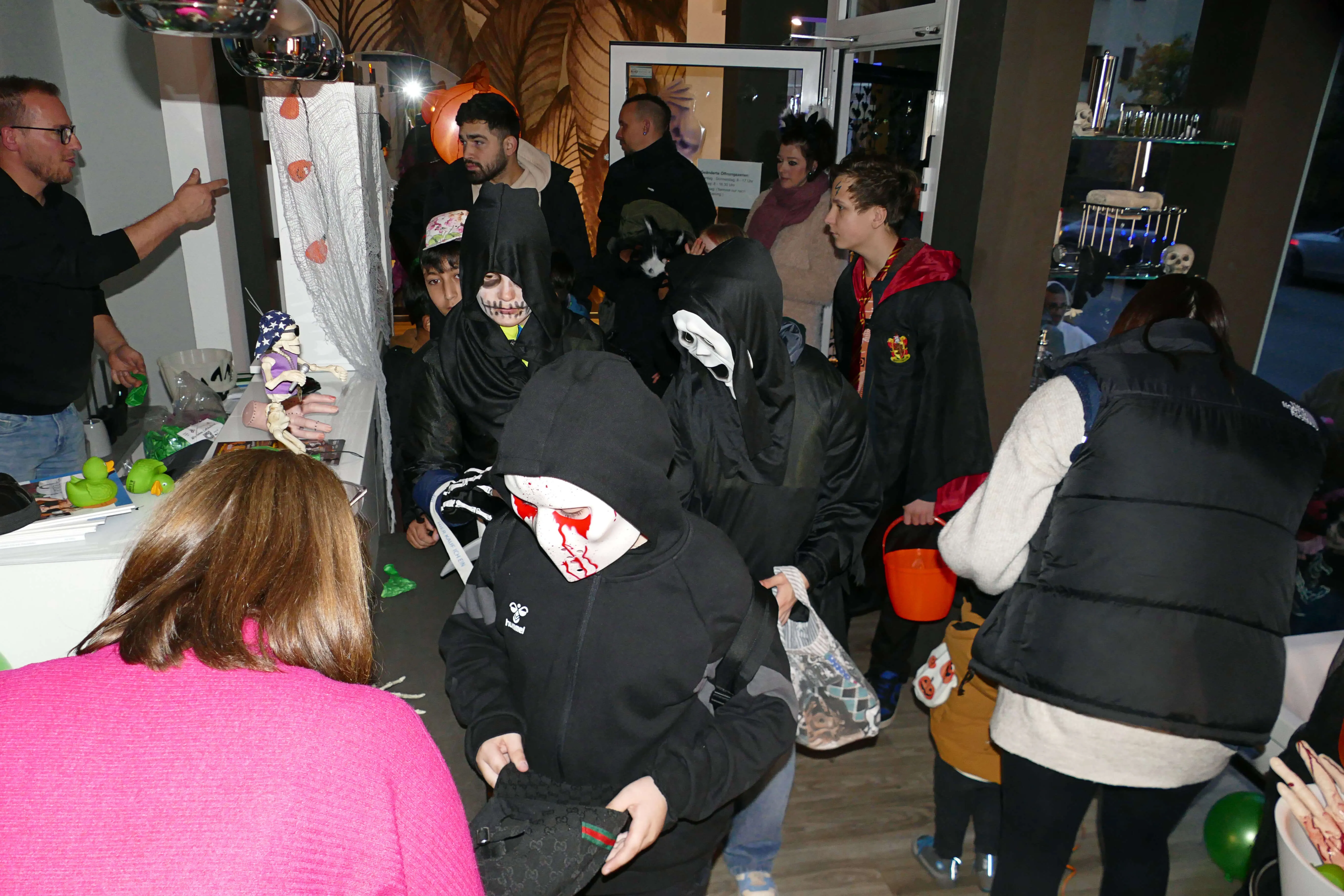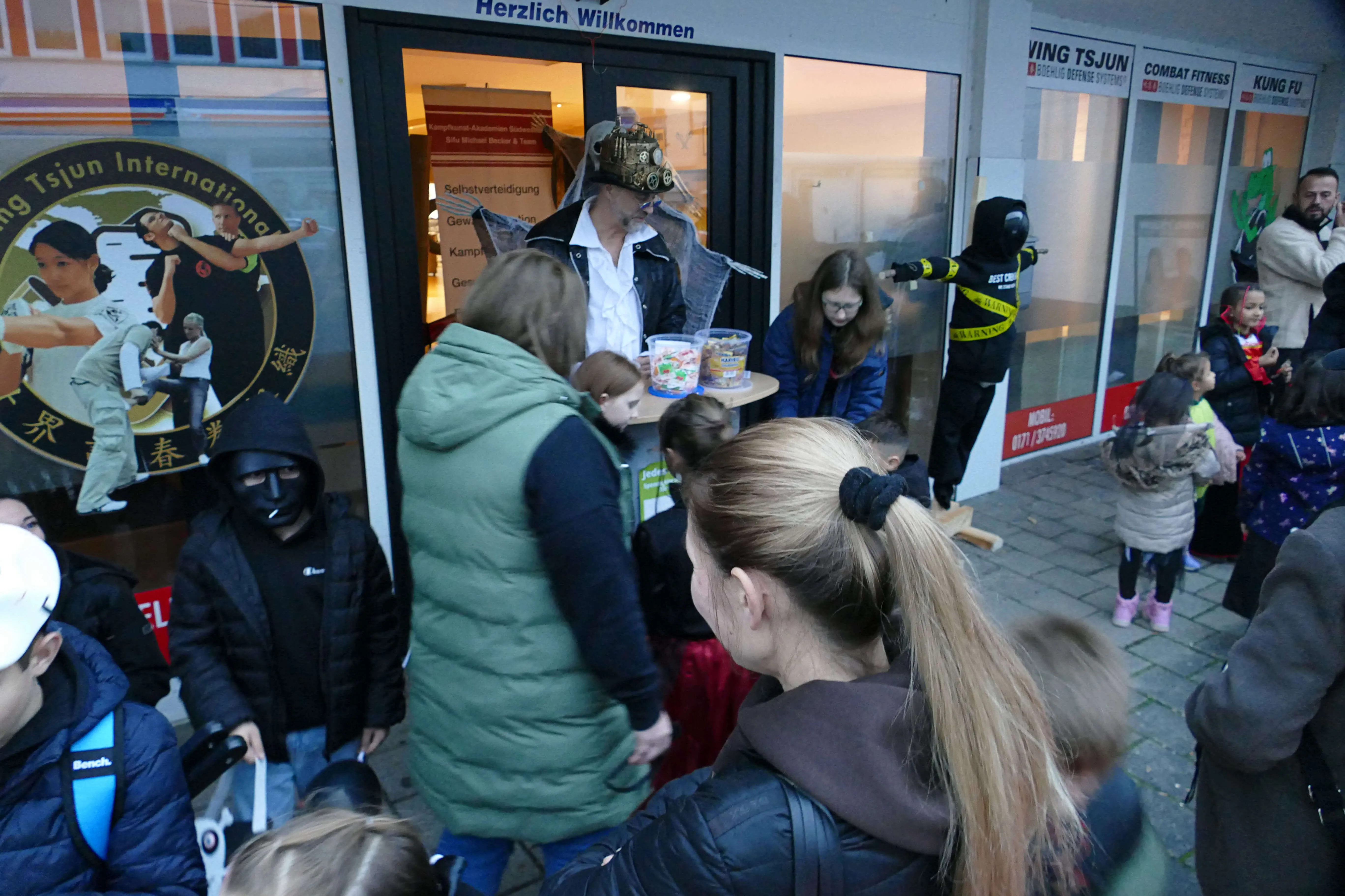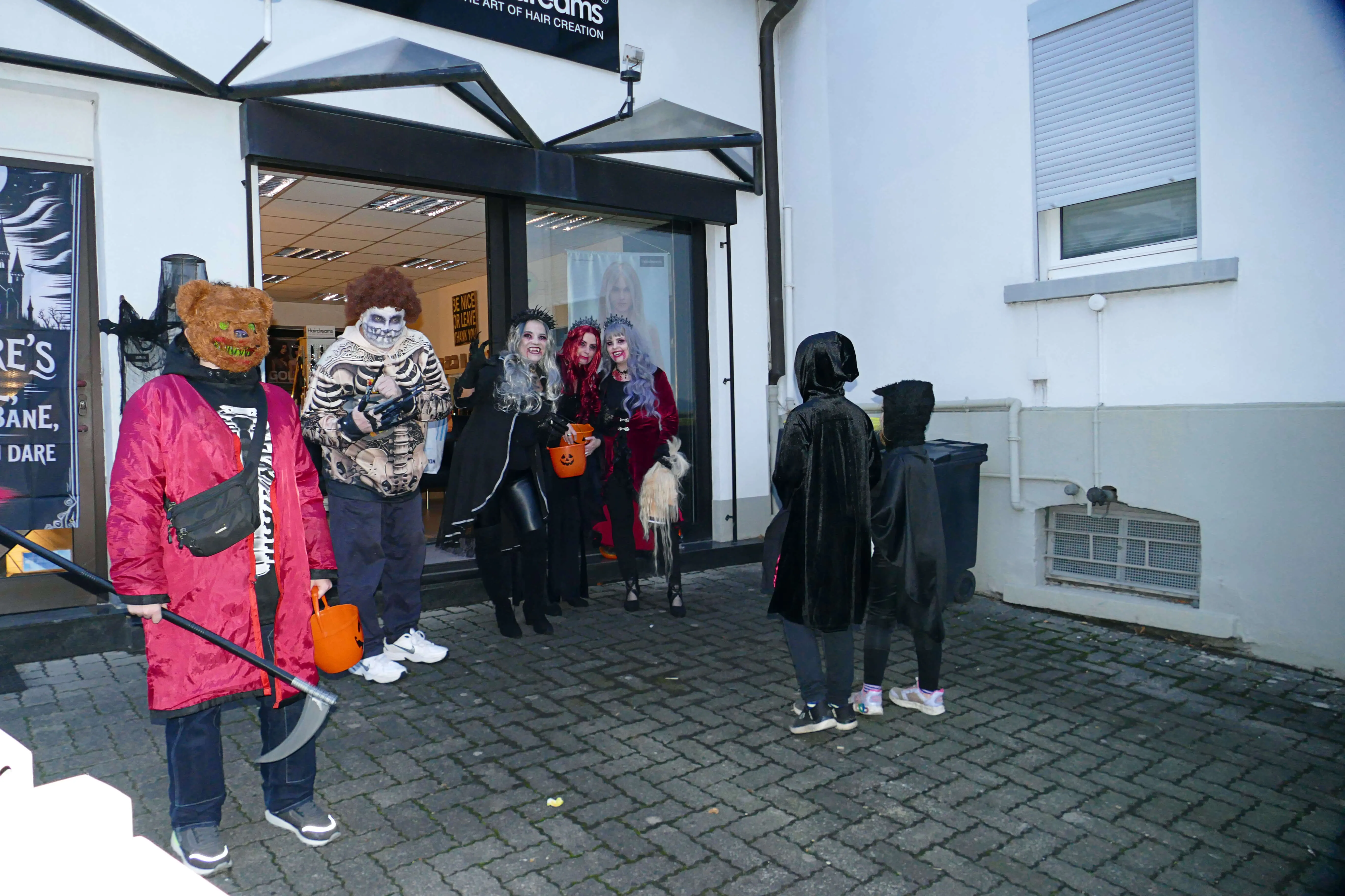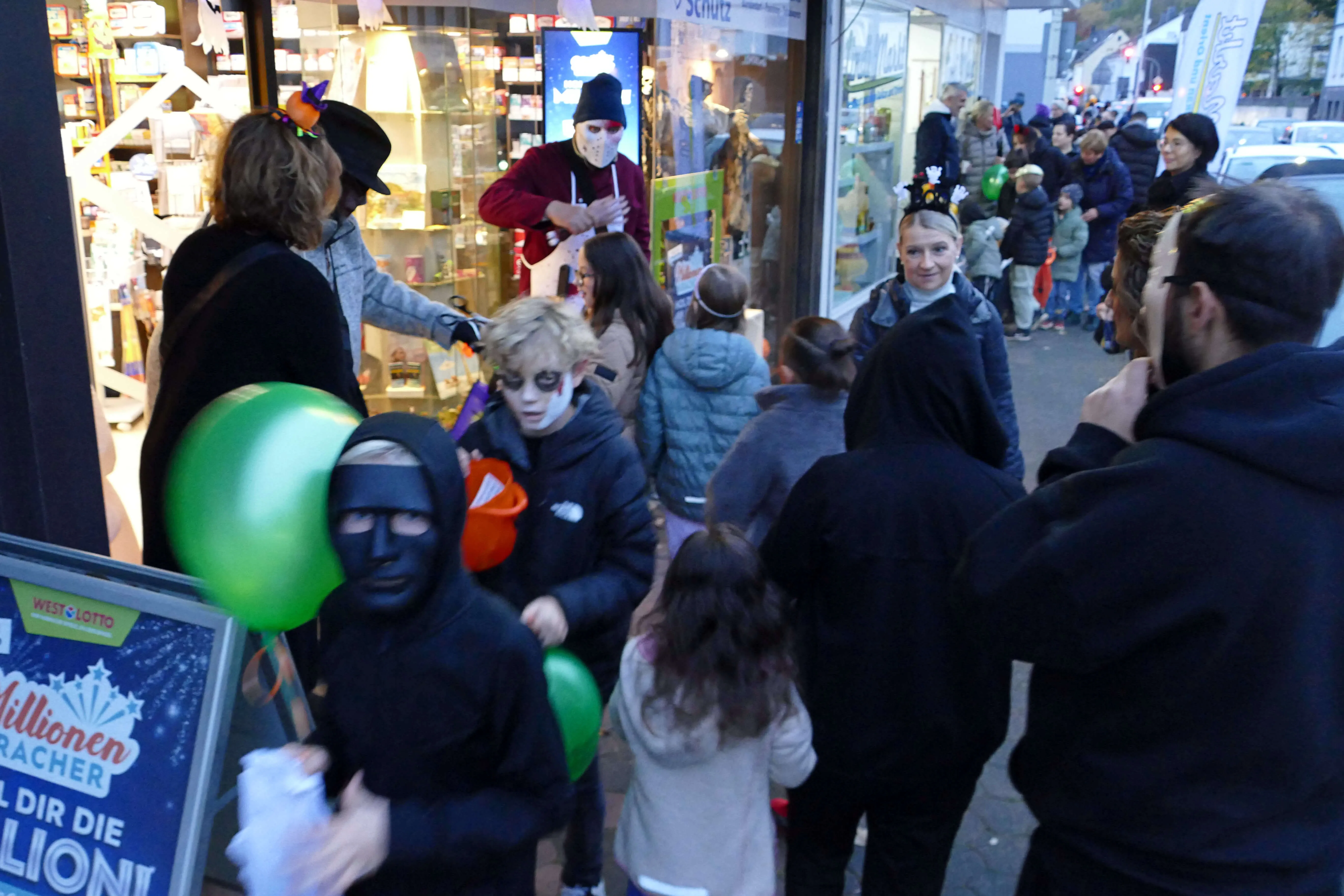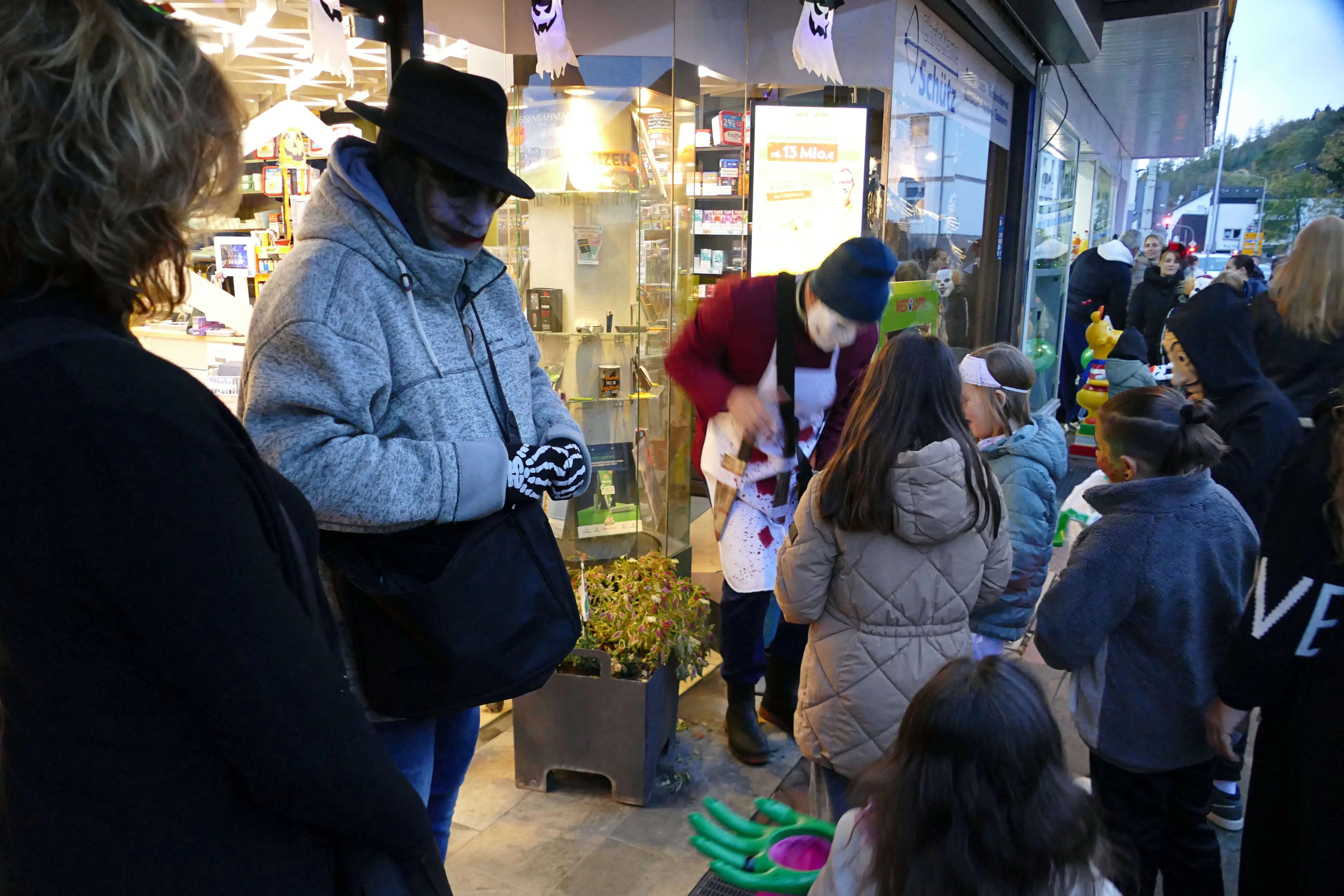 In vielen Geschäften warteten Süßigkeiten und andere kleine Geschenke auf die einfallsreich und teilweise sehr aufwändig verkleideten Kinder, die dem Halloween-Brauch folgend „Süßes, sonst gibt’s Saures“ einforderten. Vor den Eingängen der Geschäfte bildeten sich zeitweise lange Schlangen, in denen Frankensteins Monster, Hexen und Zombies geduldig warteten, bis sie an der Reihe waren.