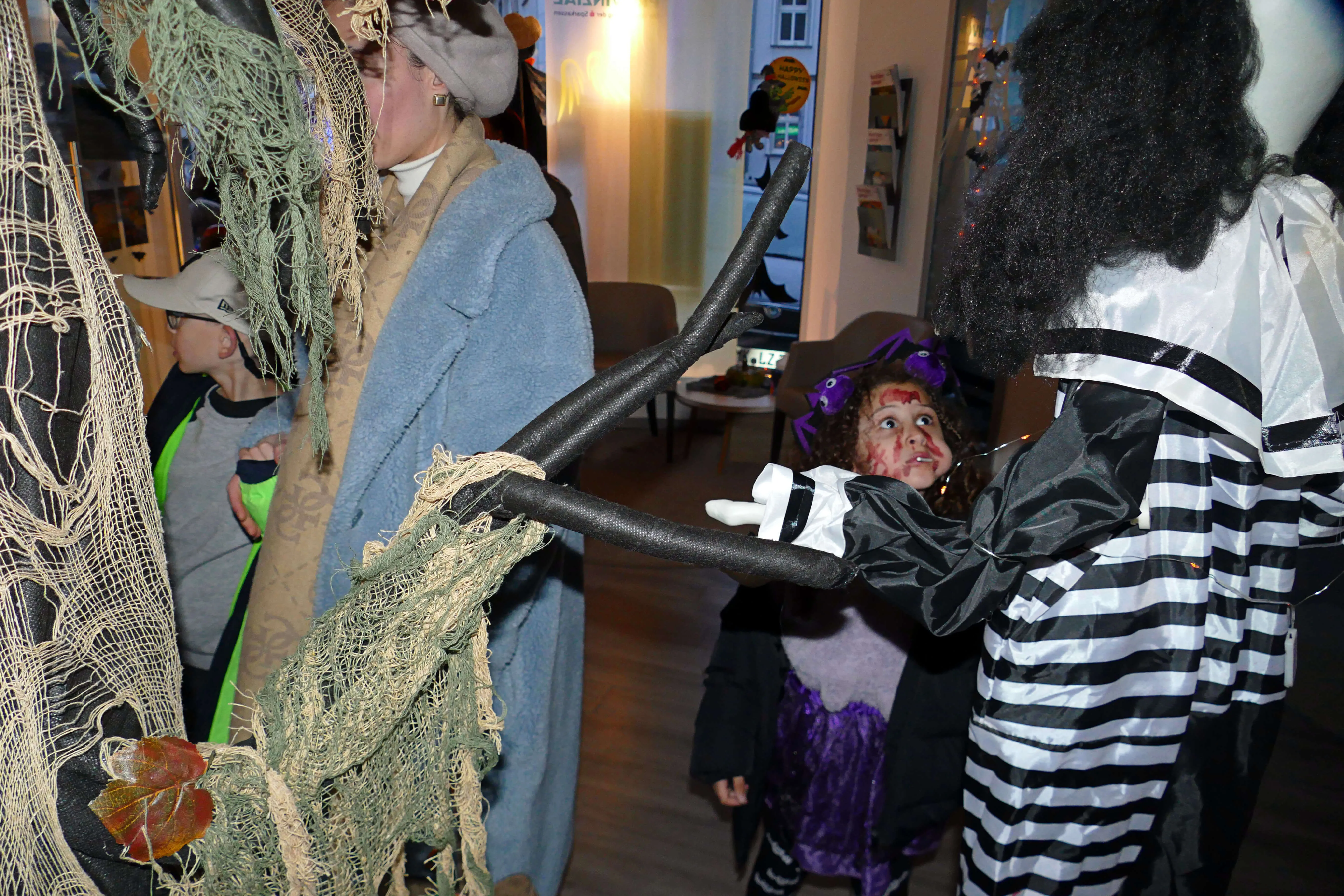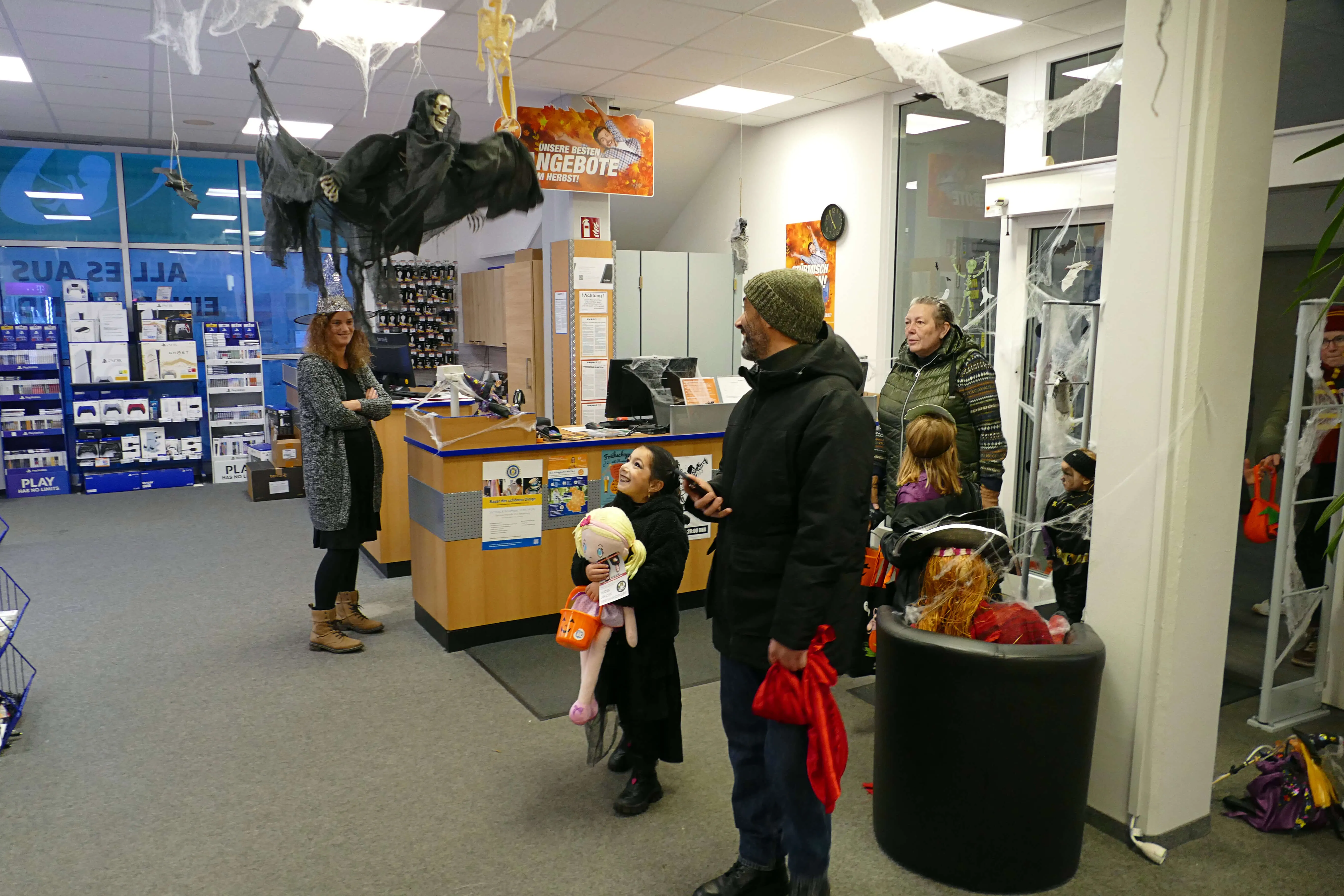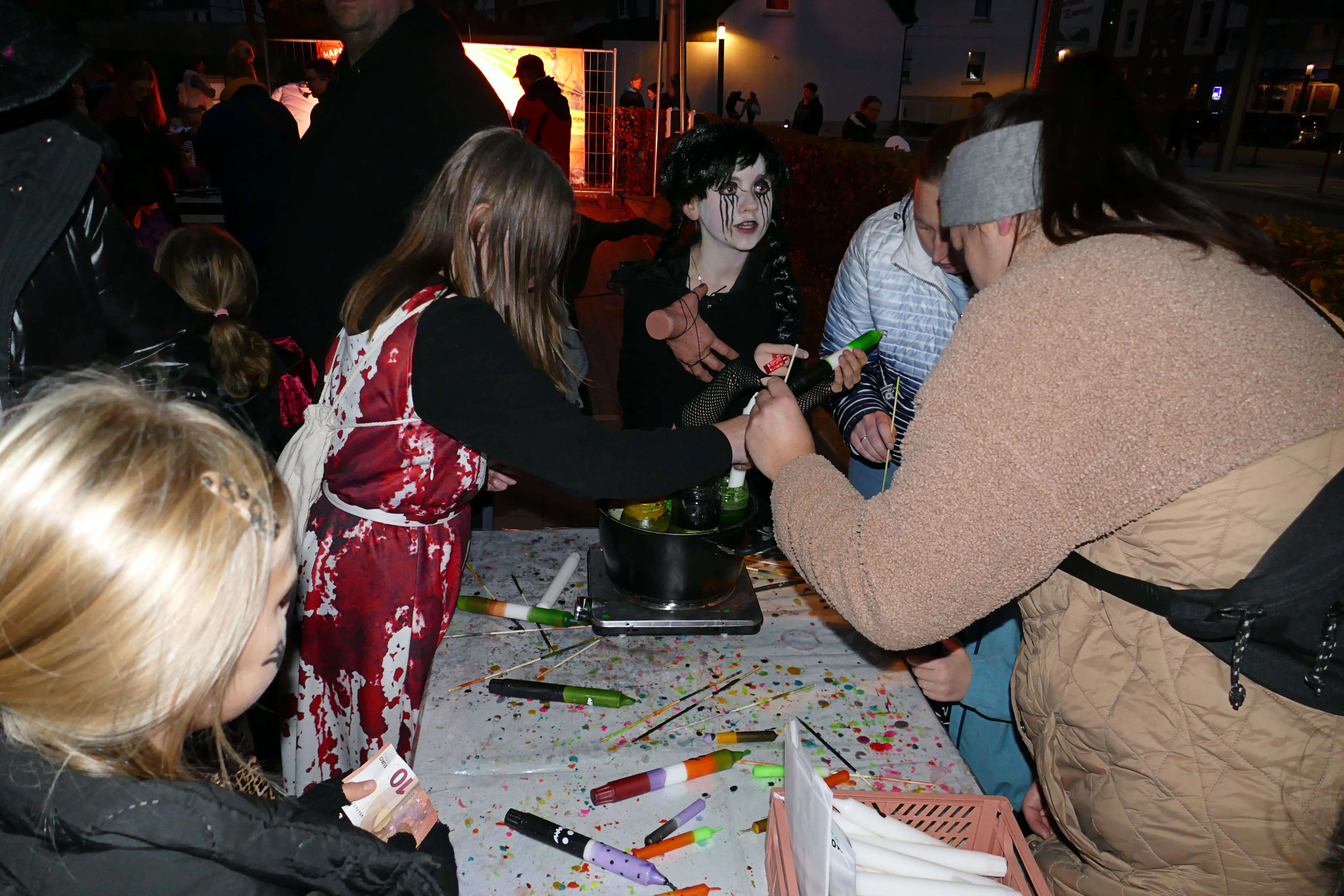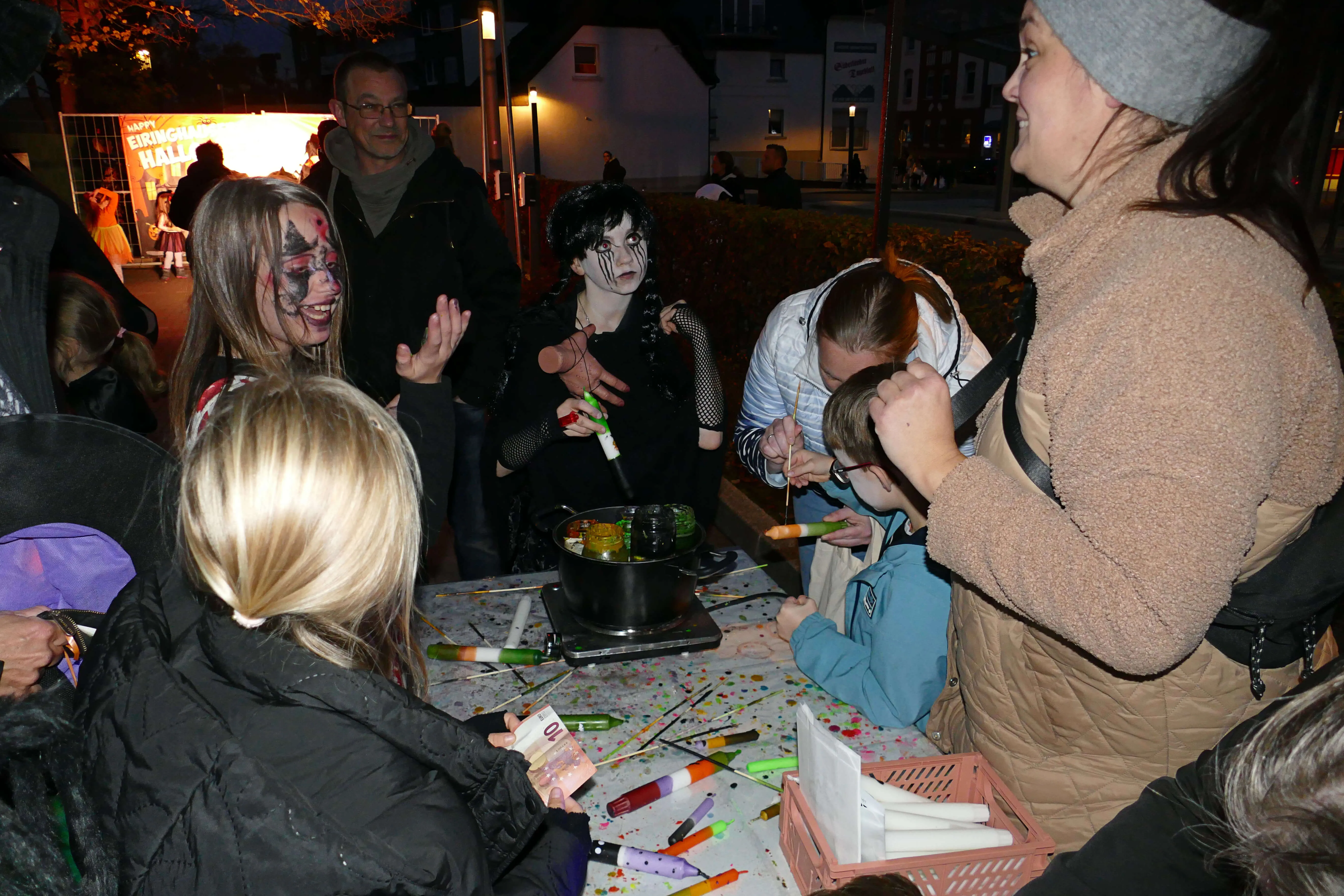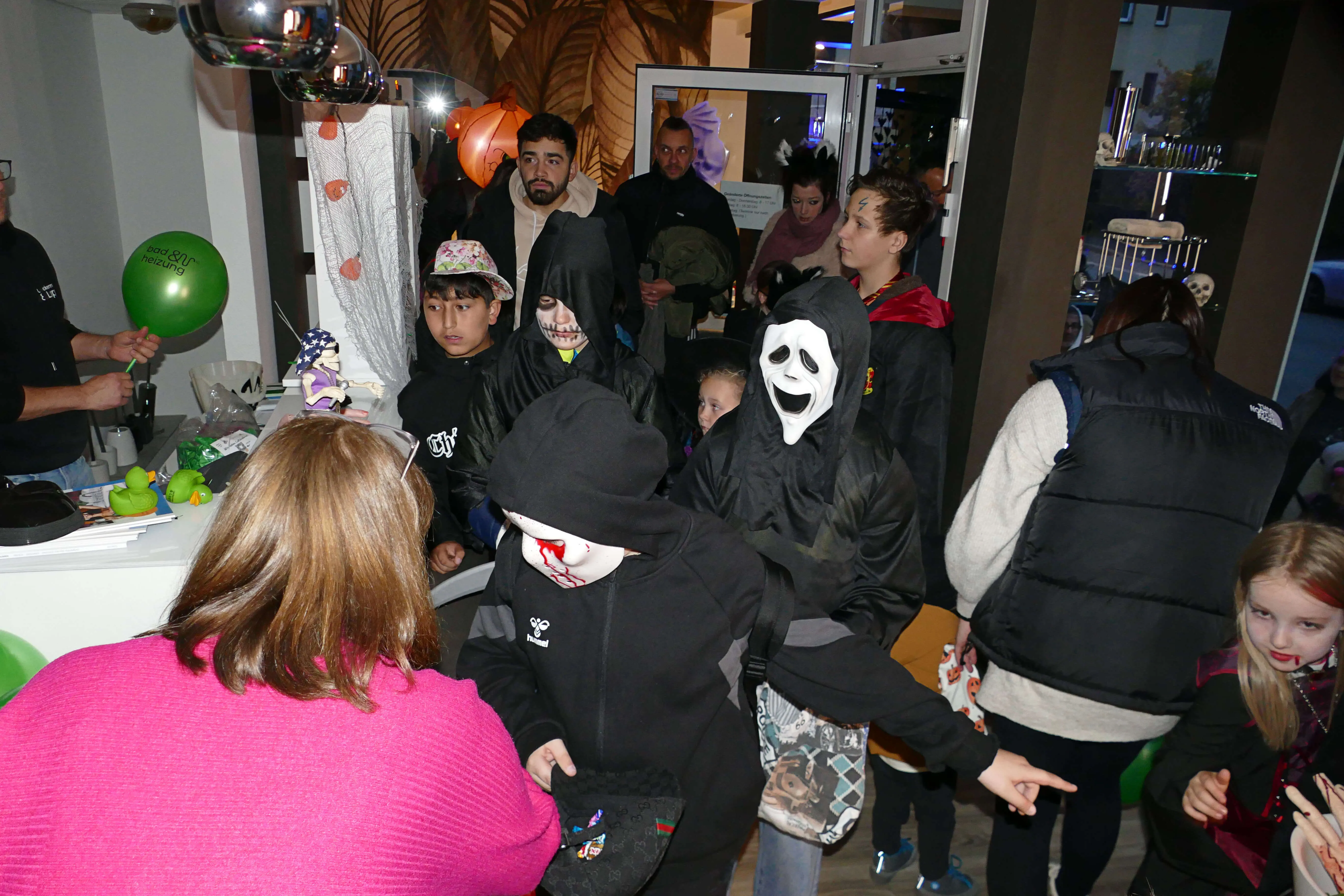 In vielen Geschäften warteten Süßigkeiten und andere kleine Geschenke auf die einfallsreich und teilweise sehr aufwändig verkleideten Kinder, die dem Halloween-Brauch folgend „Süßes, sonst gibt’s Saures“ einforderten. Vor den Eingängen der Geschäfte bildeten sich zeitweise lange Schlangen, in denen Frankensteins Monster, Hexen und Zombies geduldig warteten, bis sie an der Reihe waren.