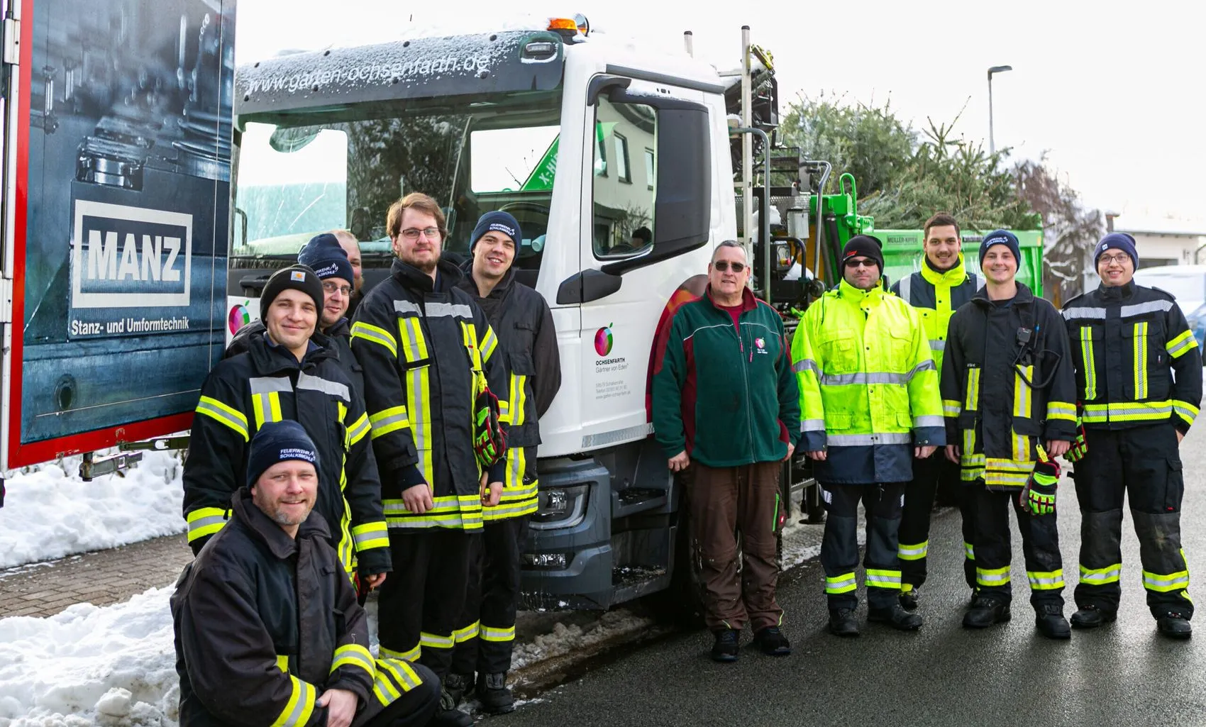 13. Januar: Schnee und Kälte halten die Feuerwehrleute der vier Löschgruppen Schalksmühles nicht ab, die ausgedienten Weihnachtsbäume der Bürger einzusammeln und Spenden für die Jugendarbeit zu sammeln.