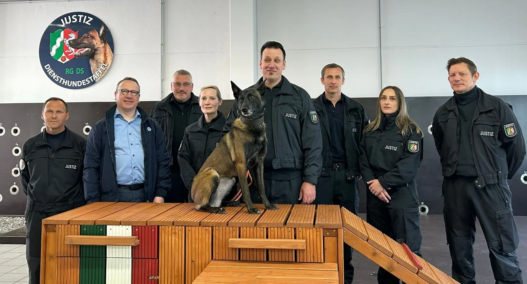 10. April: „Die Hunde sind die wichtigsten Helfer bei der Suche nach Rauschgift und Datenträgern. Der heutige Besuch hat mich sehr beeindruckt“, erklärt Dr. Benjamin Limbach, NRW-Justizminister. Er besucht das Trainingszentrum der Diensthundestaffel der Justiz in Schalksmühle.