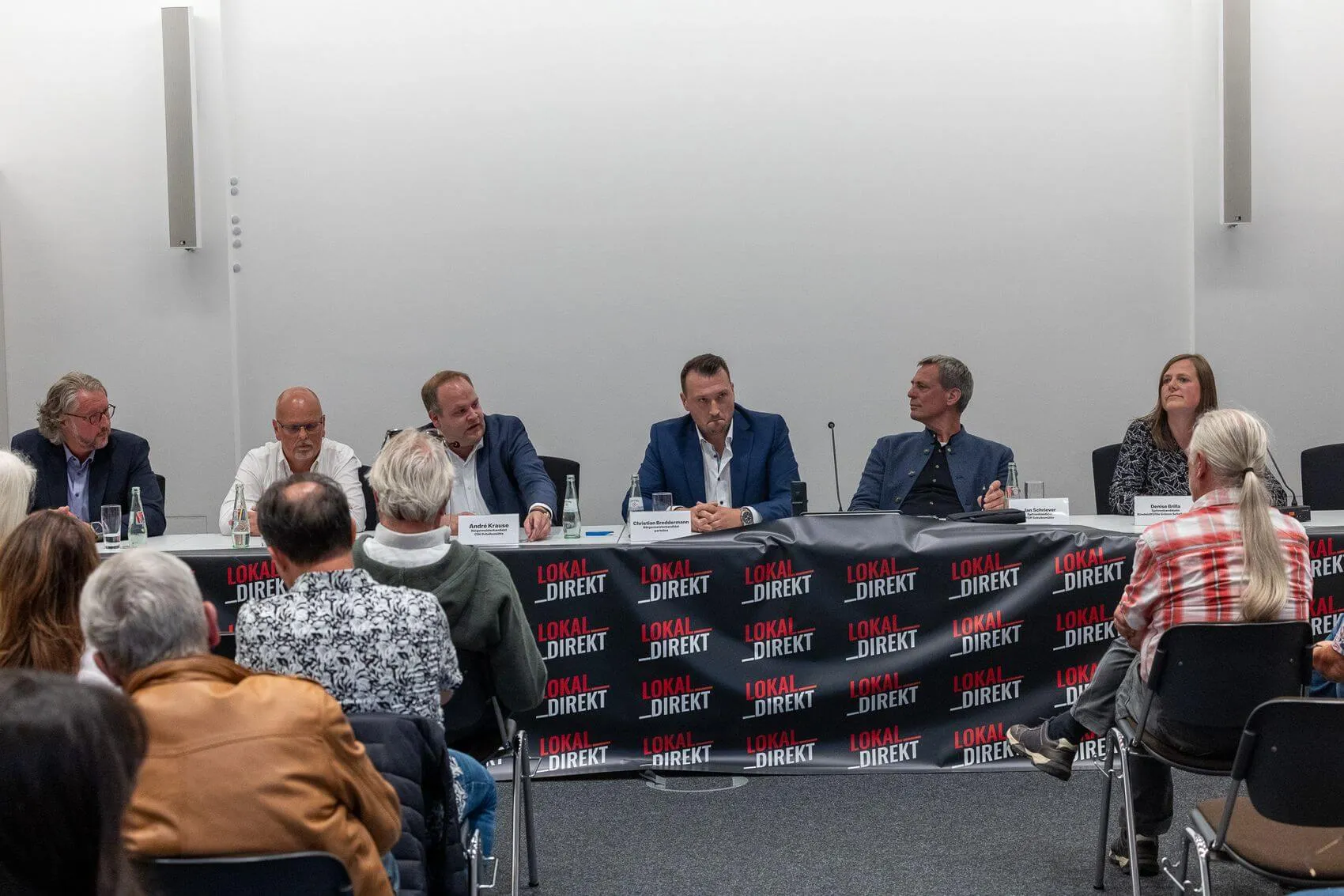 3. September: Der Wahlkampf befindet sich zwei Wochen vor der Kommunalwahl auf dem Höhepunkt. Rund 100 Bürger verfolgen die LokalDirekt-Podiumsdiskussion der Schalksmühler Bürgermeisterkandidaten im Rathaus. Roman Bossart (UWG), Hajo Kapfer (SPD), André Krause (CDU) und Christian Breddermann (parteilos) diskutieren sachlich und weitgehend einig über Themen wie Haushalt, Innenstadtentwicklung, Mobilität und die geplante Multifunktionshalle. Auch Vertreter von FDP und Grünen stellen ihre Positionen vor. Bürger bringen eigene Fragen ein — von Bauland über Verkehrsprobleme bis zur wirtschaftlichen Entwicklung.