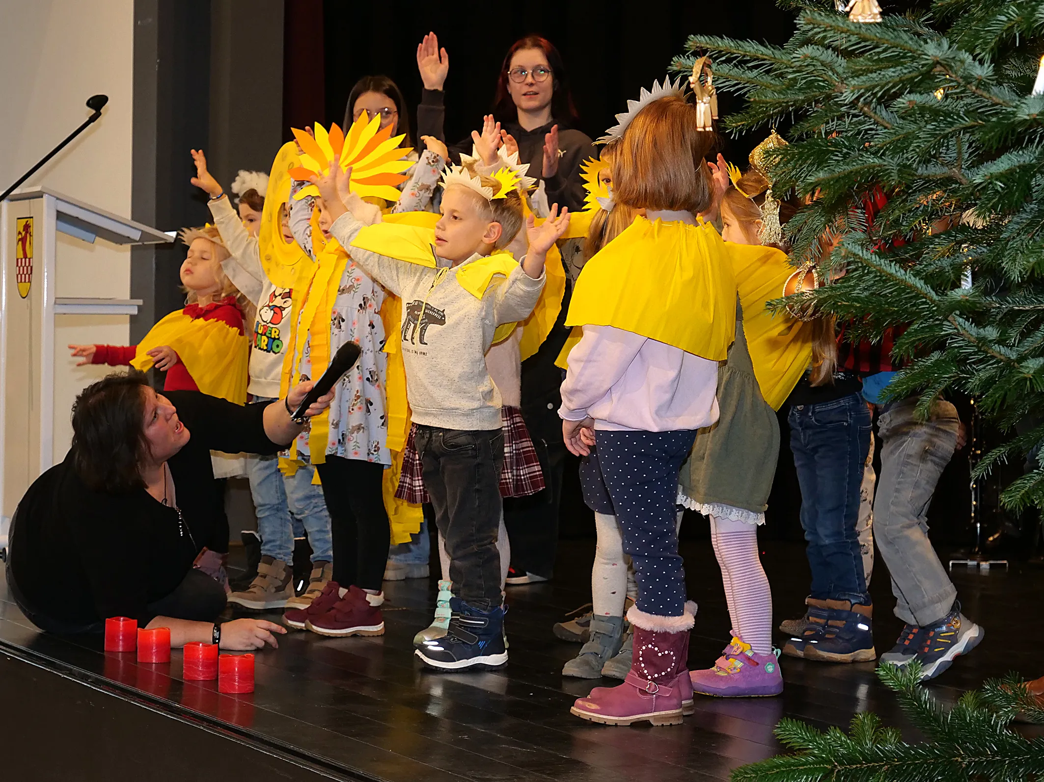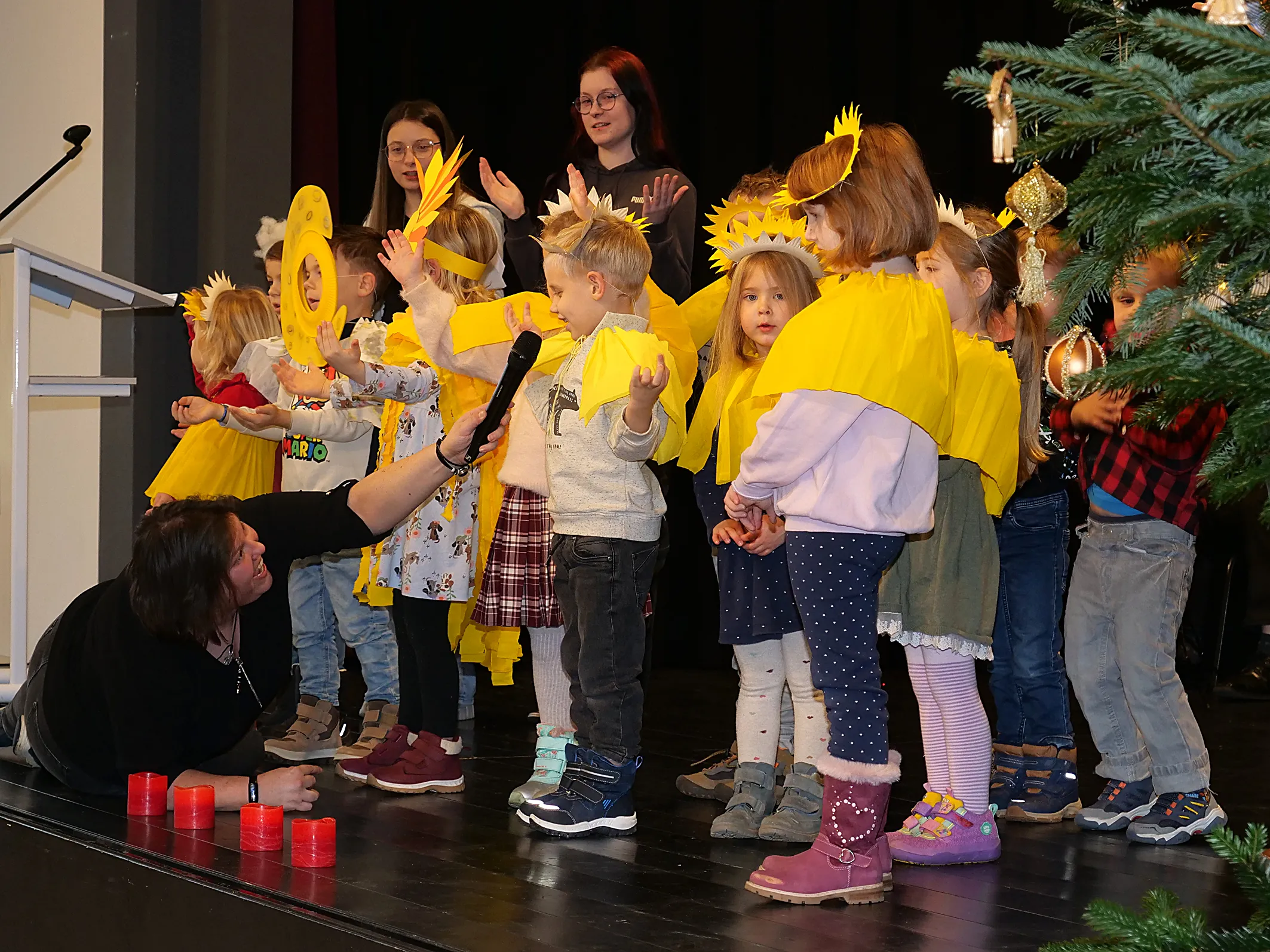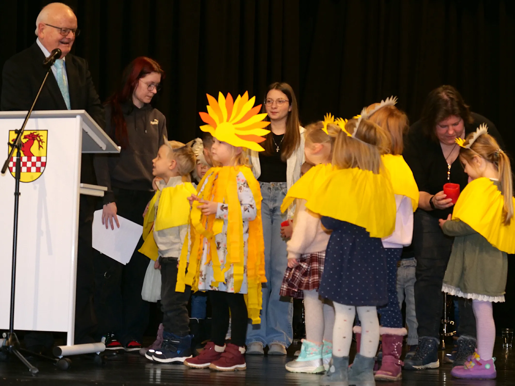 Und während der Altbürgermeister die Gäste und Akteure des Tages begrüßte, hörte man aus dem Foyer bereits Geplapper, fröhliche Kinderstimmen – die Jungen und Mädchen der Hüinghauser Kindertagesstätte „Arche Noah“ machten sich mit ihren Erzieherinnen und Leiterin Sabine Neumann bereit, den Senioren mit Liedern und einem Anspiel eine Freude zu bereiten. Die hellen Kinderstimmen aus dem Foyer hatten eine Anmutung von „wir warten aufs Christkind“. Tatsächlich war - alle Achtung - in der Kita ein wirklich großes, zehnminütiges Programm einstudiert worden, das die Zuschauer begeisterte. Und dass nach der Aufführung das eine oder andere Kind auf den Schoß der anwesenden Oma wechselte, das sei hier der Vollständigkeit halber erwähnt.