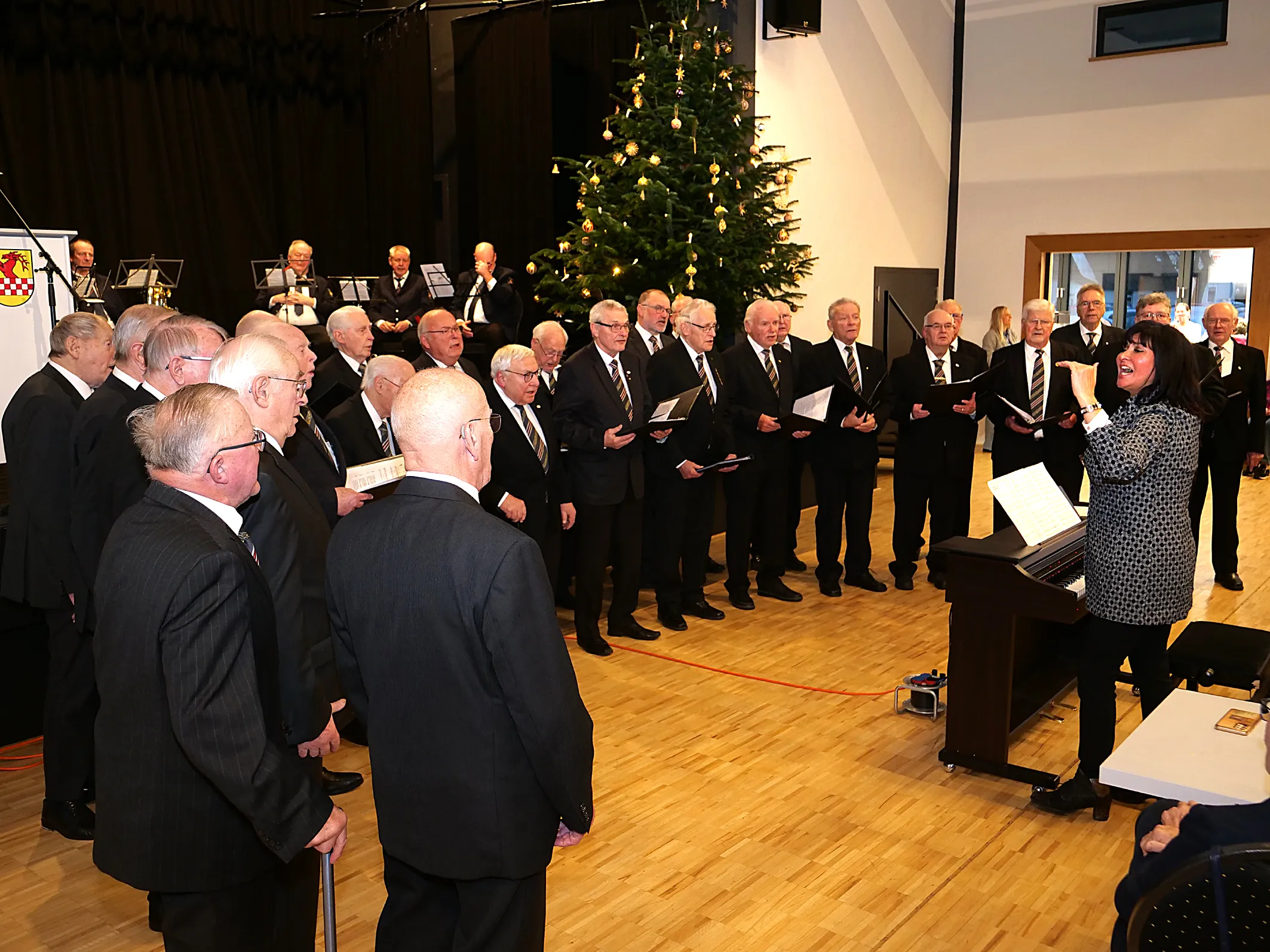 Gemeinsam sangen die 270 Gäste in der Halle „Stille Nacht, heilige Nacht“ und „Oh Du fröhliche“, begleitet vom Musikzug der Freiwilligen Feuerwehr unter der Leitung von Uwe Heß.