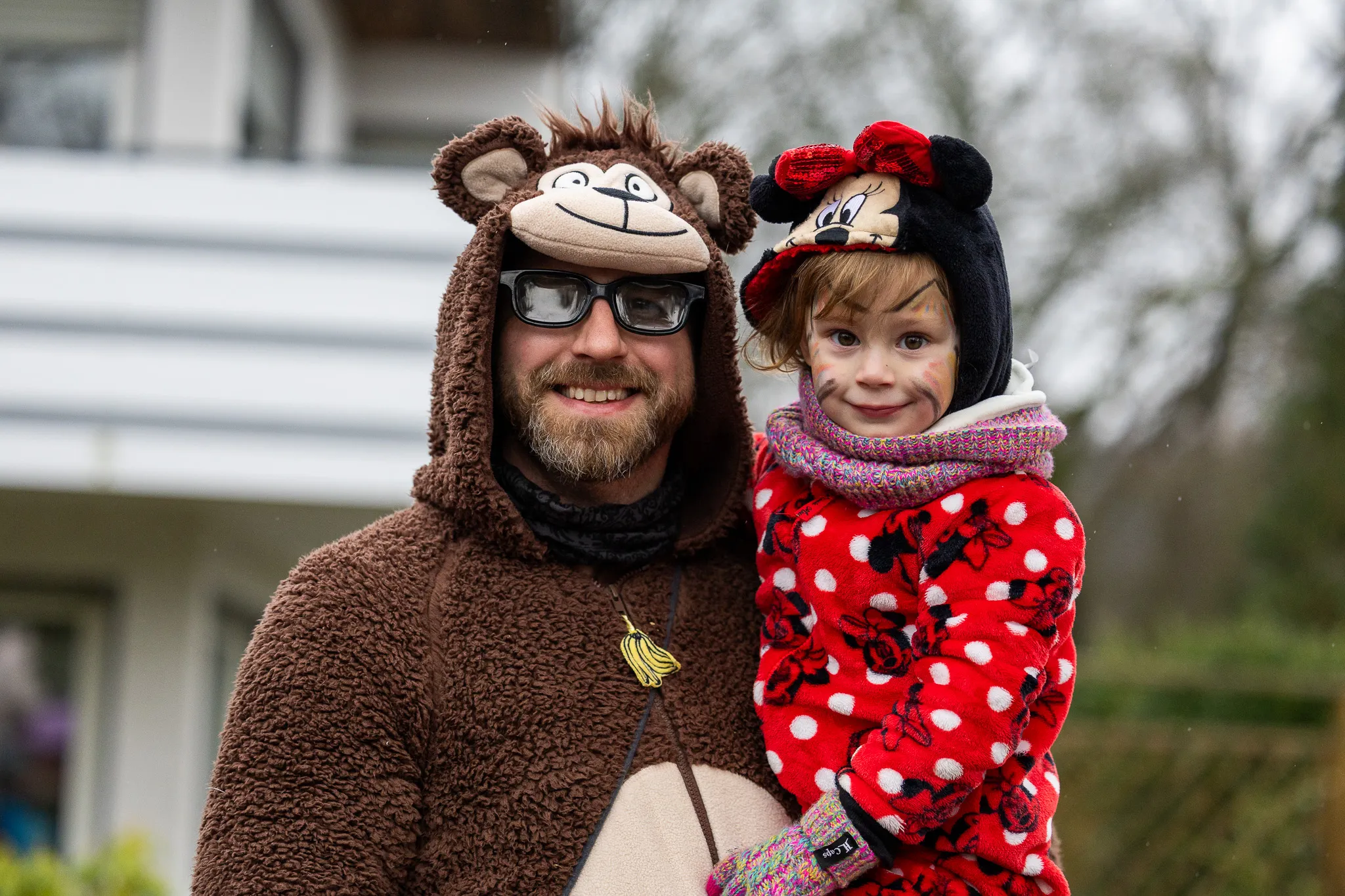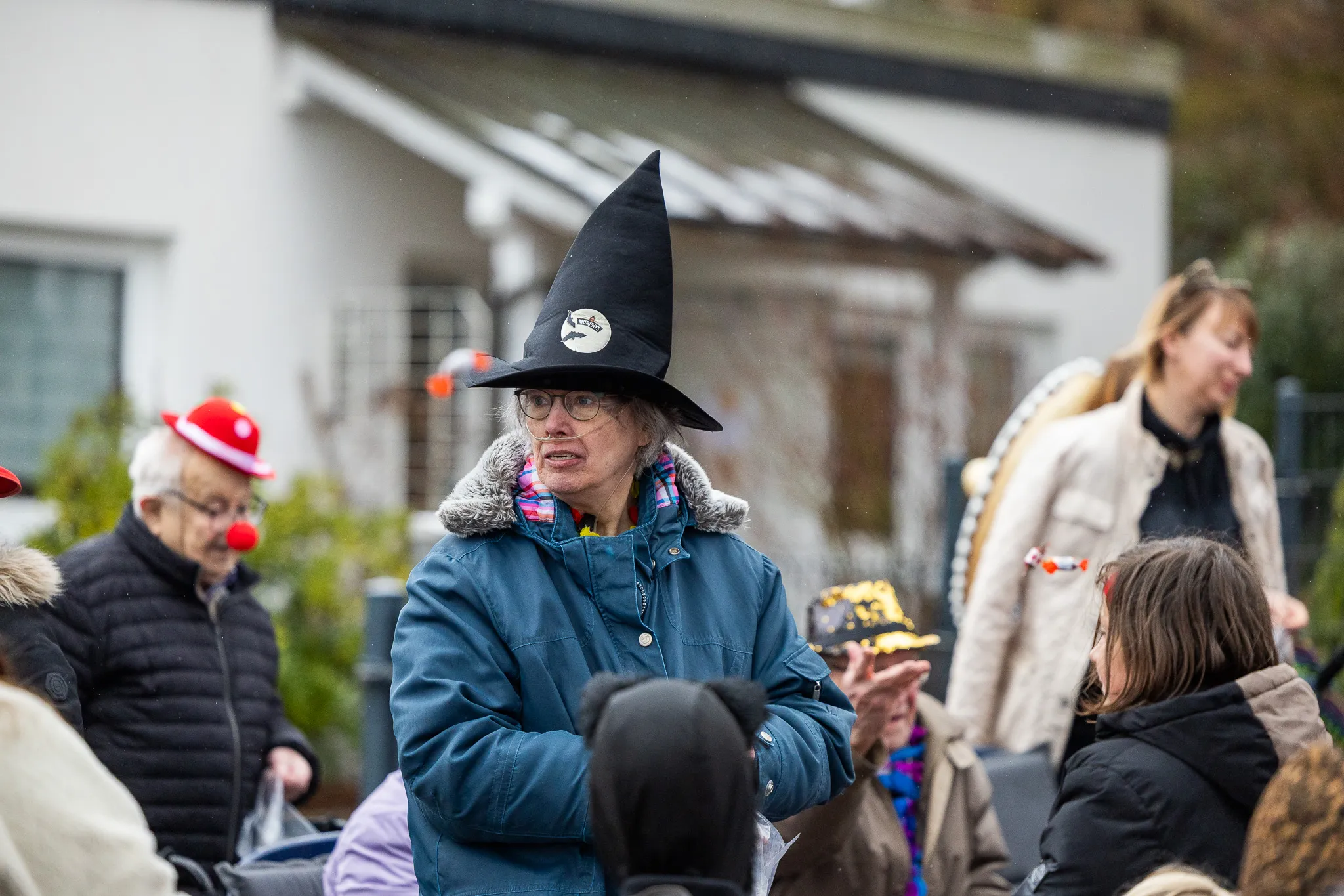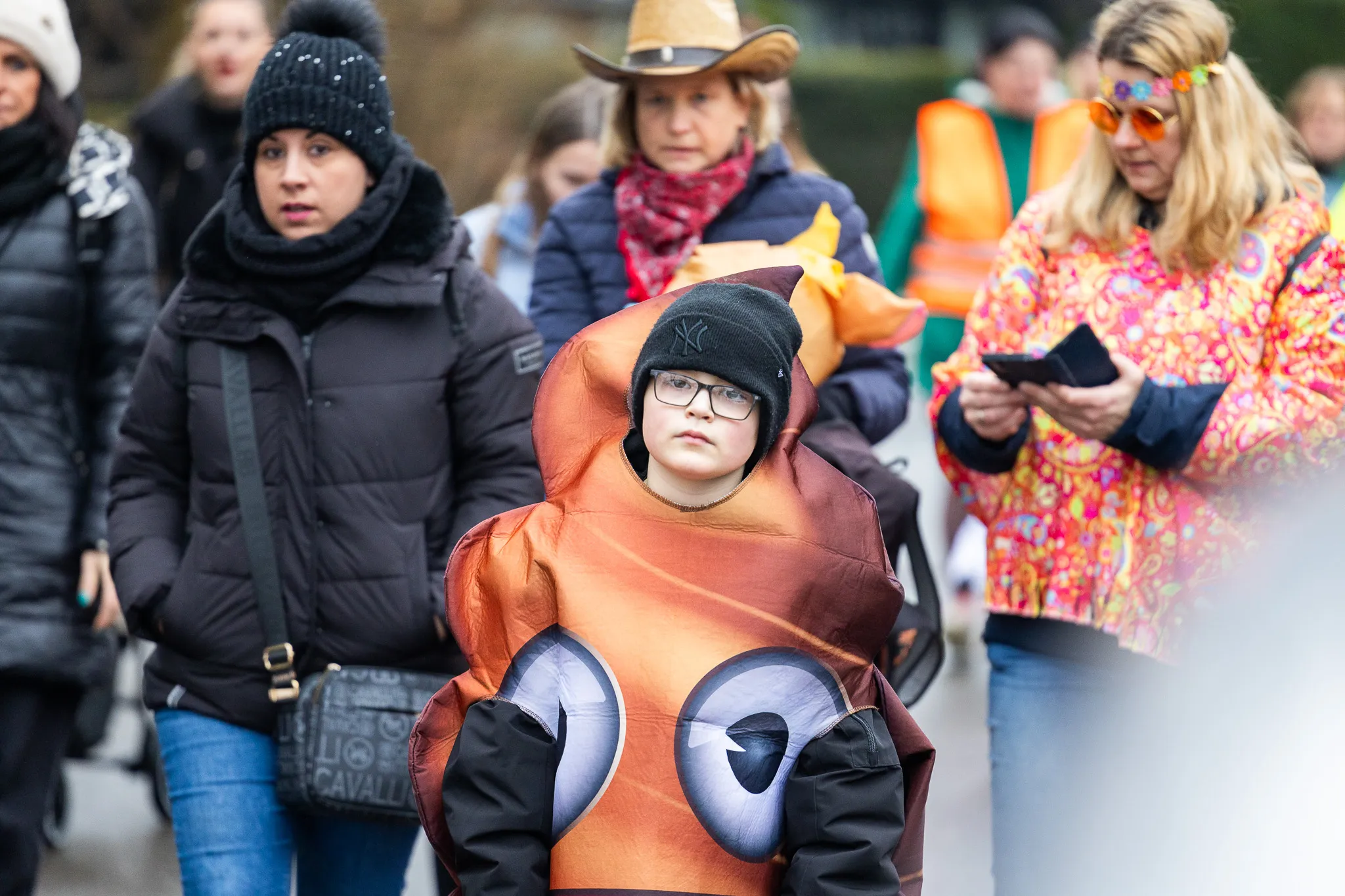 Rund 100 Regenbogenschüler starteten gemeinsam mit den Vorschulkindern der Kita Wunderland Am Nocken und zogen anschließend etwa eine Stunde lang durch die Straßen von Oberbrügge. Polizei und Ordnungsamt sperrten die Straßen ab, während einige Eltern die jungen Jecken begleiteten, damit sie unbeschwert feiern konnten. Auf ihrem Weg trafen die jungen Karnevalisten auf zahlreiche Anwohner, die am Dienstagmorgen süße Überraschungen vorbereitet hatten.