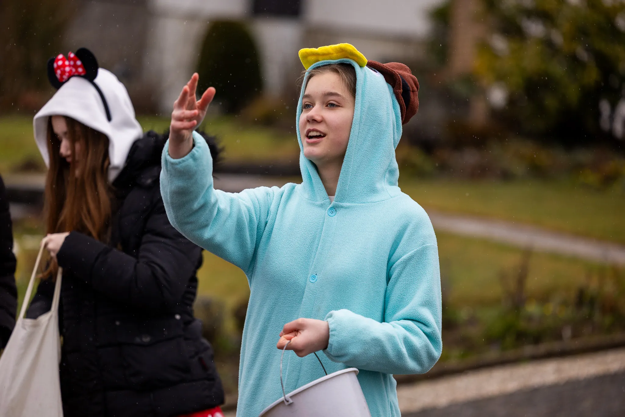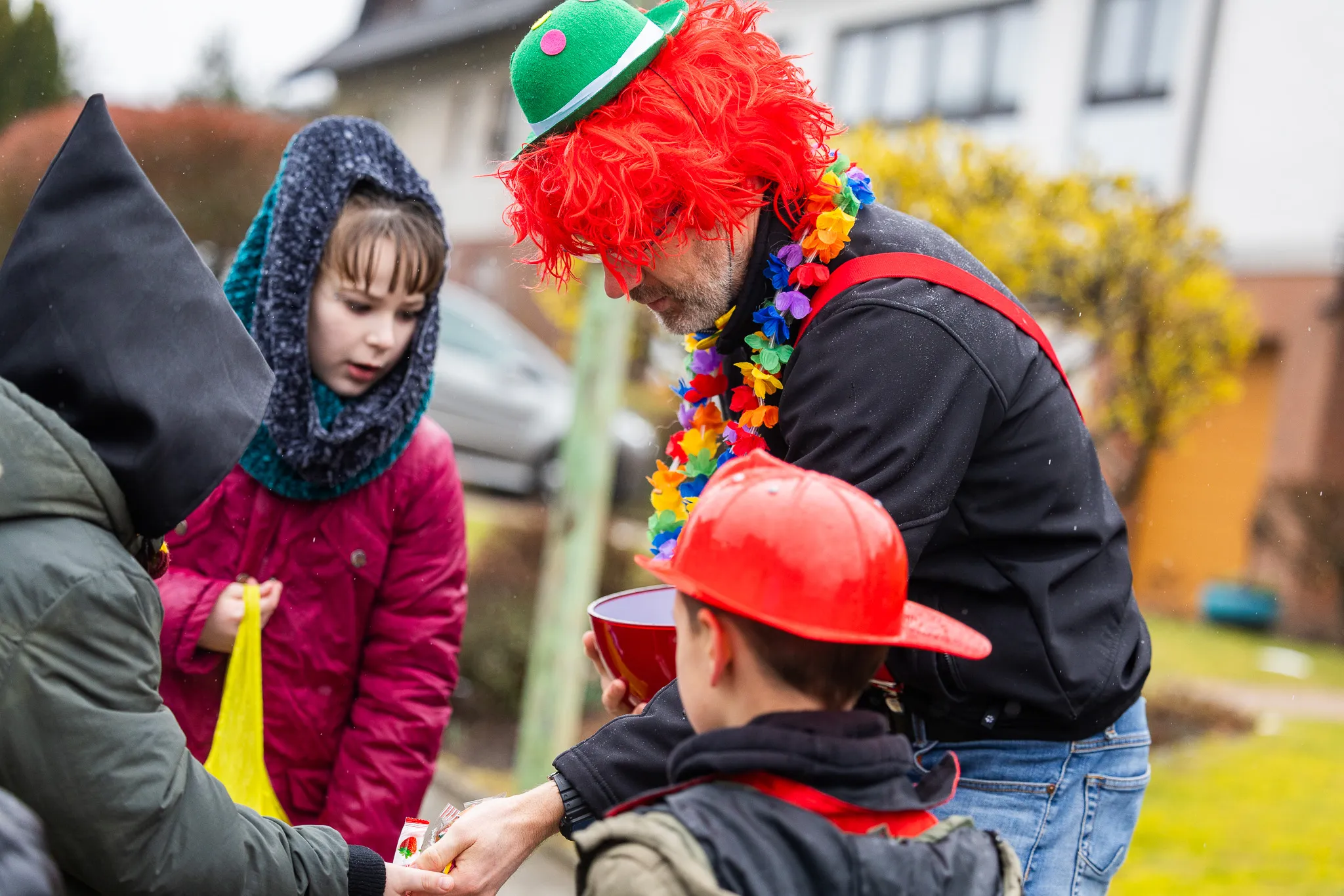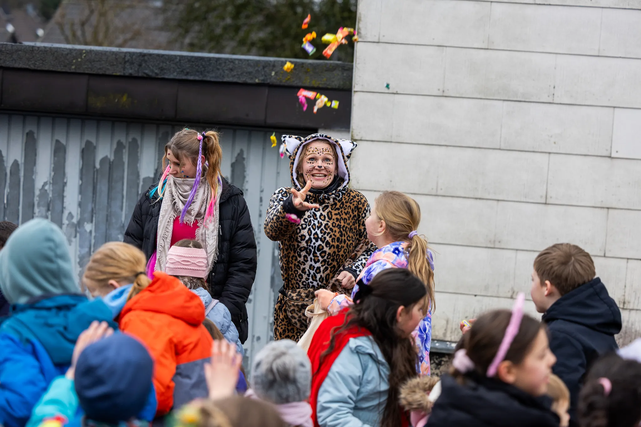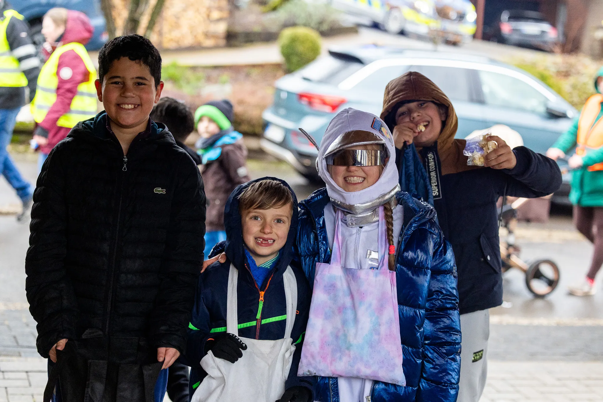 Bei kalten und nassen Wetterbedingungen zogen die Regenbogenschüler am Veilchendienstag, 17. Februar, durch die Straßen von Oberbrügge. Trotz des ungemütlichen Wetters sammelten sie fleißig Kamelle und feierten ausgelassen die fünfte Jahreszeit.