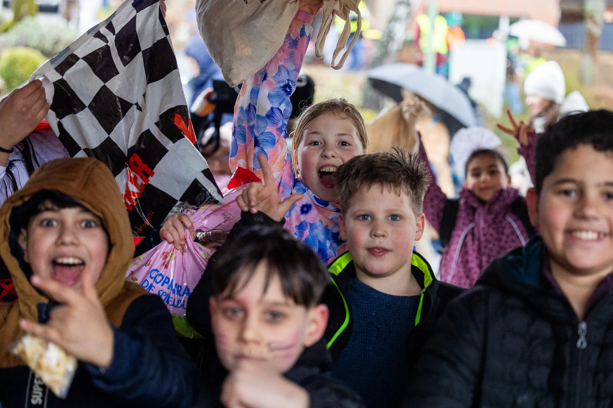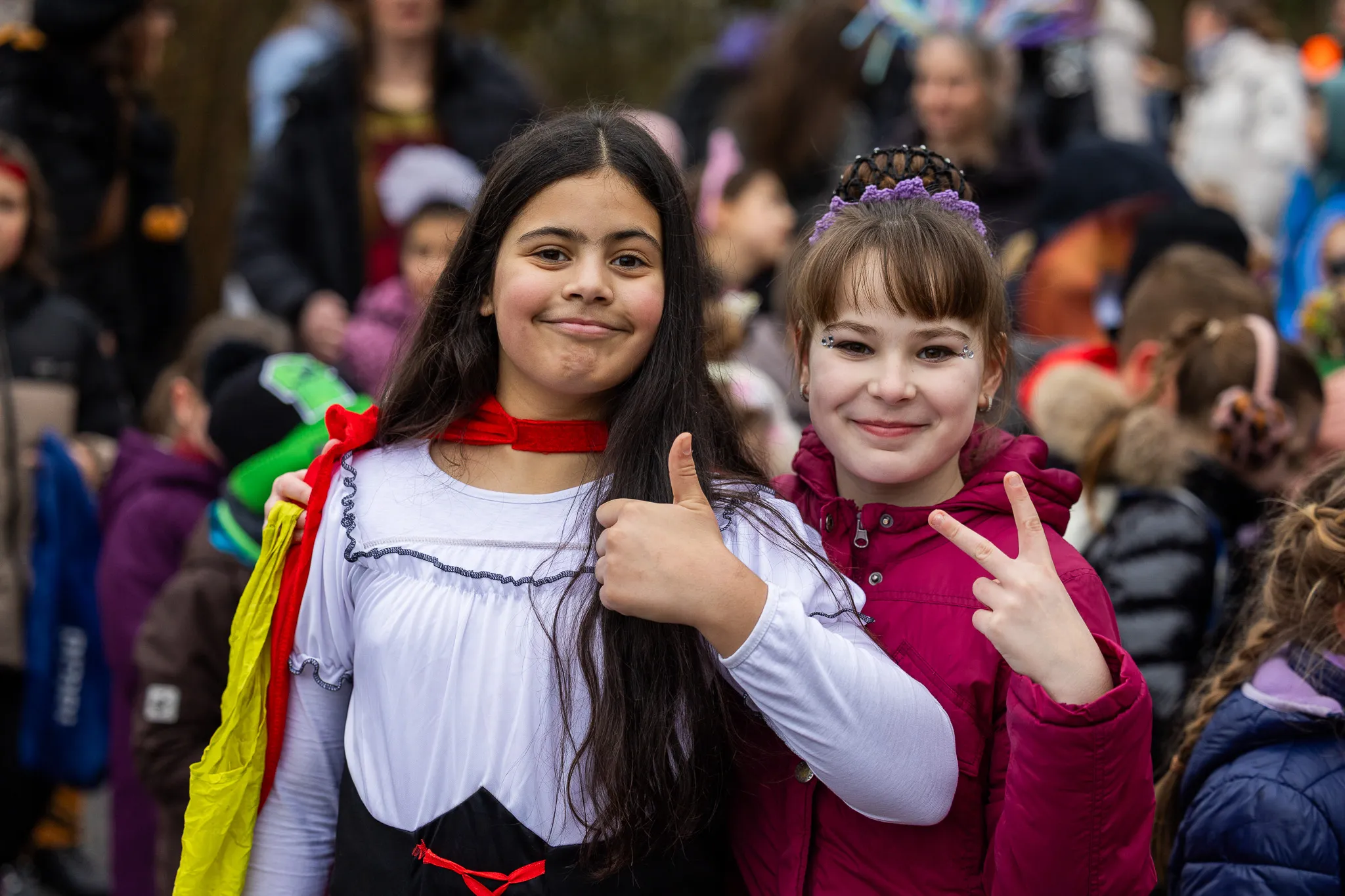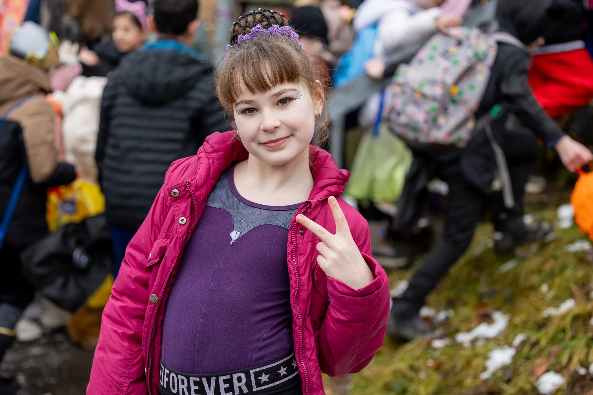 Bei kalten und nassen Wetterbedingungen zogen die Regenbogenschüler am Veilchendienstag, 17. Februar, durch die Straßen von Oberbrügge. Trotz des ungemütlichen Wetters sammelten sie fleißig Kamelle und feierten ausgelassen die fünfte Jahreszeit.