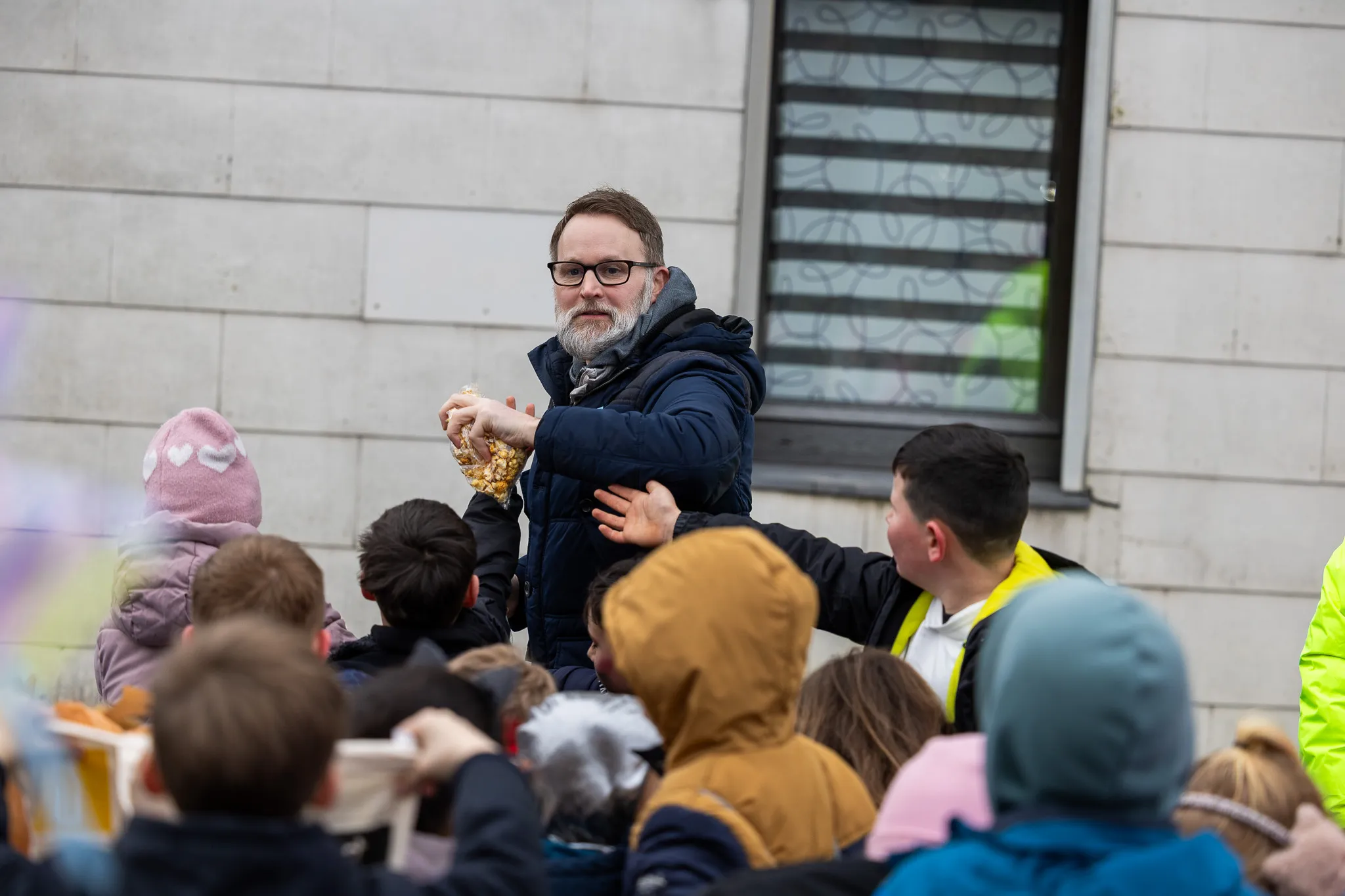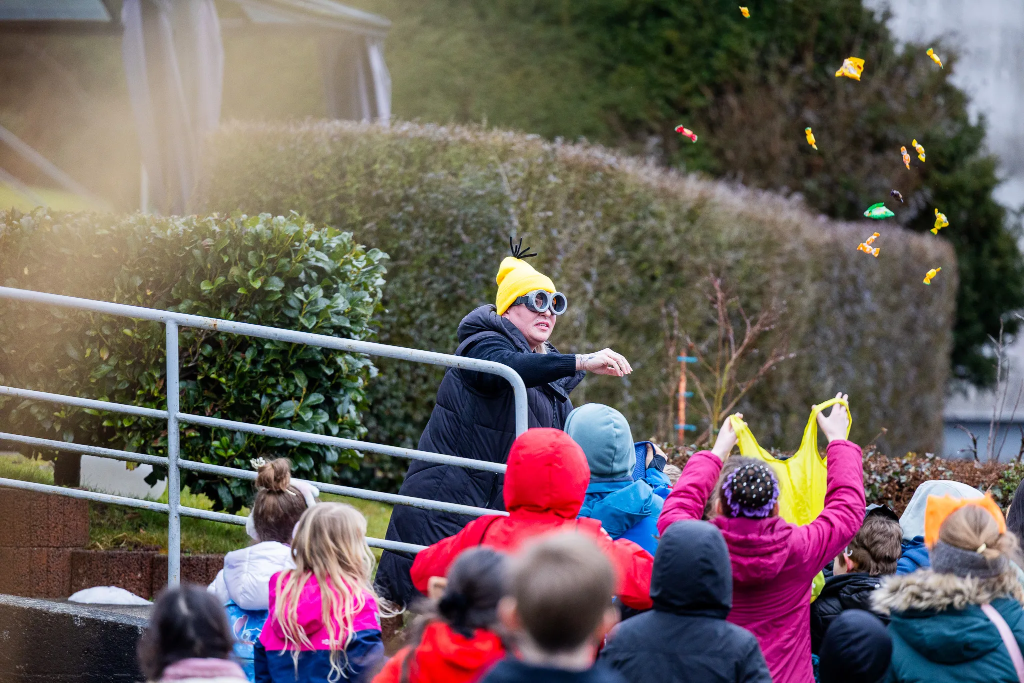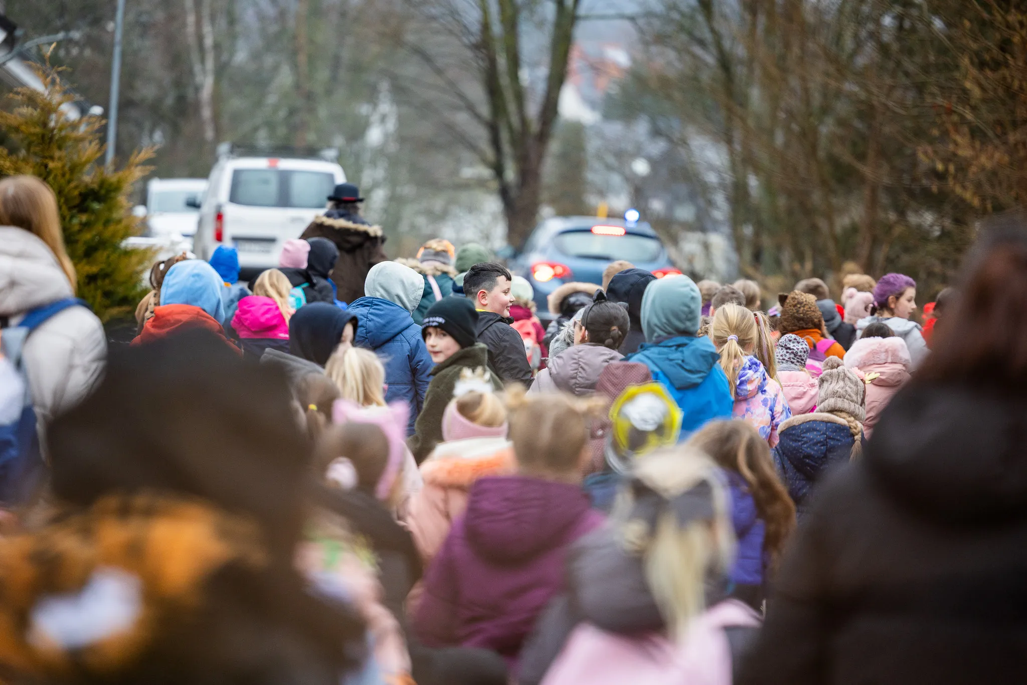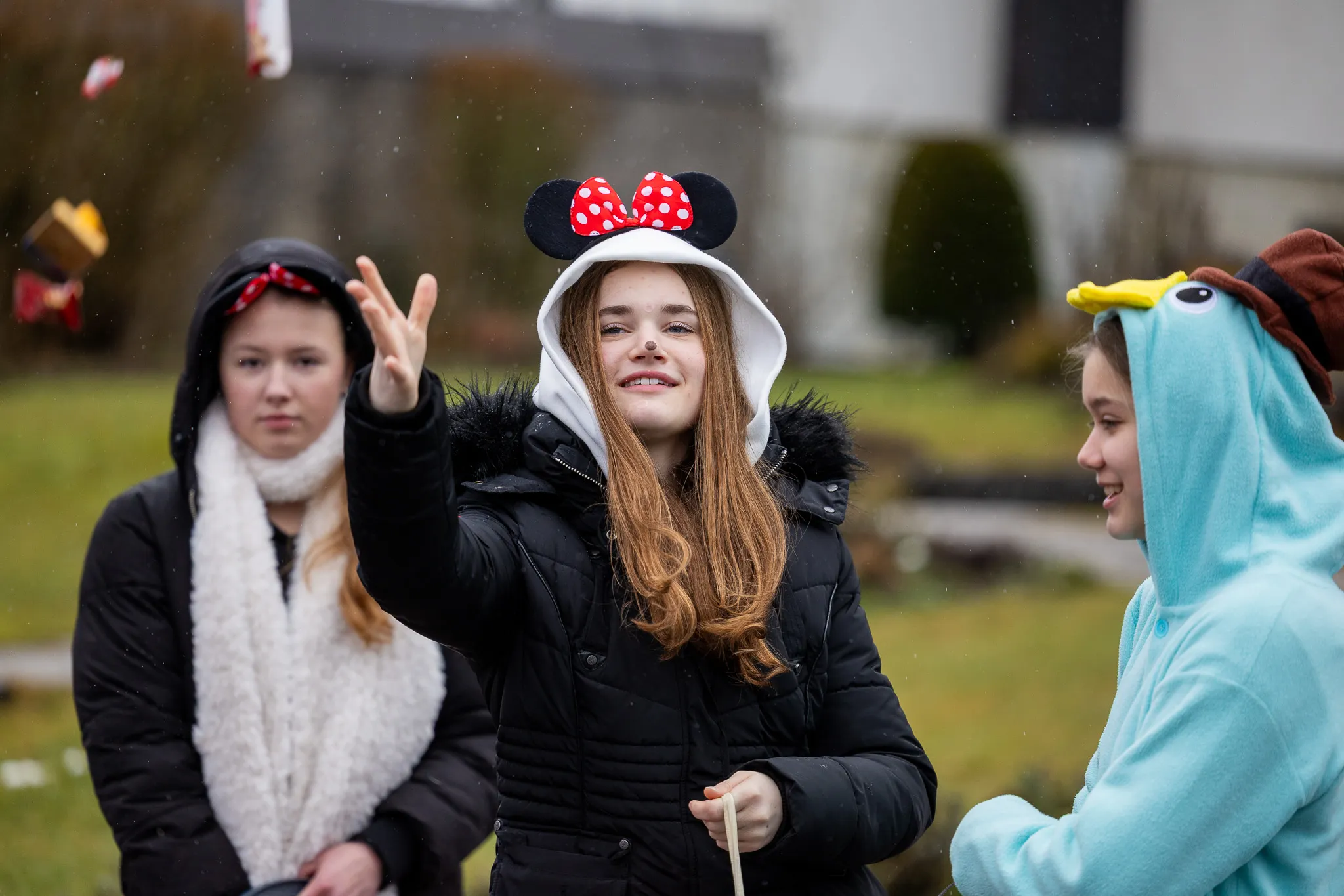 Bei kalten und nassen Wetterbedingungen zogen die Regenbogenschüler am Veilchendienstag, 17. Februar, durch die Straßen von Oberbrügge. Trotz des ungemütlichen Wetters sammelten sie fleißig Kamelle und feierten ausgelassen die fünfte Jahreszeit.