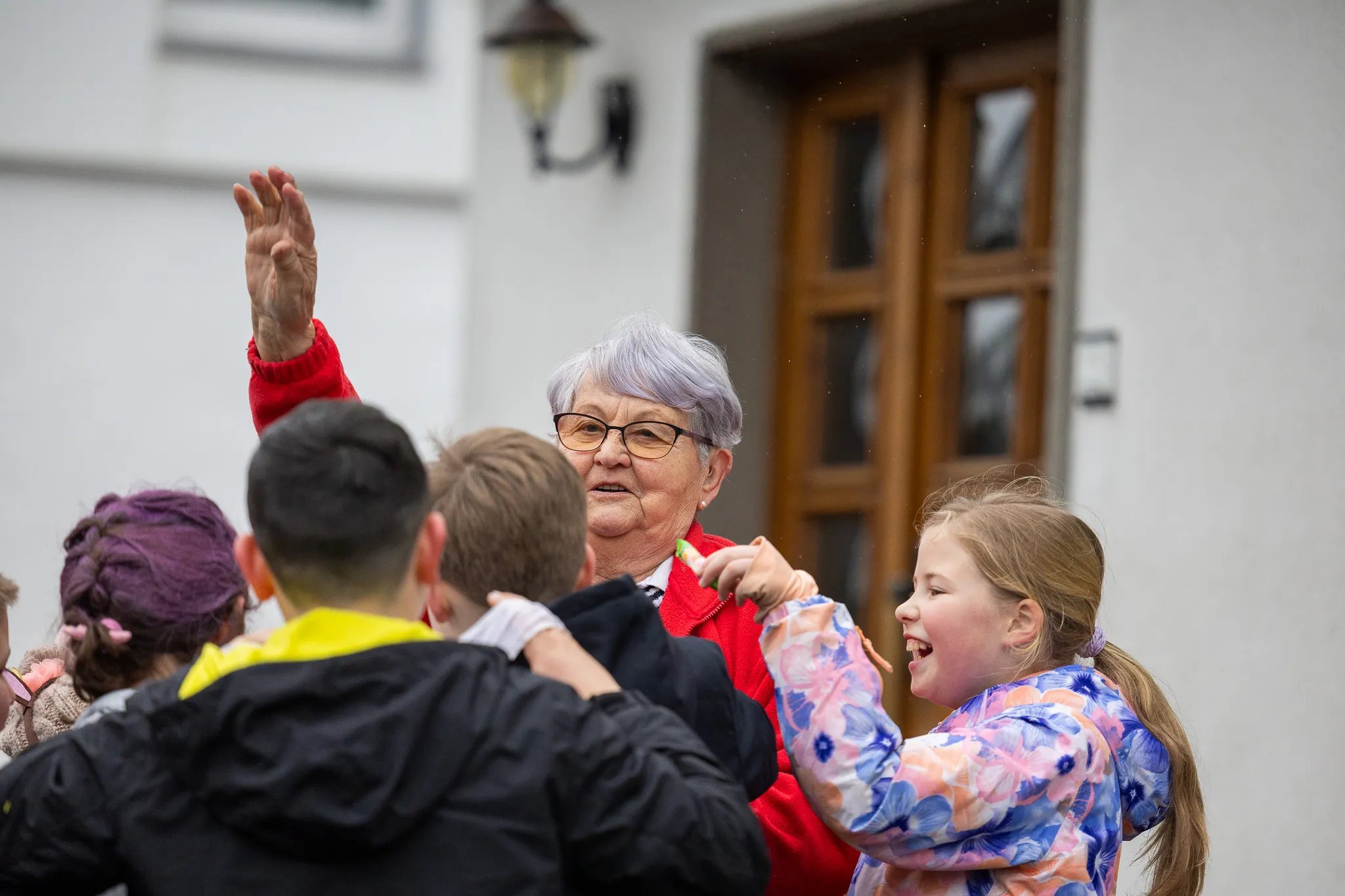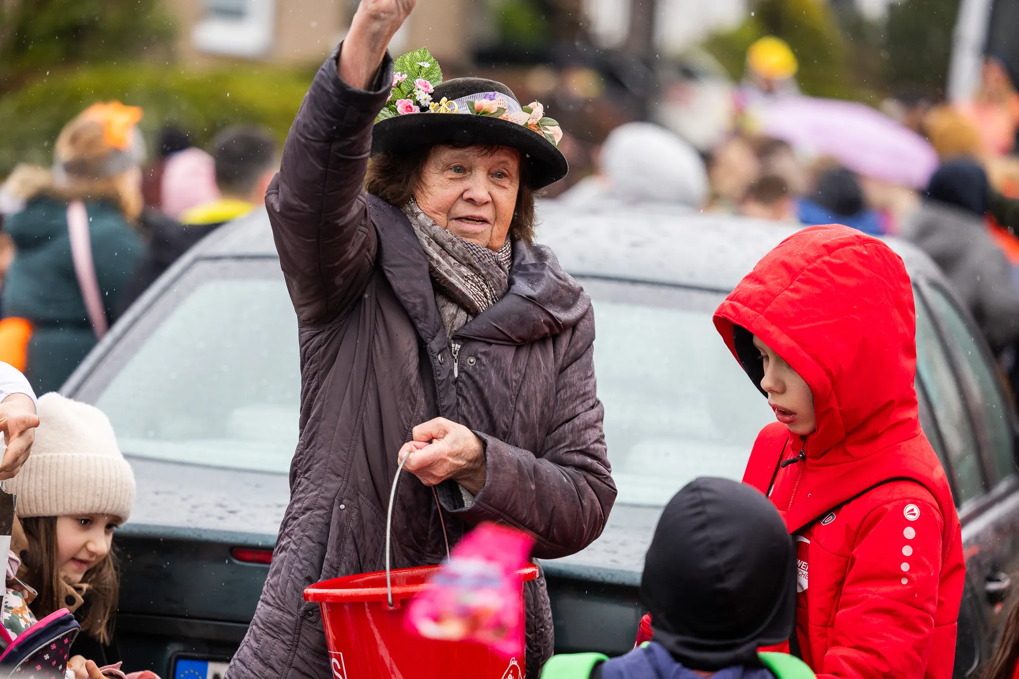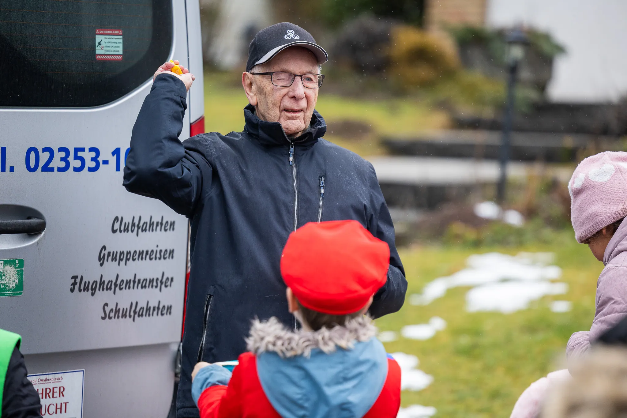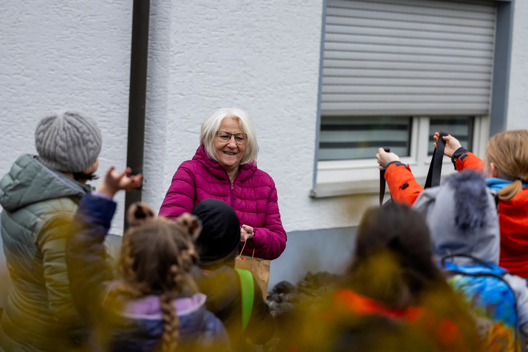 Seit mehr als 50 Jahren ist es Tradition in Oberbrügge, dass die Zuschauer den Umzug der Kinder mit Musik und vielen „Kamelle“ begleiten. „In solchen Dörfern funktioniert das einfach besser. Wir sind dankbar für die Anwohner, die hier Süßigkeiten verschenken“, sagt die kommissarische Schulleiterin Simone Domke. „Ein besonderer Höhepunkt für die Kinder ist der Stopp an der Tagespflege, weil die Senioren dann alle herauskommen, um Kamelle an die Kinder zu verteilen.“