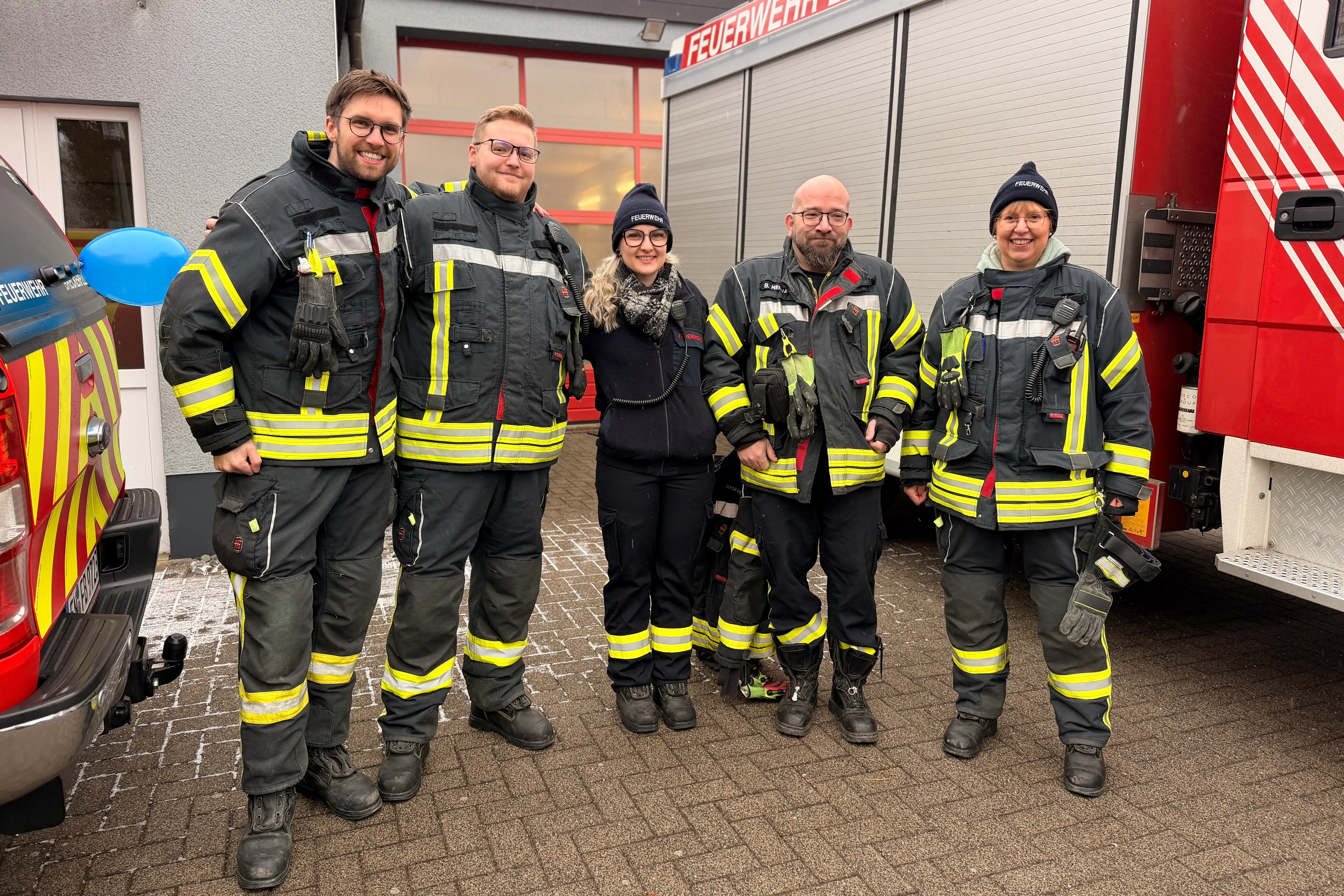 Nach gut einer Stunde endete der Umzug wieder am Feuerwehr-Gerätehaus. Dort empfingen die ehrenamtlichen Mitglieder der Löschgruppe Zurstraße und der Jugendfeuerwehr die Karnevalisten mit frisch gebackenen Waffeln, Würstchen sowie kalten und warmen Getränken.
