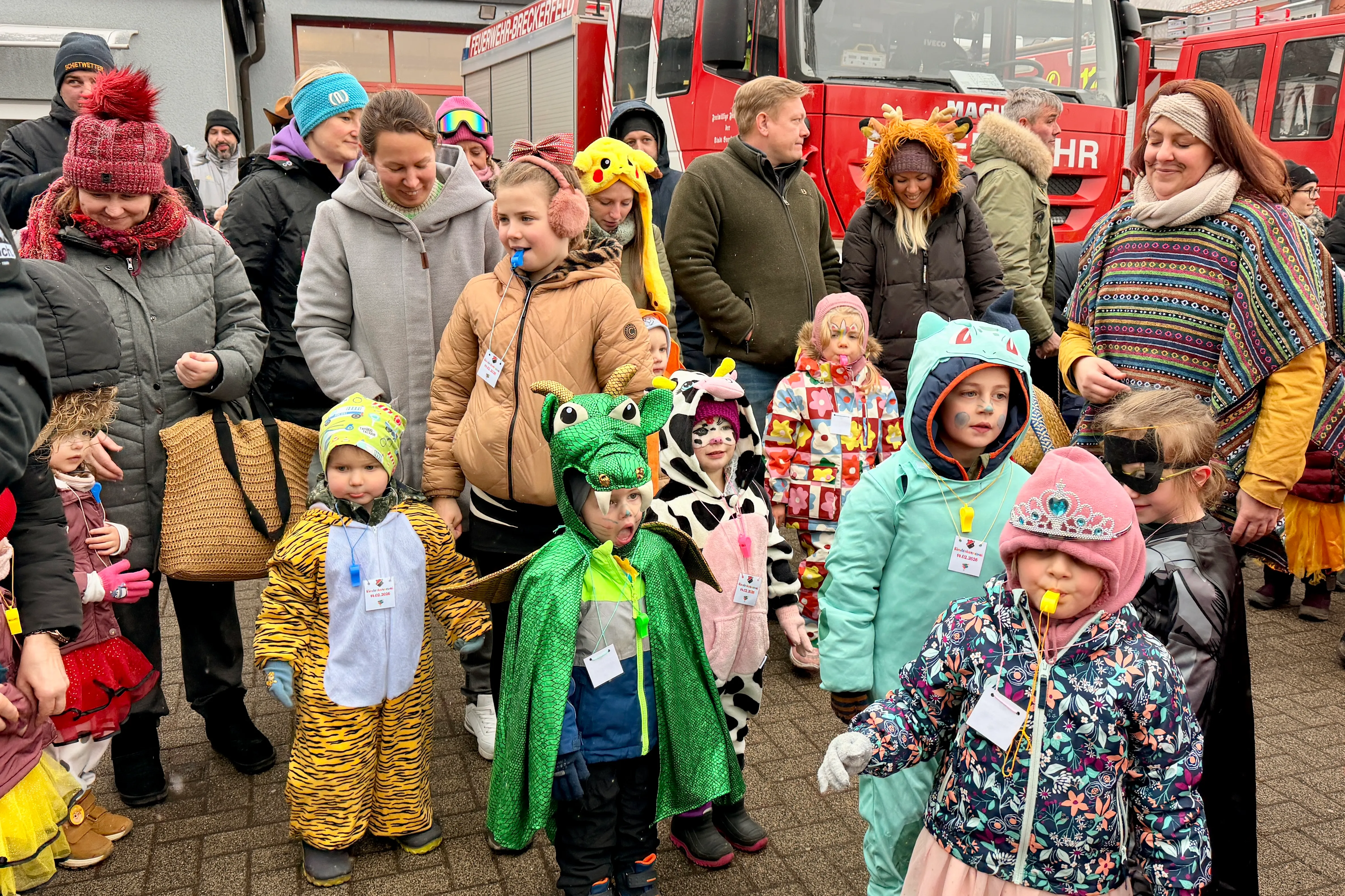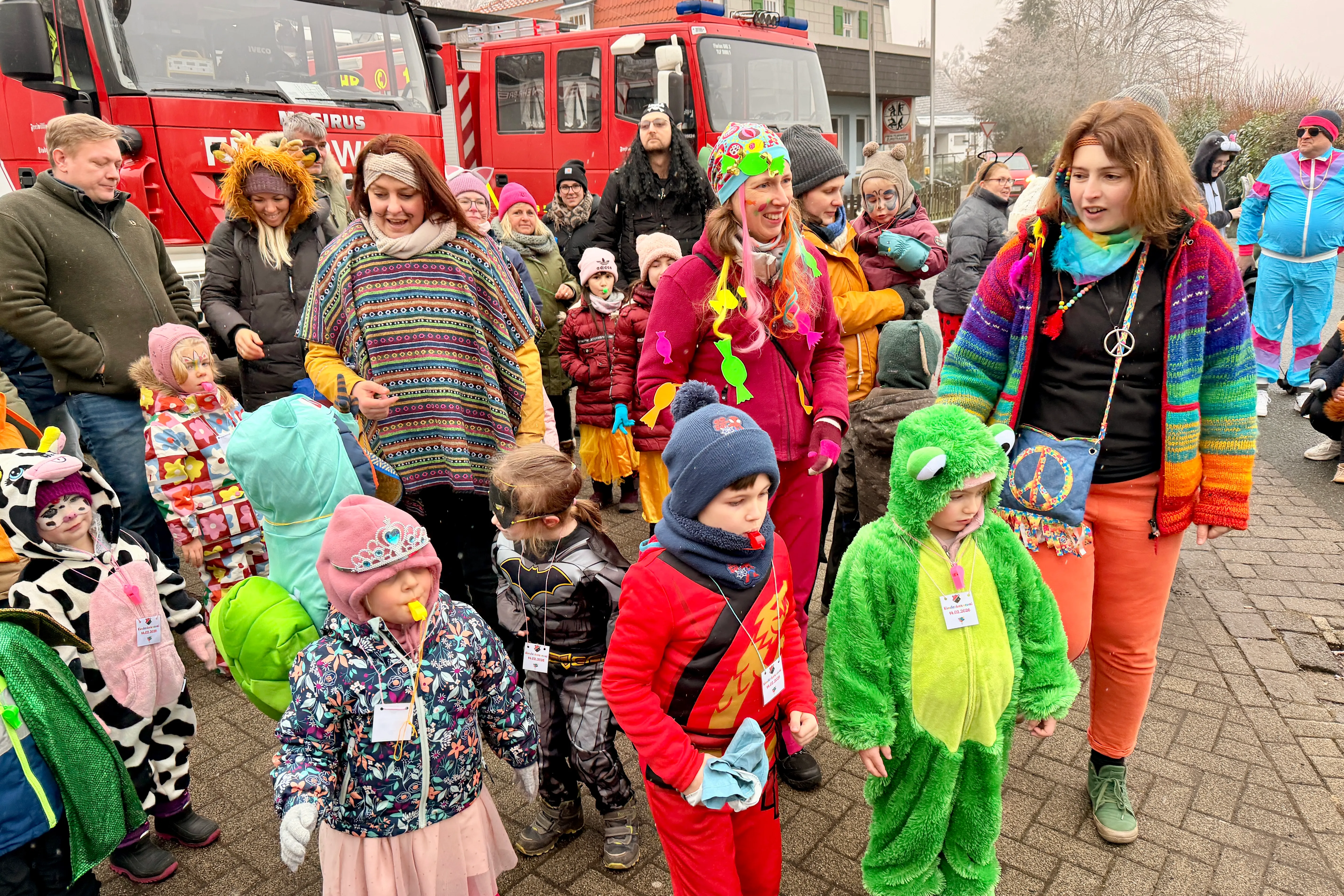 Ein Meer aus Farben, fröhliches Pfeifen und ausgelassene Stimmung vor dem Gerätehaus der Freiwillige Feuerwehr Breckerfeld: Am Samstag, 14. Februar, zeigte sich Zurstraße ab 14 Uhr fest in närrischer Hand. Der SC Zurstrasse hatte zur Kinderkarnevalsparade geladen — und zahlreiche fantasievoll verkleidete Kinder mit ihren Familien ließen sich dieses Spektakel nicht entgehen.