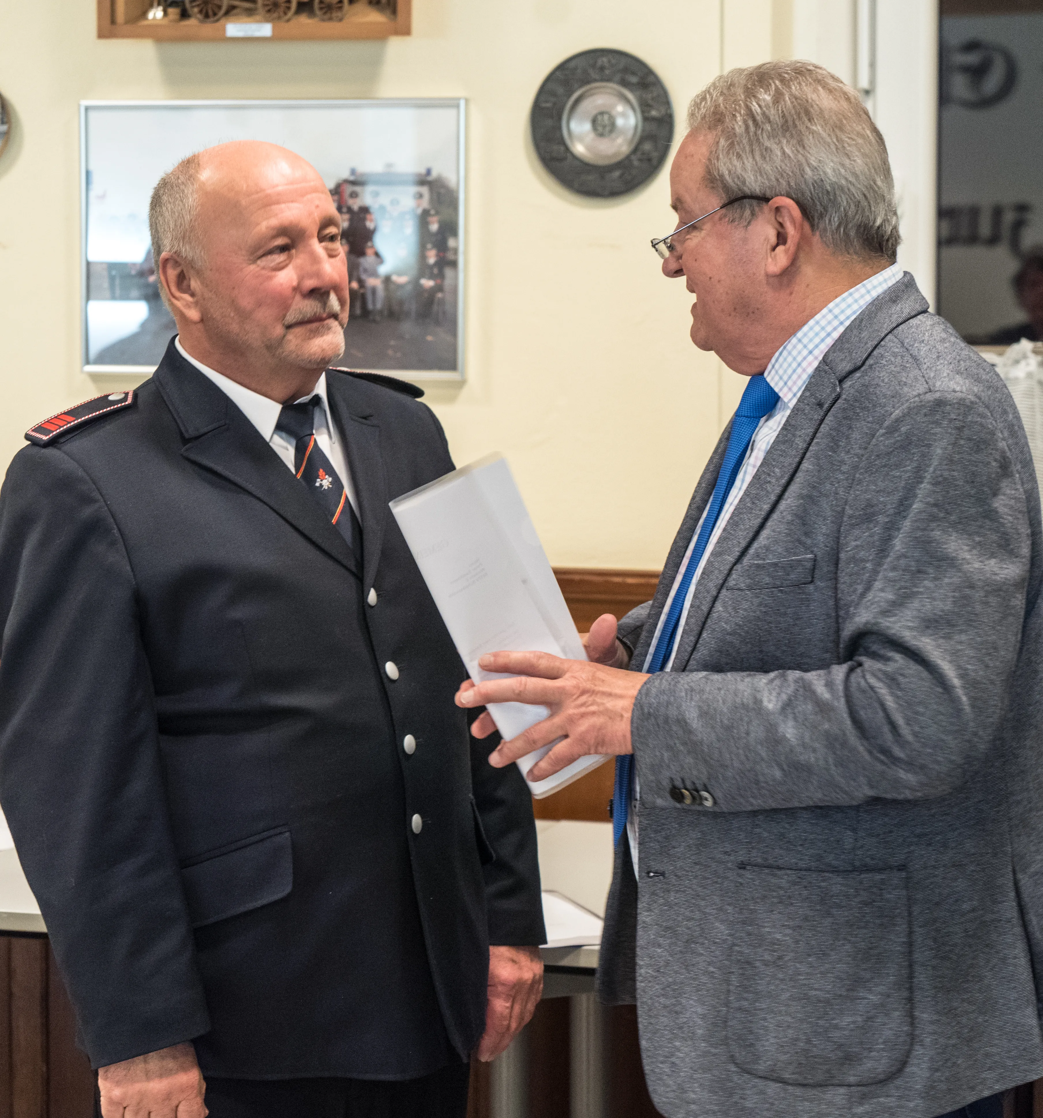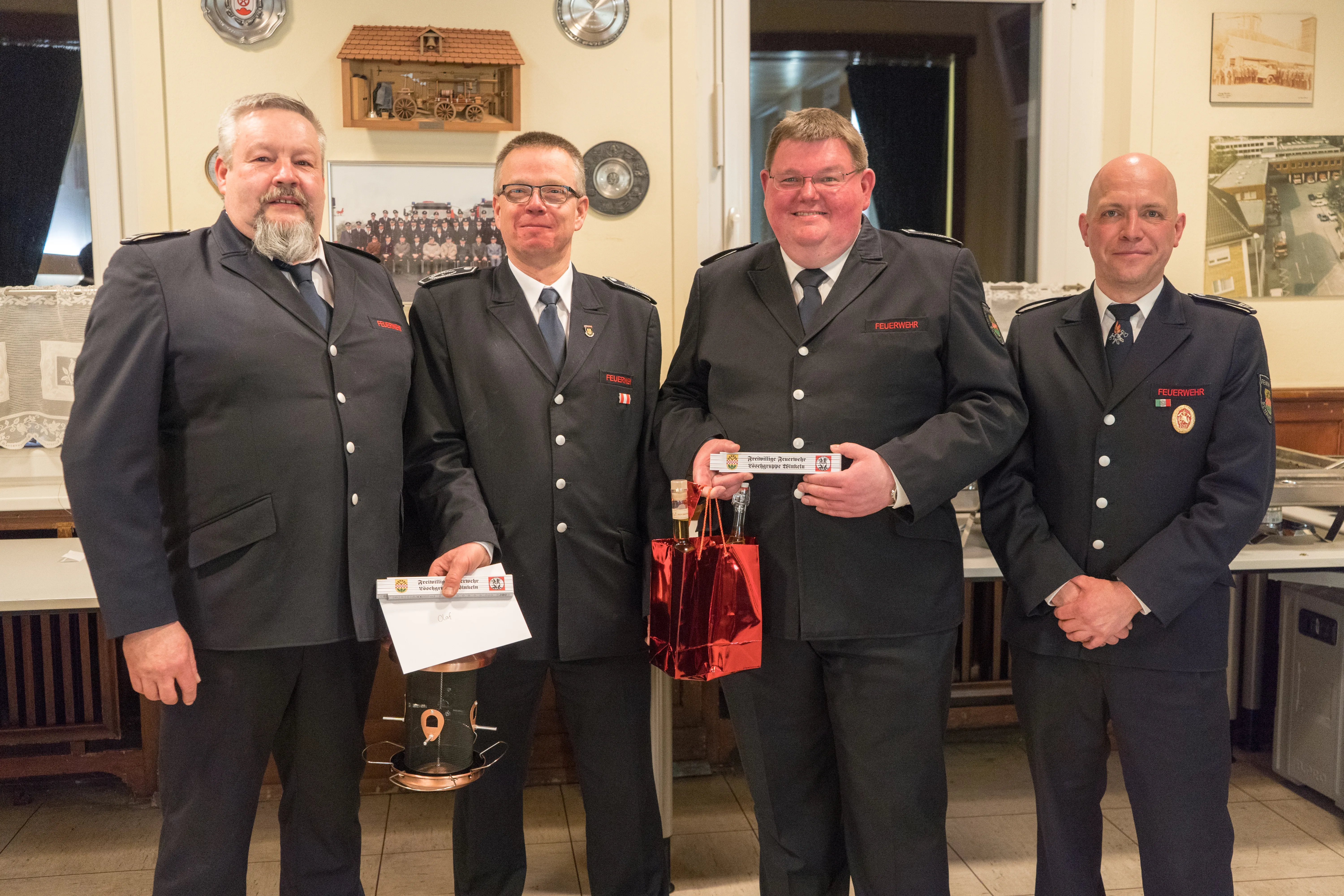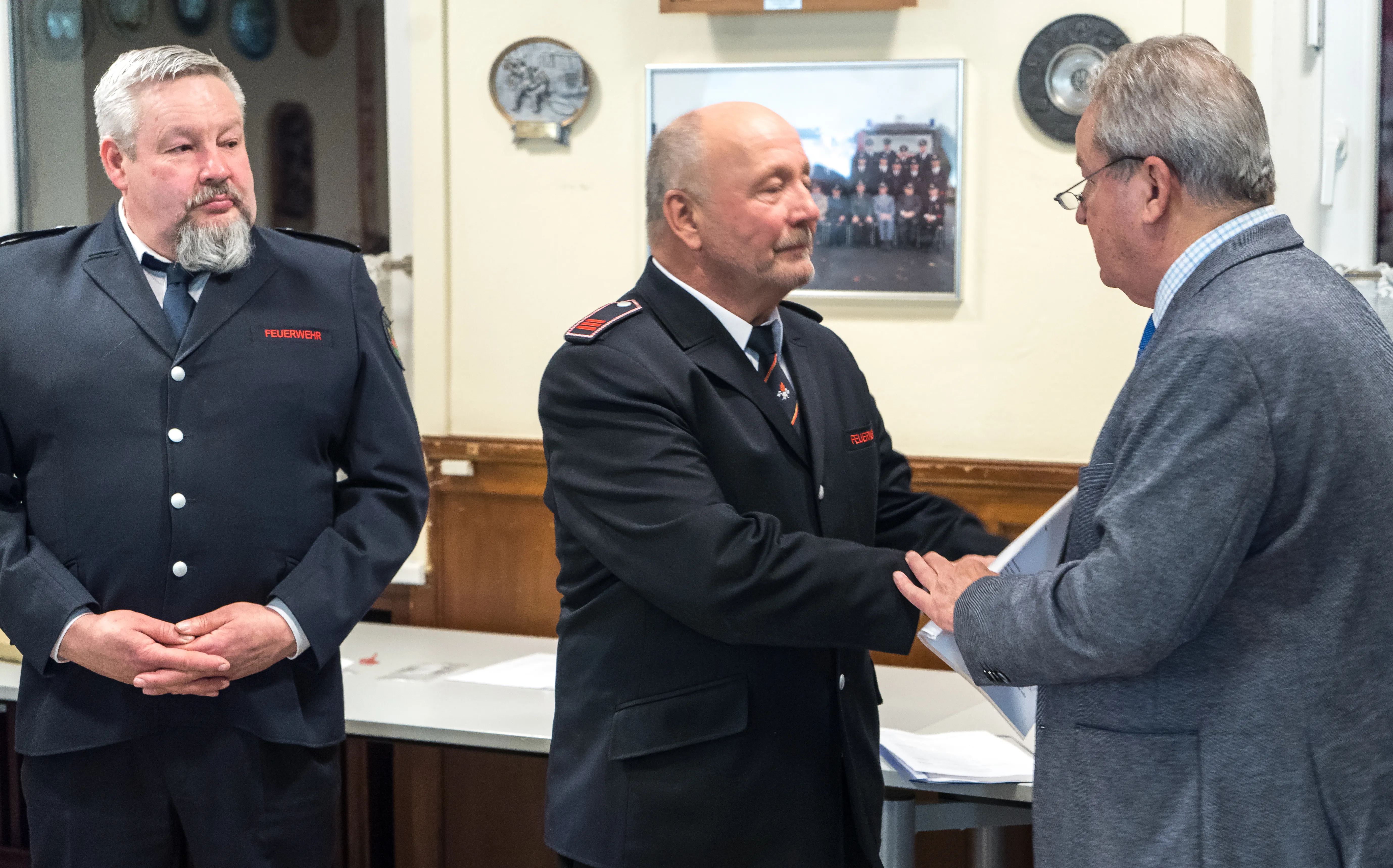 Zu guter Letzt gab Brandoberinspektor Michael Schanzenberger noch eine personelle Änderung bekannt. Die Aufgaben des scheidenden stellvertretenden Einheitsführers Alexander Horn übernehmen jetzt Gavin Kämper und Markus Bergfeld. Michael Schanzenberger selbst wird der Löschgruppe noch ein Jahr als Einheitsführer erhalten bleiben. Dann wird er 60 und legt die Einheitsführung in jüngere Hände.
