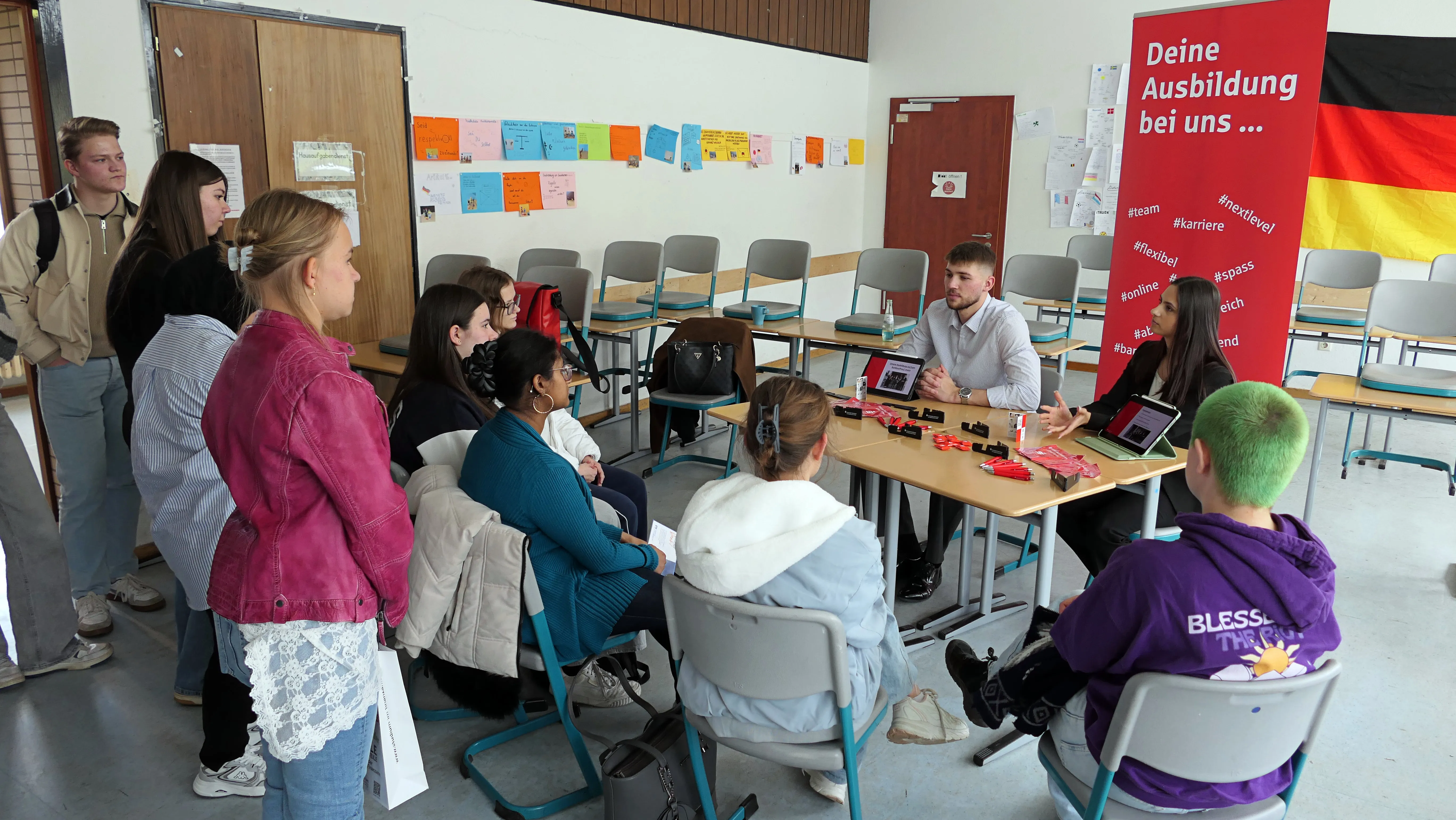Im Mittelpunkt standen Informationen zu Ausbildungsplätzen – auch für das laufende Jahr –, dualen Studiengängen sowie Weiterbildungs- und Verdienstmöglichkeiten. Die Jugendlichen stellten gezielte Fragen, gleichzeitig erkundigten sich die Unternehmensvertreter nach Interessen, Leistungen und Berufswünschen.