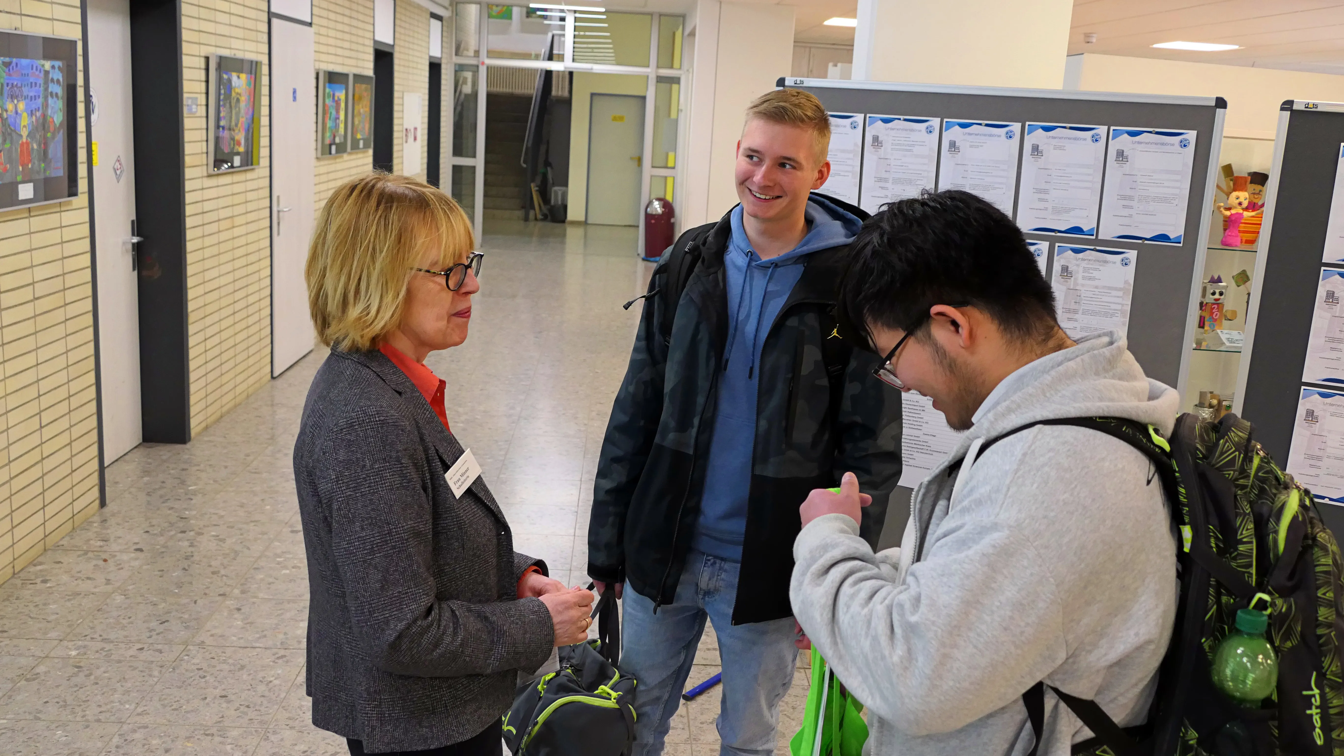 Schulleiterin Elisabeth Minner eröffnete die Börse in der Aula und gab organisatorische Hinweise. Sie betonte, dass auch zahlreiche ehemalige Schüler inzwischen als Vertreter regionaler Unternehmen beteiligt waren. Uwe Nahrgang, Vorsitzender des Fördervereins, verwies auf die hohe Bedeutung der Veranstaltung für die berufliche Orientierung und die Bindung an den Standort Plettenberg.