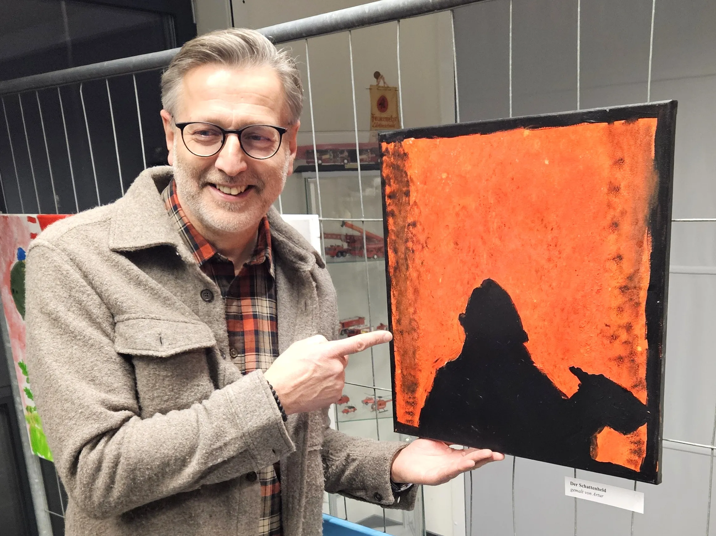 Detlev Kümmel, der selbst mit seiner Galerie im vom Hochwasser betroffenen Stadtteil Brügge ansässig ist, unterstützt das Projekt gerne: „Ich weiß aus eigener Erfahrung, wie wichtig Vorsorge und Gemeinschaften sind und wie wertvoll das ehrenamtliche Engagement von Feuerwehr und DRK ist. Dass Kinder dieses Thema kreativ aufgreifen, finde ich großartig“, sagte er am Freitagabend.