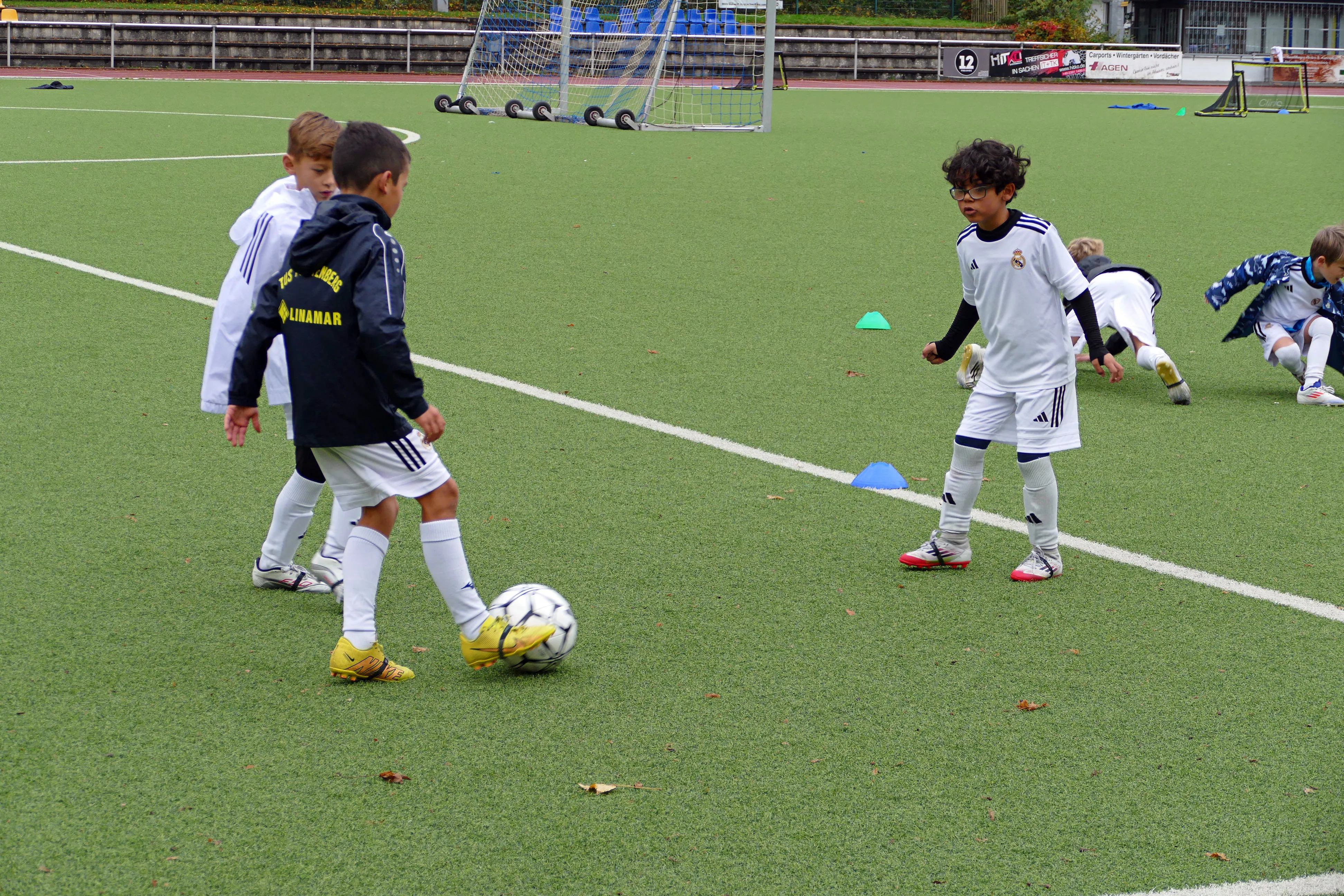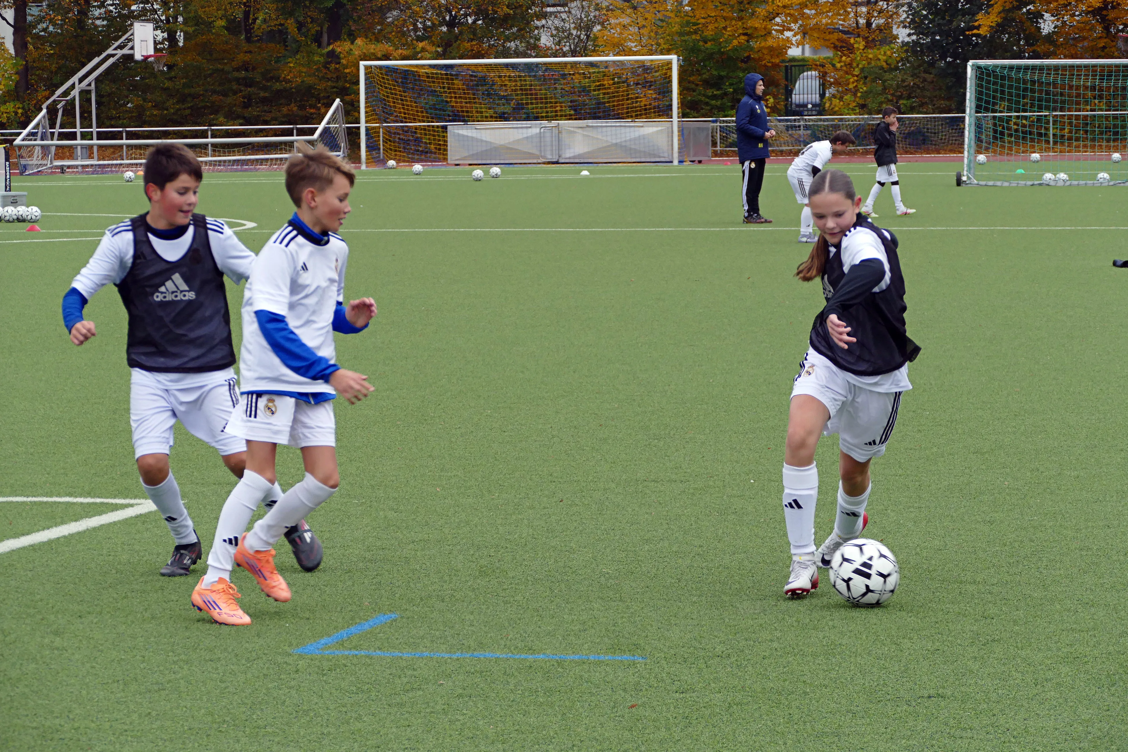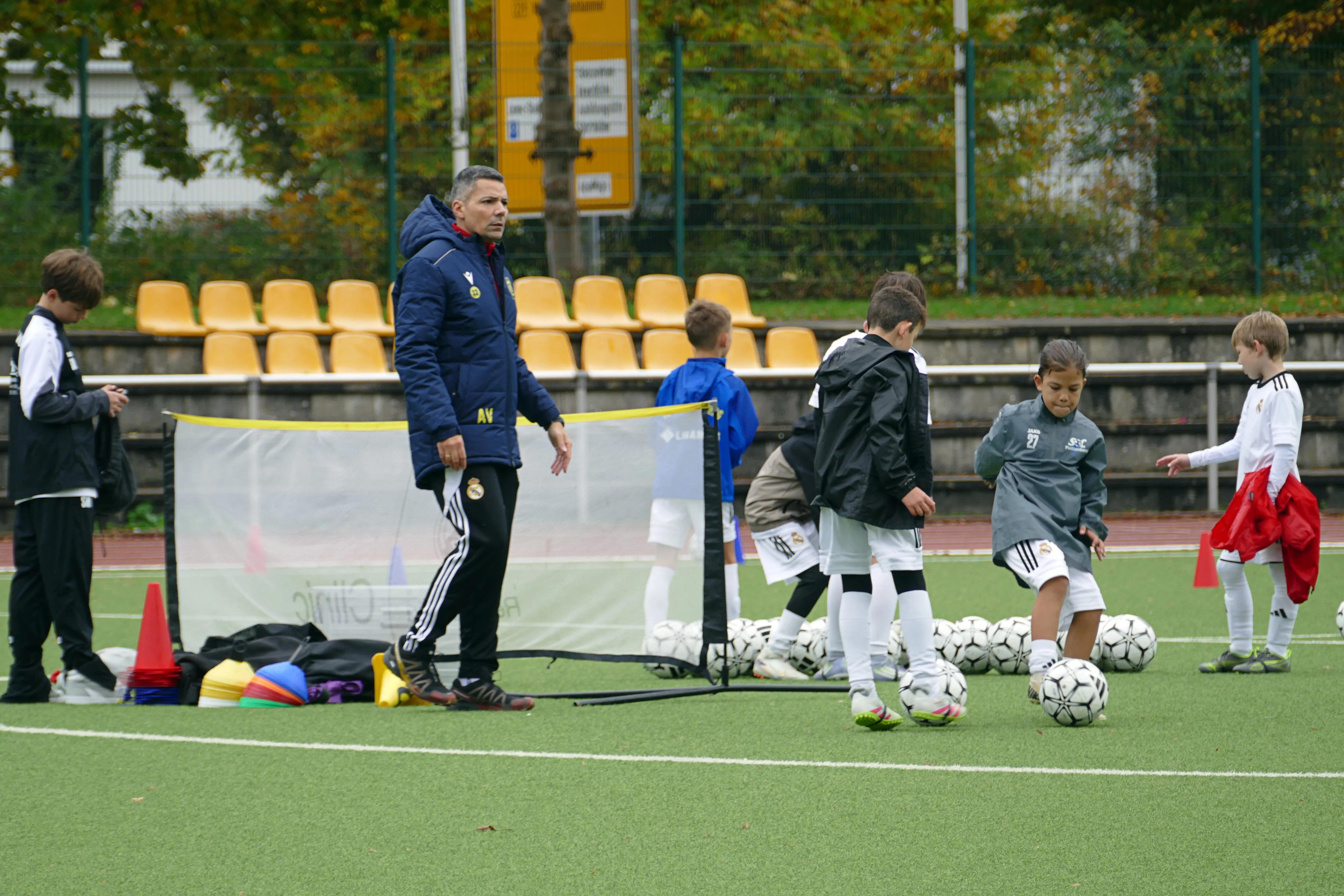 Junge Fußballerinnen und Fußballer im Alter zwischen 6 und 16 Jahren tummelten sich auf dem Sportplatz in Böddinghausen. Sie waren alle mit den weißen Trikots des königlichen Fußballclubs aus Madrid ausgestattet worden. In altersspezifische Gruppen aufgeteilt, wurden sie von vier Trainern der Fußballschule betreut. Als Hospitant war Adrian Viteritti aus dem Trainerteam des TuS Plettenberg dabei. Das Trainingskonzept basiert auf den Vorgaben der Jugendakademie La Cantera von Real Madrid.