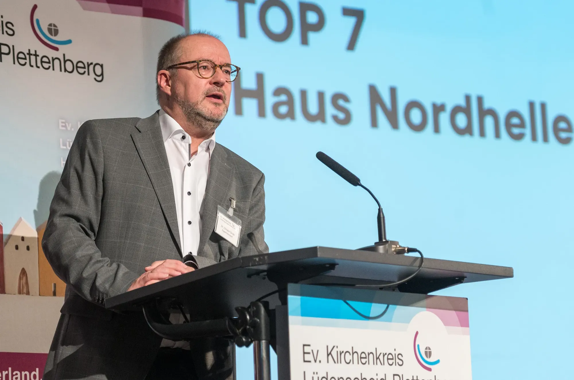 Bei der Synode des Kirchenkreises Lüdenscheid-Plettenberg konnte Superintendent Dr. Christof Grote Entwarnung geben: „Nach Monaten voller Sorgen haben wir einen Investor gefunden, der das Haus übernehmen will.“