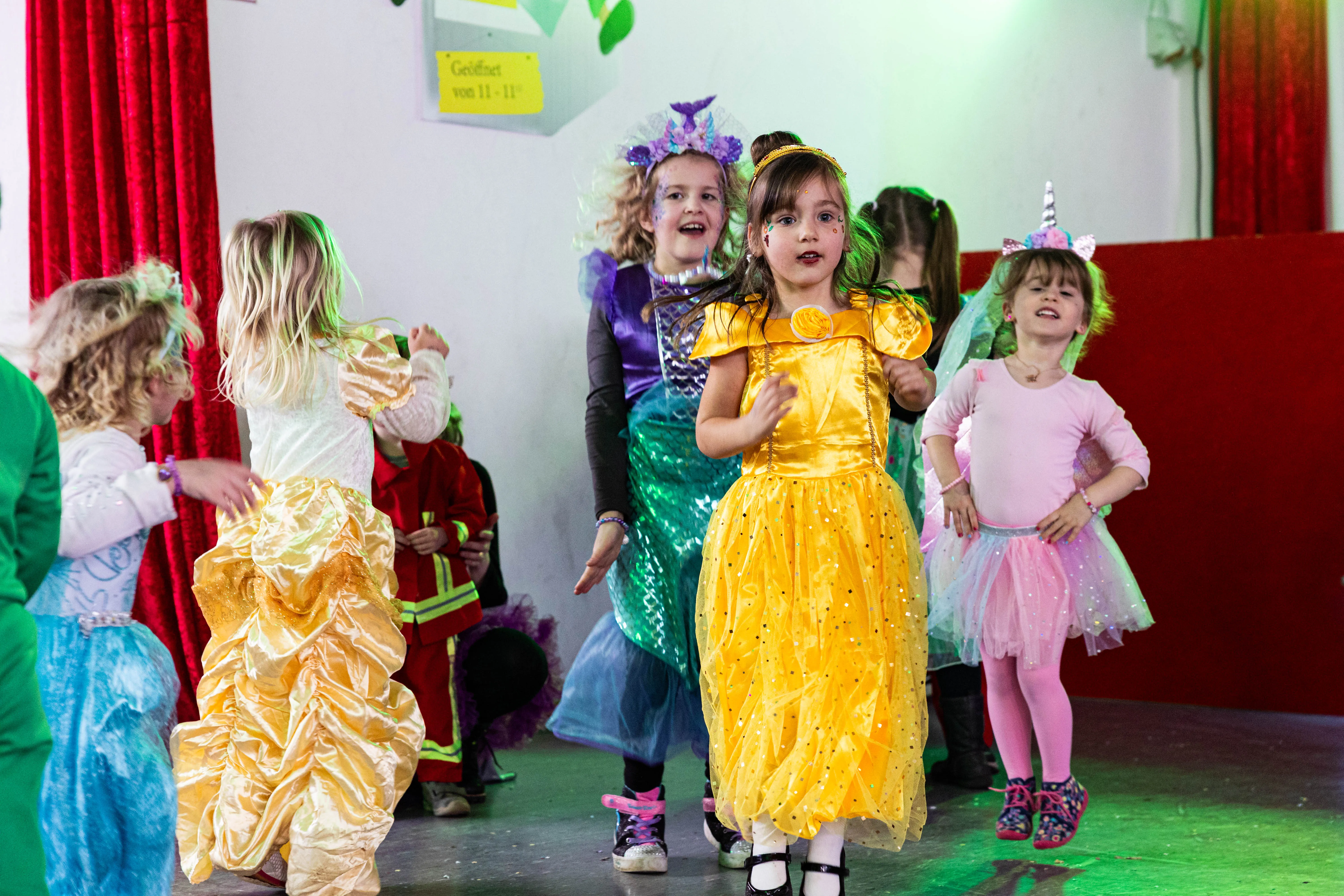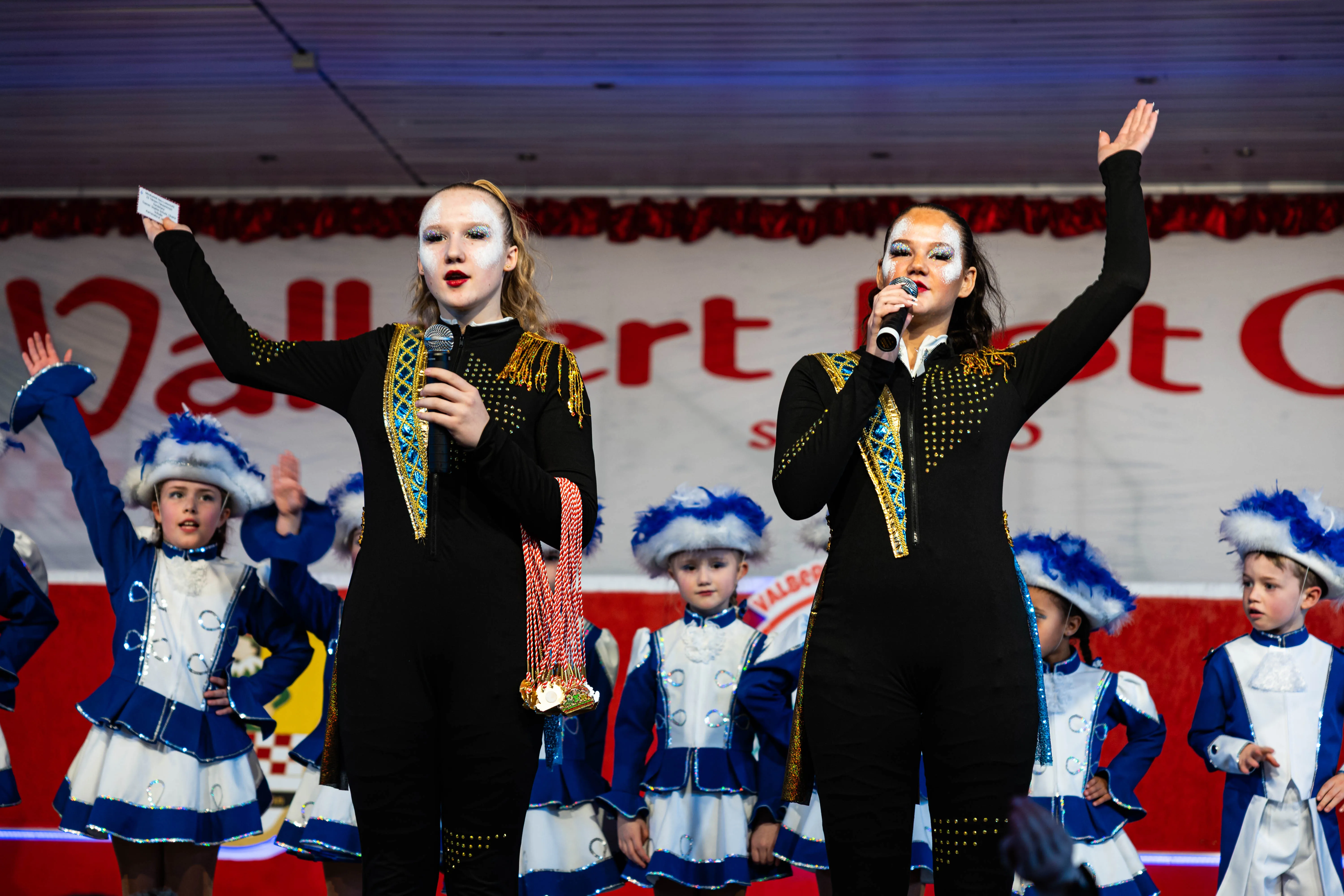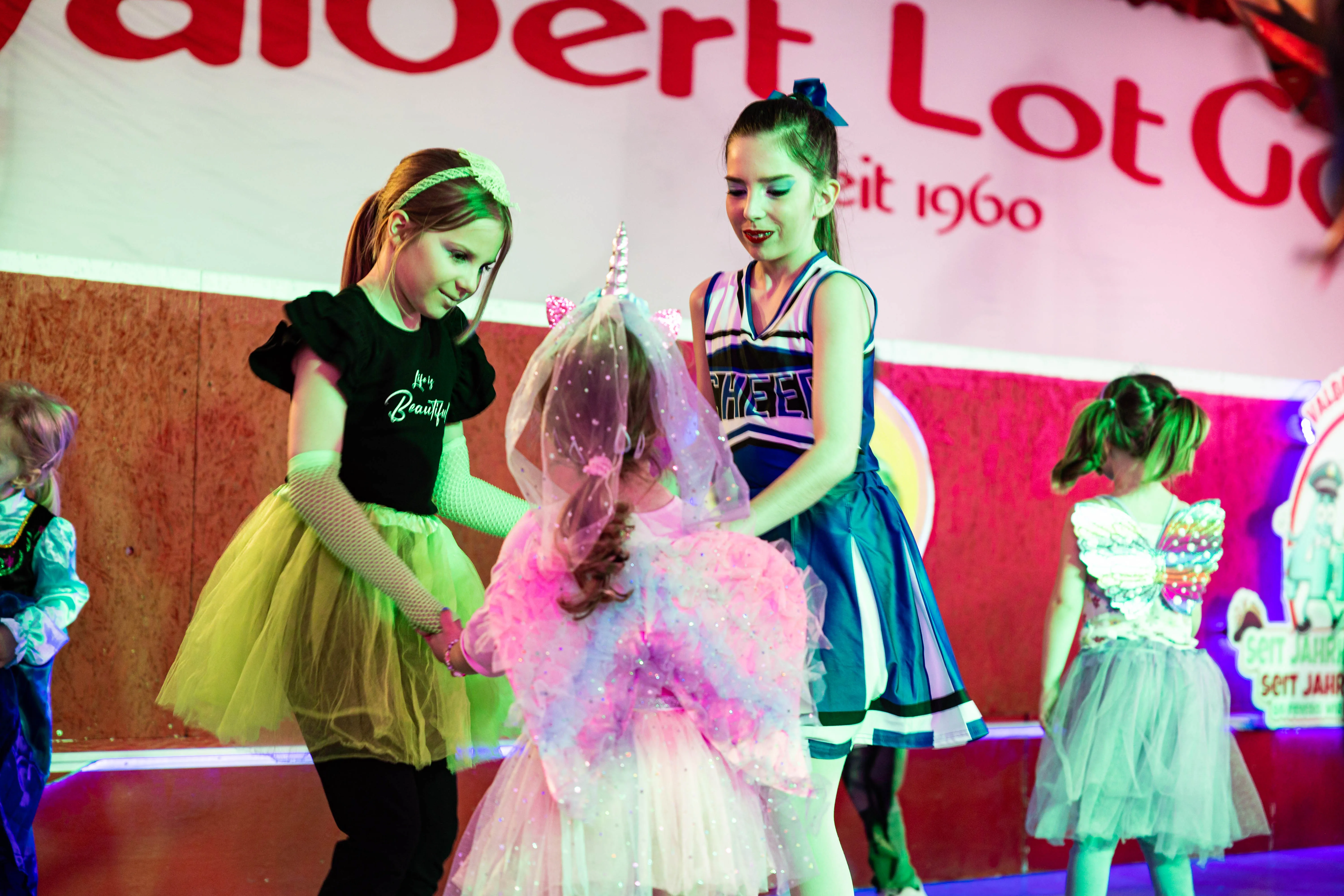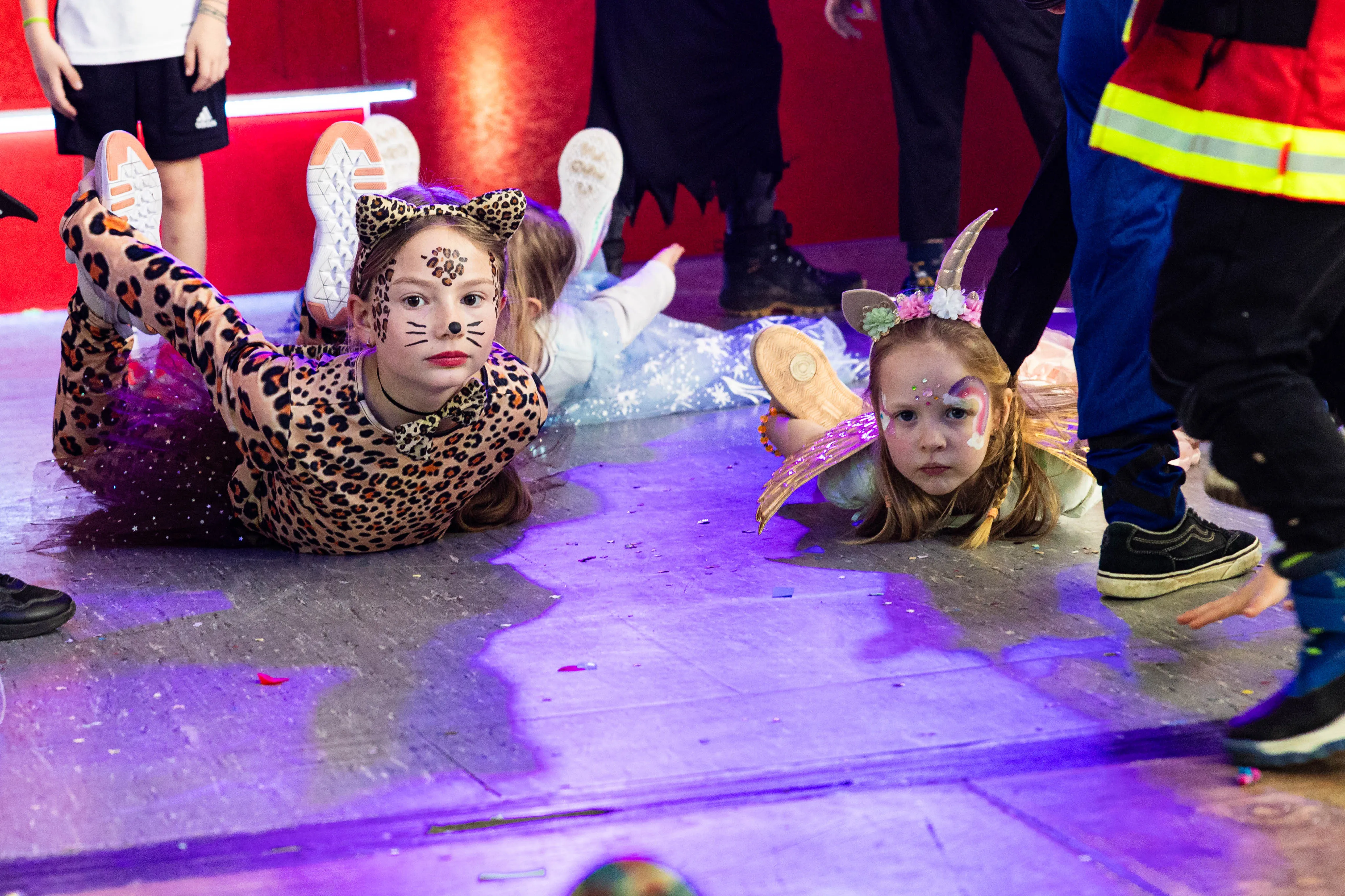 Für viele Kinder waren vermutlich die Tanzpausen das Highlight — denn dann konnten sie auf der großen Bühne immer wieder spielen, toben und tanzen. Moderator Dominik Busch im Comic-Anzug hatte jedenfalls zum Ende der Pause hin immer wieder Mühe, die Kinder zum Verlassen der Bühne zu bewegen. Der Platz auf der Bühne wurde jedoch für die fünf eigenen Garden der Valberter sowie die Gäste vom Miniballett Neu-Listernohl sowie des Schützenvereins Welschen Ennest benötigt, die zum wiederholten Mal in der Session ihr Können zeigten.