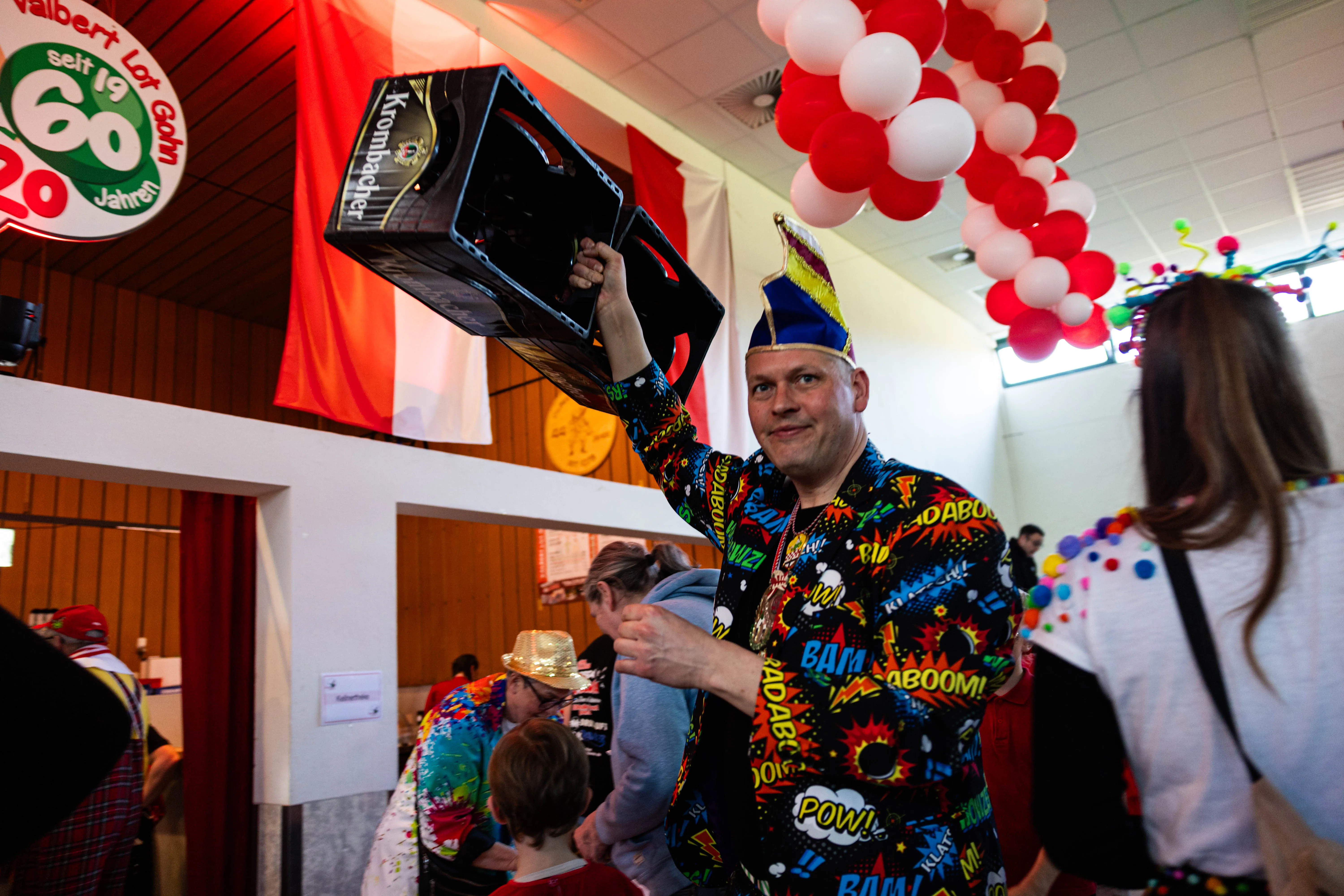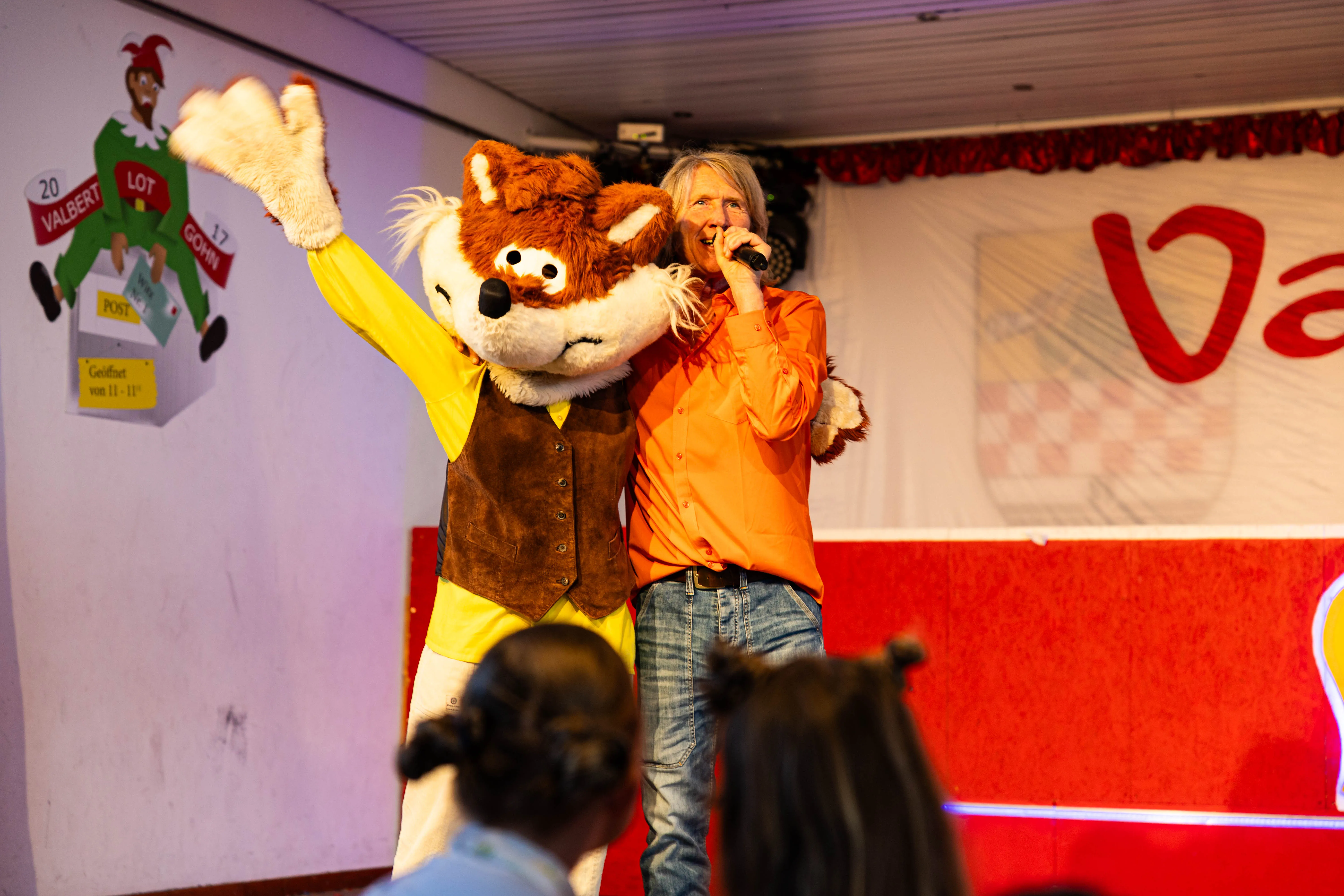 Im 66. Jubiläumsjahr des Valberter Karnevals hatte sich der Elferrat auch für das mehr als dreistündige Programm einige Highlights überlegt. Unter anderem den Auftritt des Musikers Fux, der Eltern vielleicht als Bernd Klüser mit seinem Hit "Überdosis Glück" von 1987 sein dürfte. Gemeinsam mit einem überdimensionalen Fuchs bildete er auf der Bühne eine musikalische Abwechslung zu den verschiedenen Tanzgarden, die im Laufe des Tages auftraten.