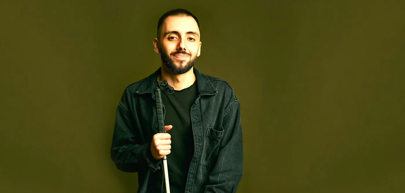 Bei Timon Turga darf ein besonderes Requisit nicht fehlen. Es ist der Blindenstock und der ist durchaus nicht witzig gemeint. Der Comedian sieht nämlich seit einigen Jahren die Welt mit anderen Augen. Fast blind und mit Blindenstock bewaffnet, erzählt er humorvoll über seine Begegnungen im Alltag. Da wird er gerne mal von „hilfsbereiten“ Menschen in die falsche Bahn gesetzt oder landet in der falschen Toilette. Was seine Augen nicht mehr erfassen können, ersetzt seine Fantasie mit Bildern in seinem Kopf, die er auf der Bühne beschreibt und damit seine Anekdoten schmückt.