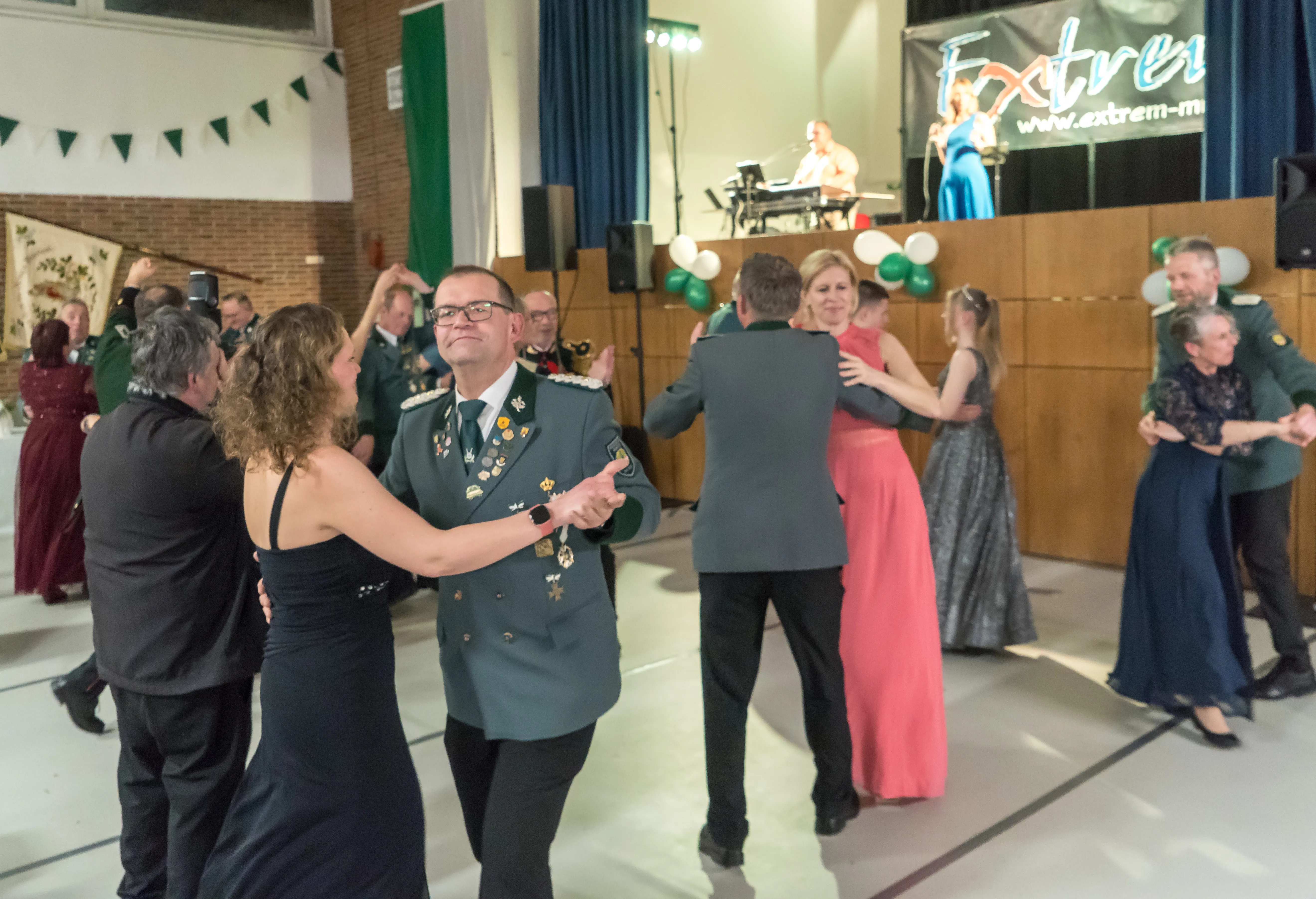 Im Mittelpunkt des Abends stand das amtierende Königspaar, Martin und Regina Herzog, das das Tanzparkett mit einem Tanz eröffnete. Wie schon im vergangenen Jahr sorgte die Partyband „Extrem“ bis weit in die Nacht hinein für die richtige Stimmung im Saal.