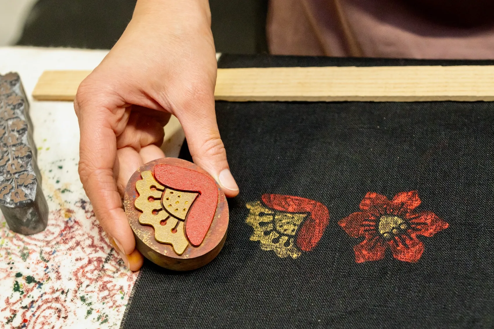 Angeleitet von Petra Matheis-Heinemann dreht sich an diesem Vormittag alles um das Thema Blaudruck. Mit Gummistempeln oder historischen Holzmodeln können Baumwollstoffe individuell bedruckt werden. Ob Tasche, Tischdecke oder Platzsset — der Fantasie sind keine Grenzen gesetzt. Voraussetzung ist lediglich, dass der Stoff aus Baumwolle besteht und vorab gewaschen wurde.